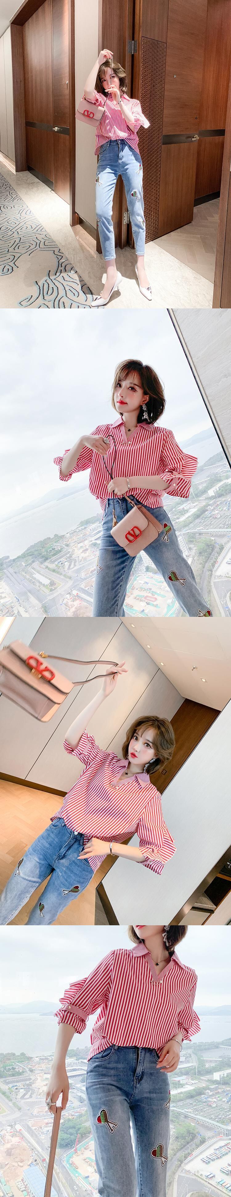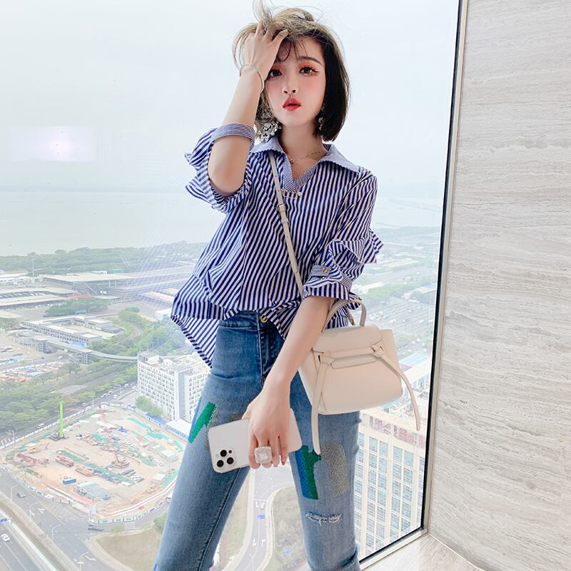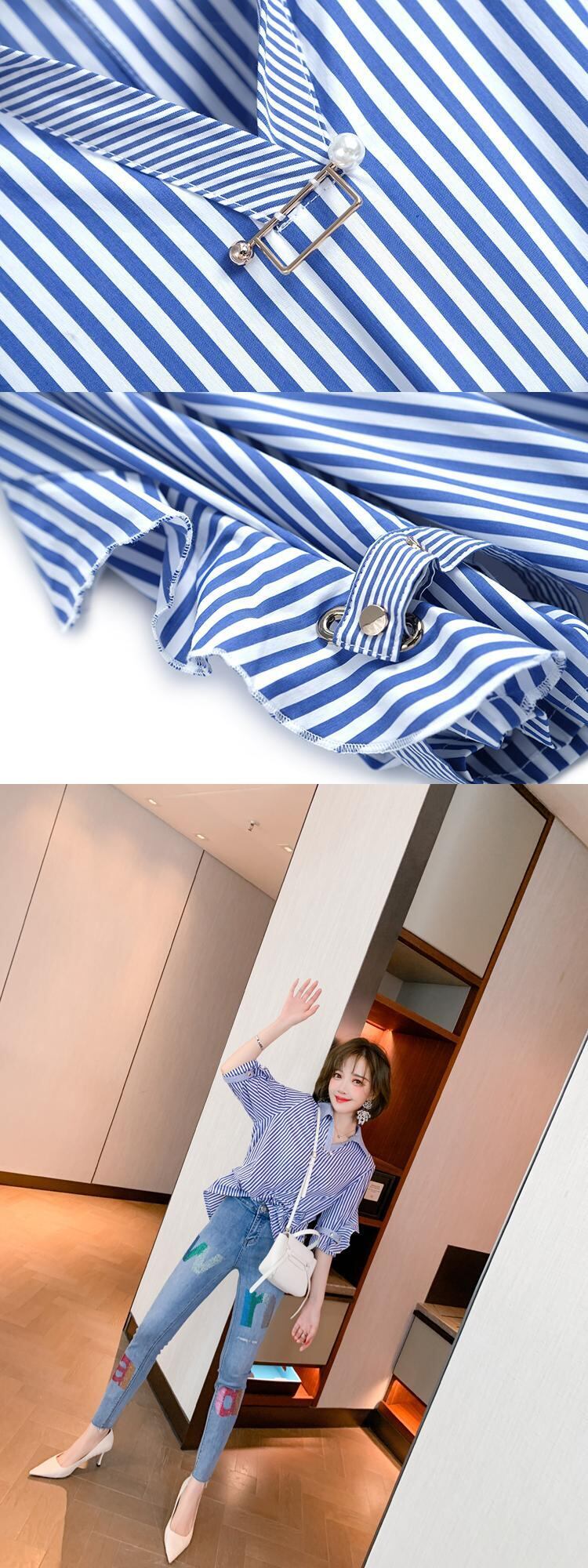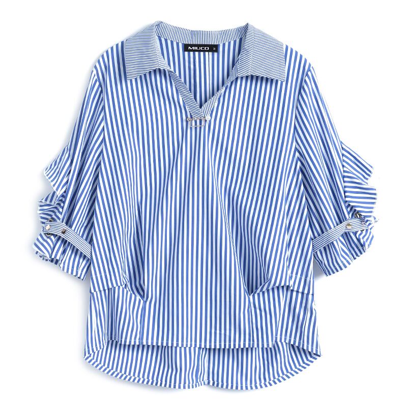 ストライプカジュアルシャツ スプリング 春物 ステッチ MIUCO22646488384