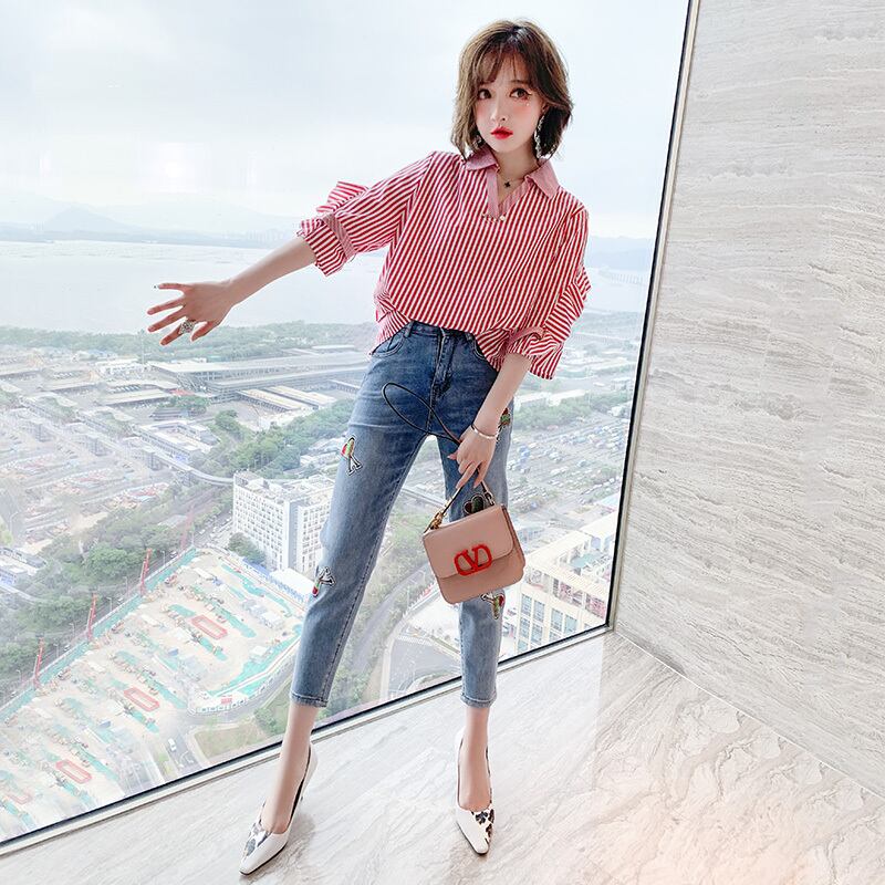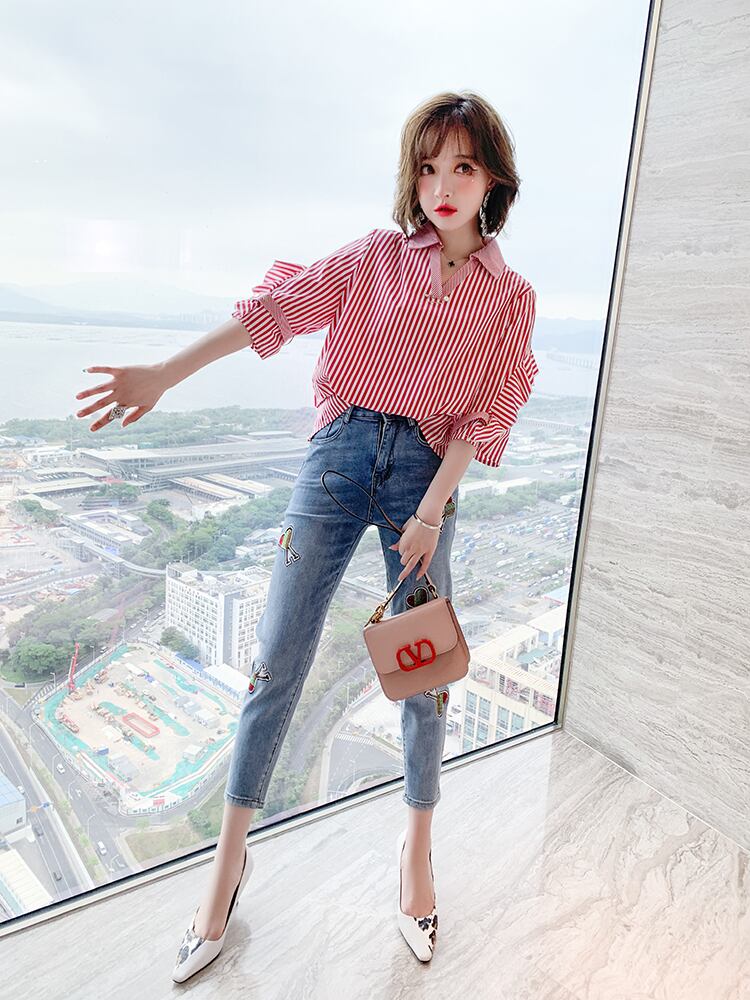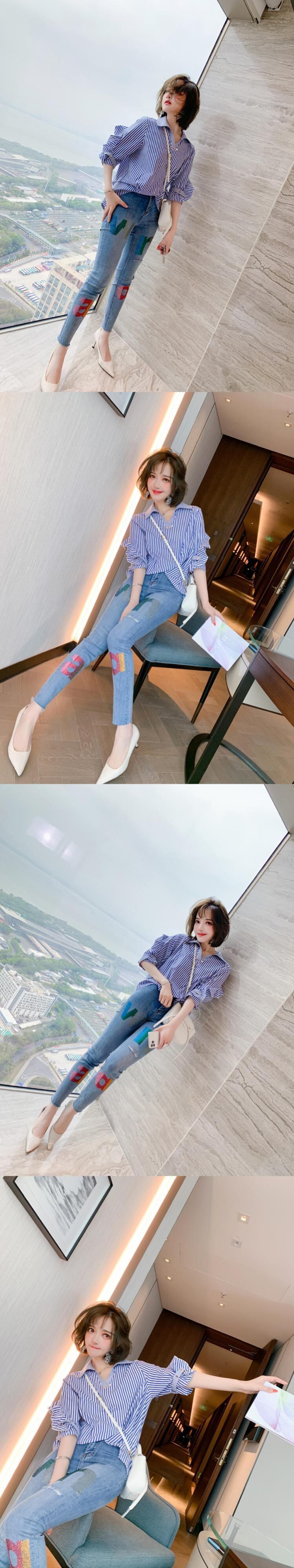 ストライプカジュアルシャツ スプリング 春物 ステッチ MIUCO22646488384