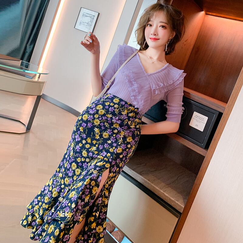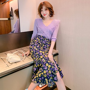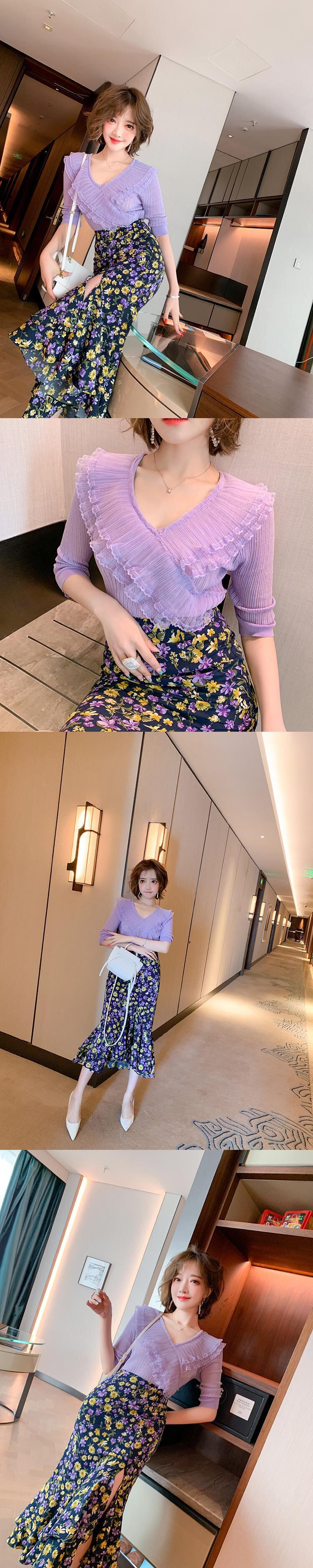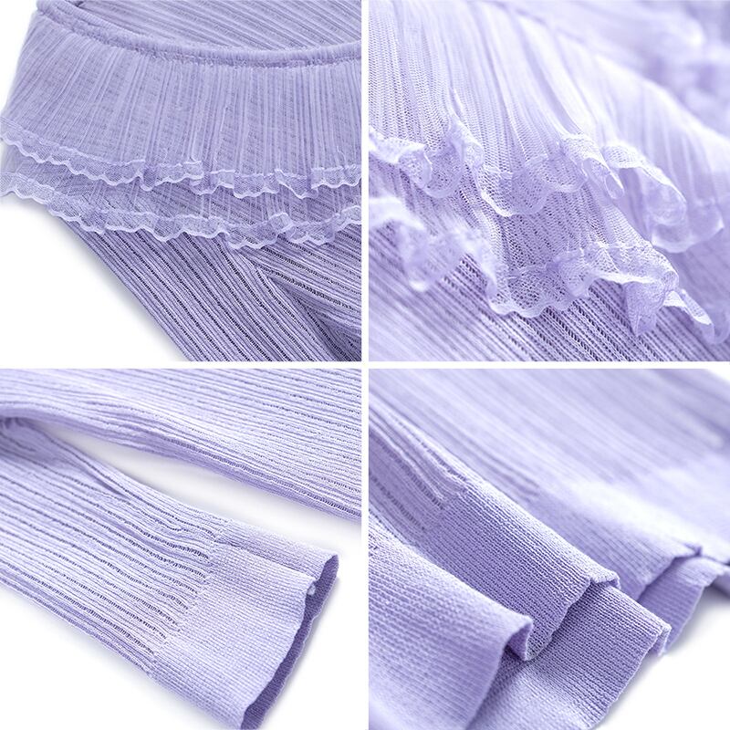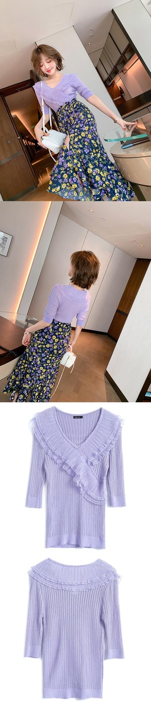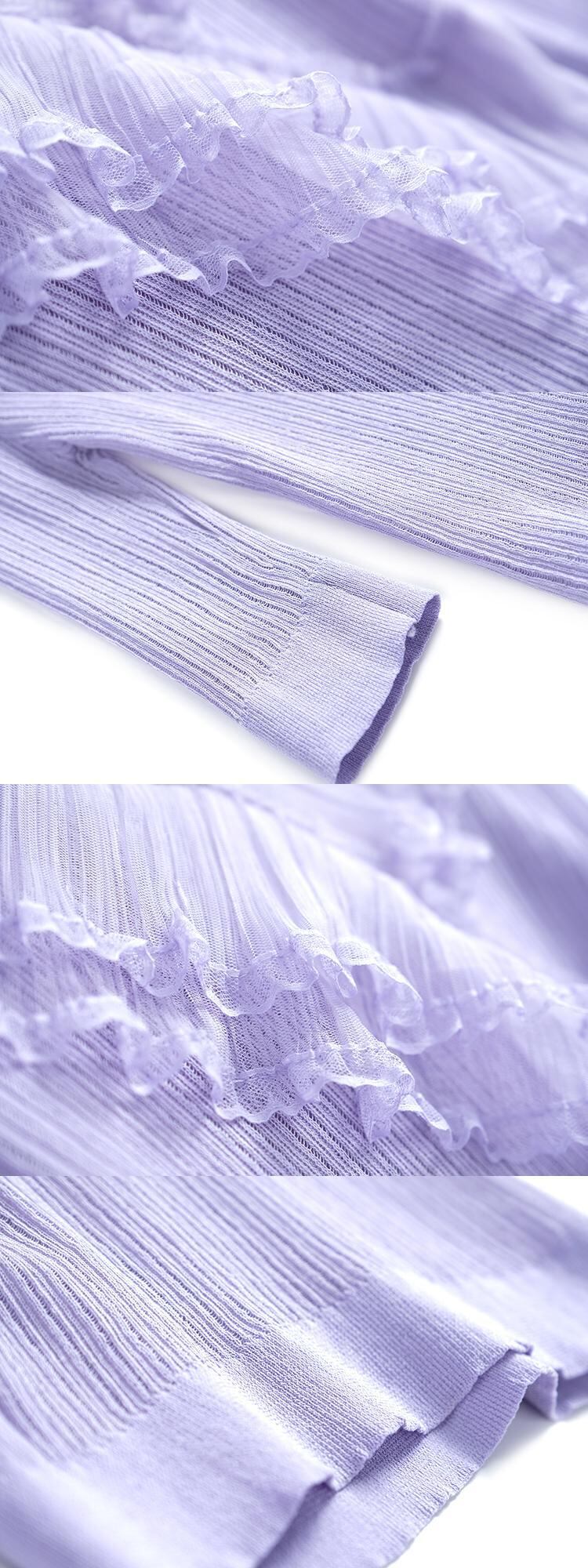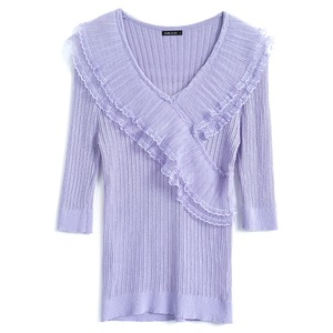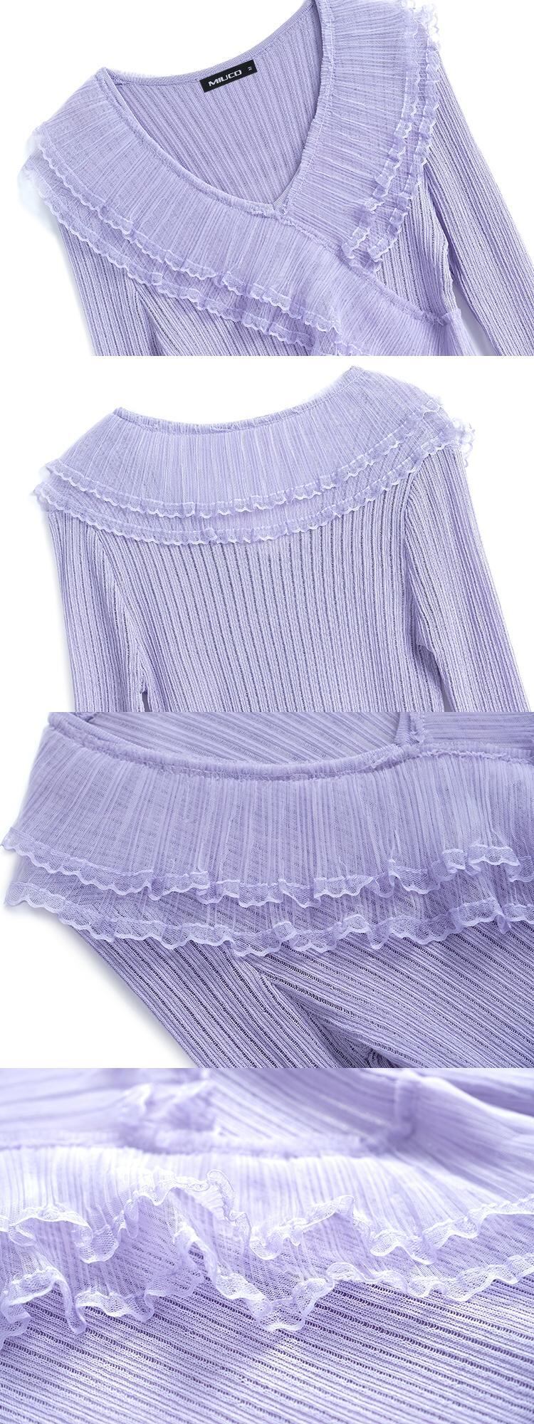 Vネックプリーツメッシュレーススリムセーター スプリング 春物 ステッチ MIUCO13674371333