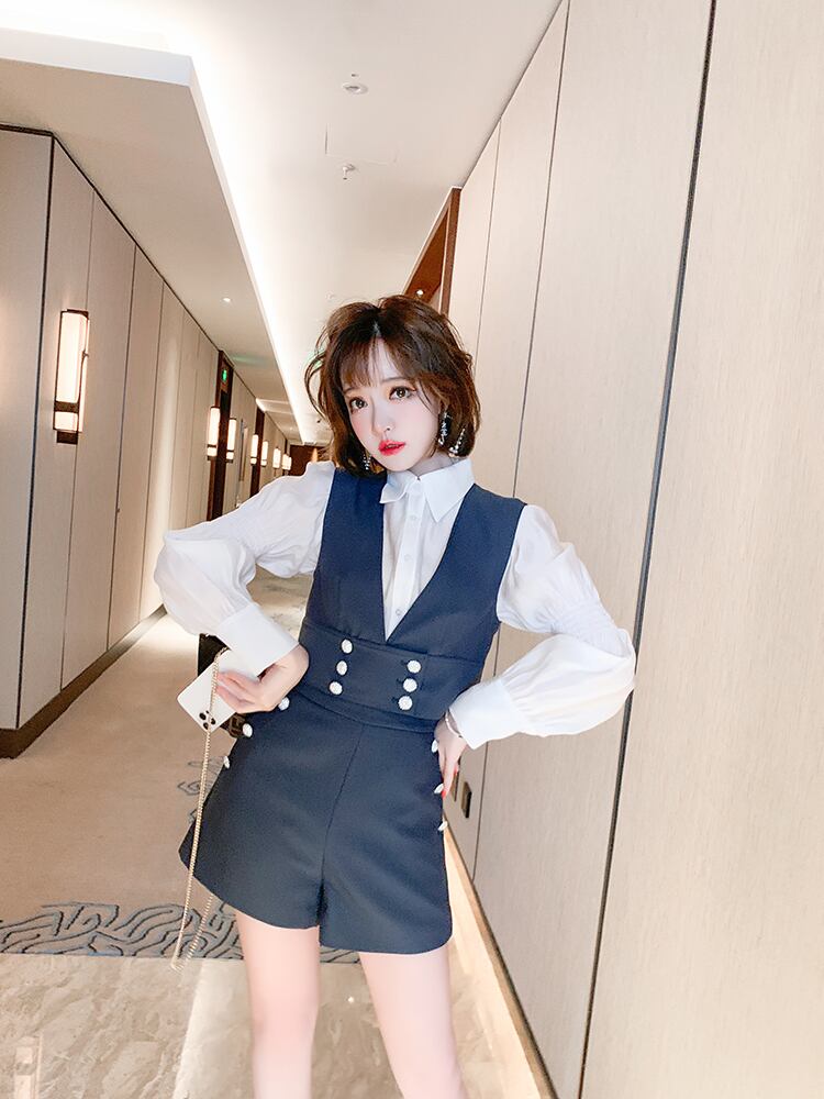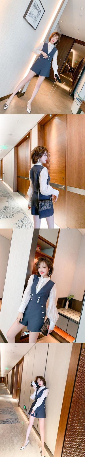 シャツ Vネックショートハイウェストウェストダブルブレストショーツ スプリング 春物 ブルマー MIUCO8885244246