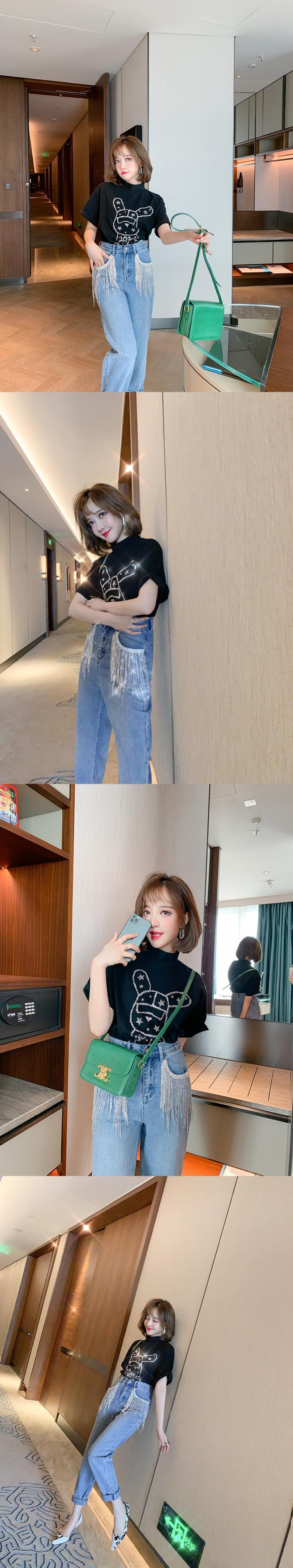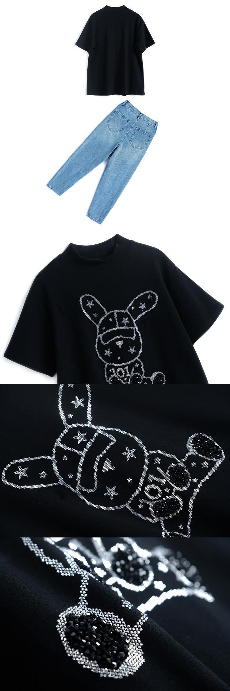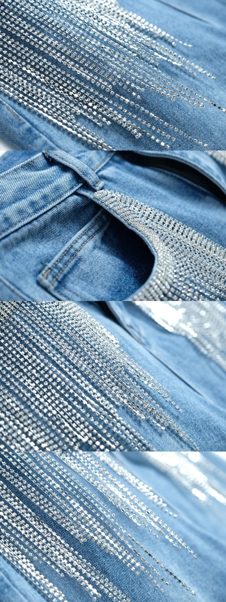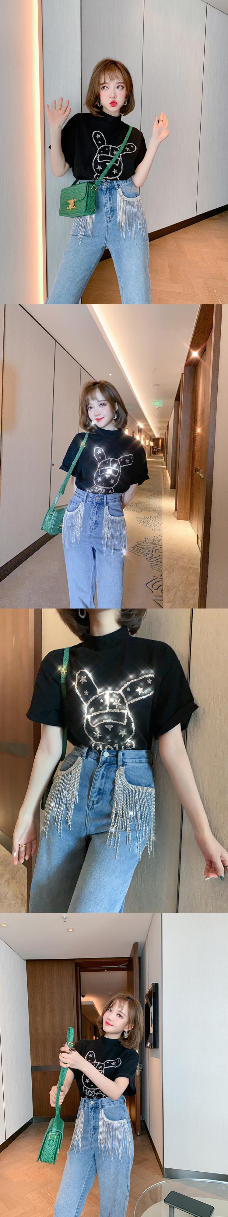 ラインストーンニット半袖スリーブチェーン ジーンズ スプリング ショート ハーフスリーブ 大人ガーリー スウィート キュート カジュアル 春物 MIUCO57177785429