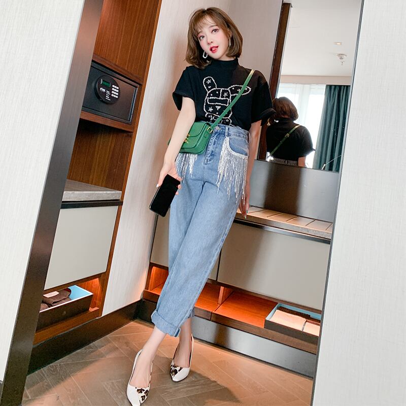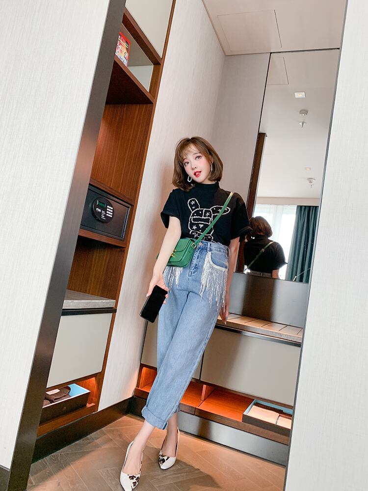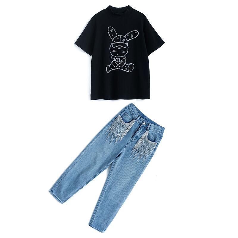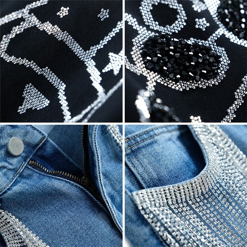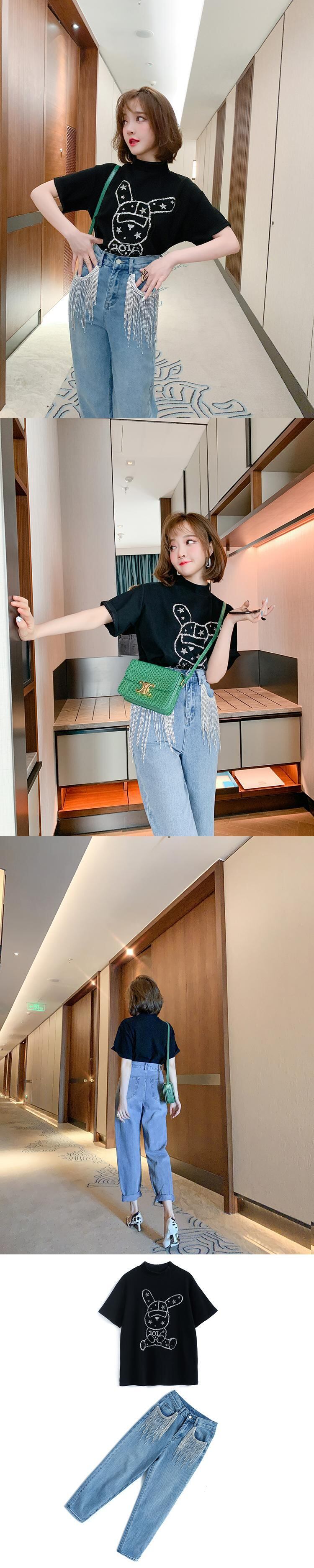 ラインストーンニット半袖スリーブチェーン ジーンズ スプリング ショート ハーフスリーブ 大人ガーリー スウィート キュート カジュアル 春物 MIUCO57177785429