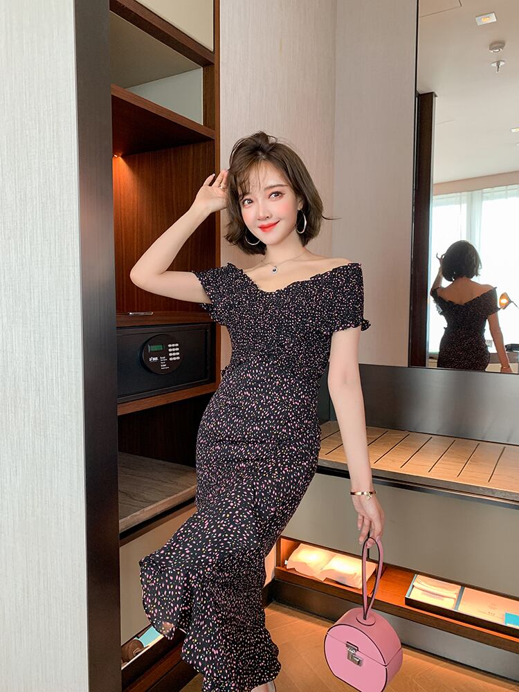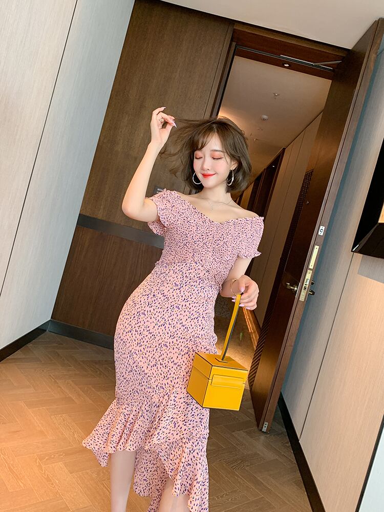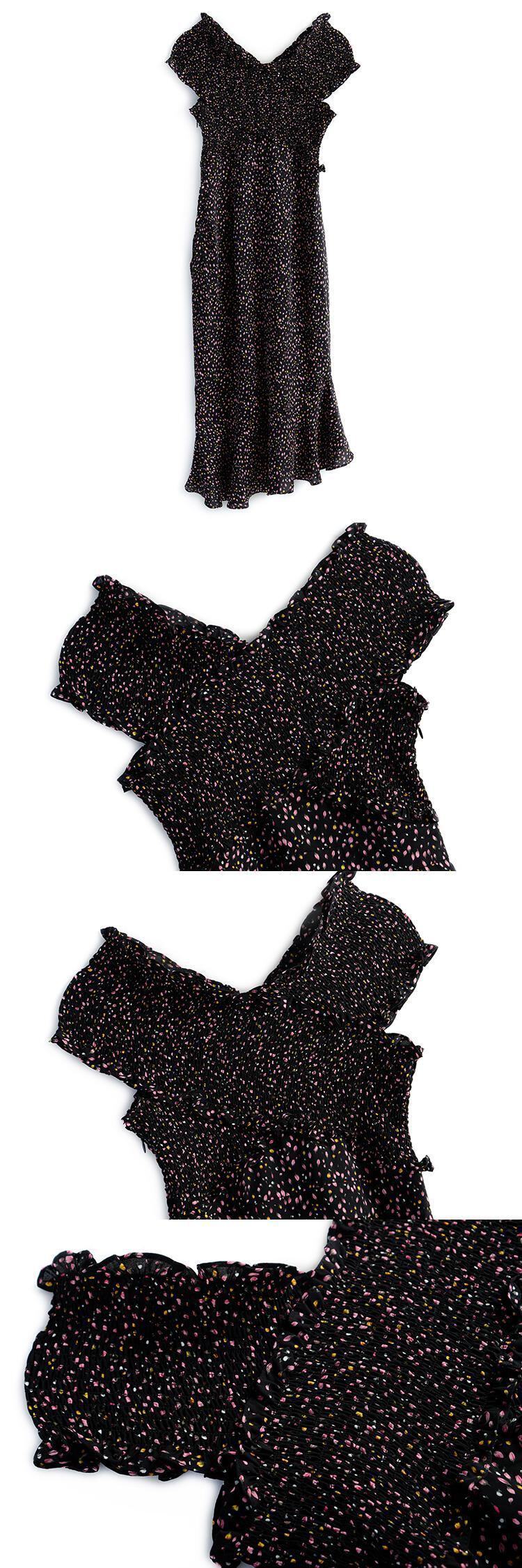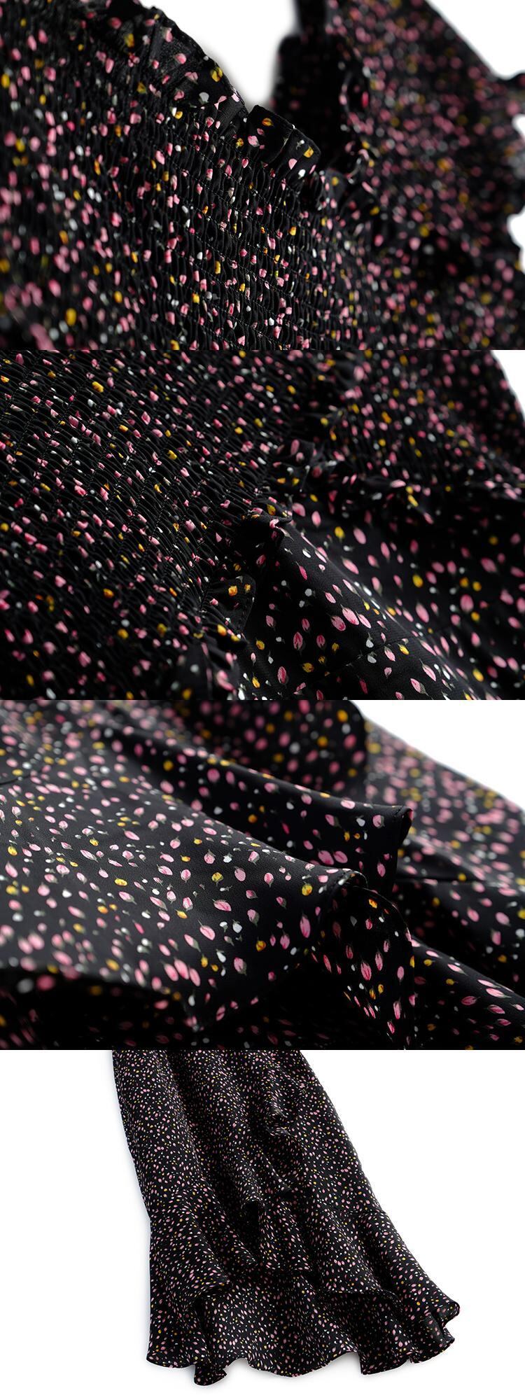 クロスVネックカラーフローラルドレス スプリングサマー 春物 夏物 花柄 オフショルダー ステッチ MIUCO29660670170