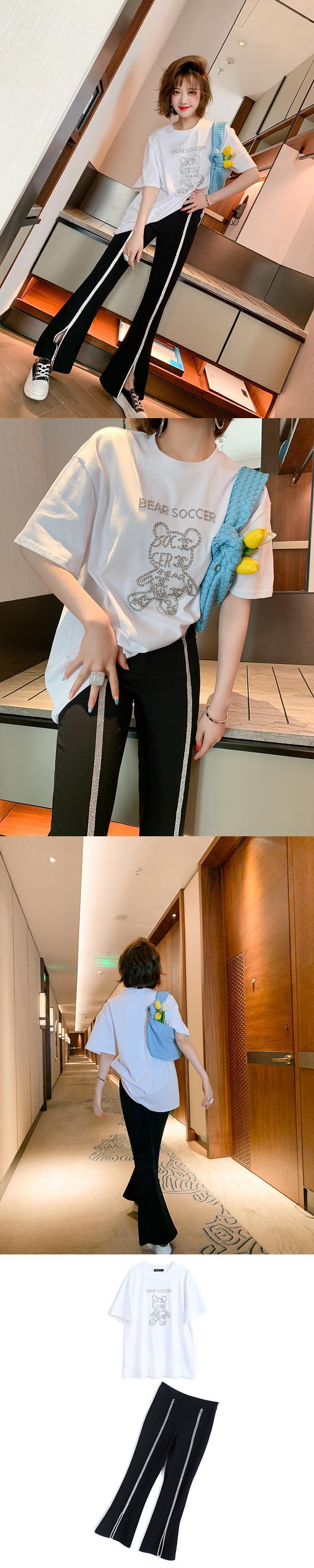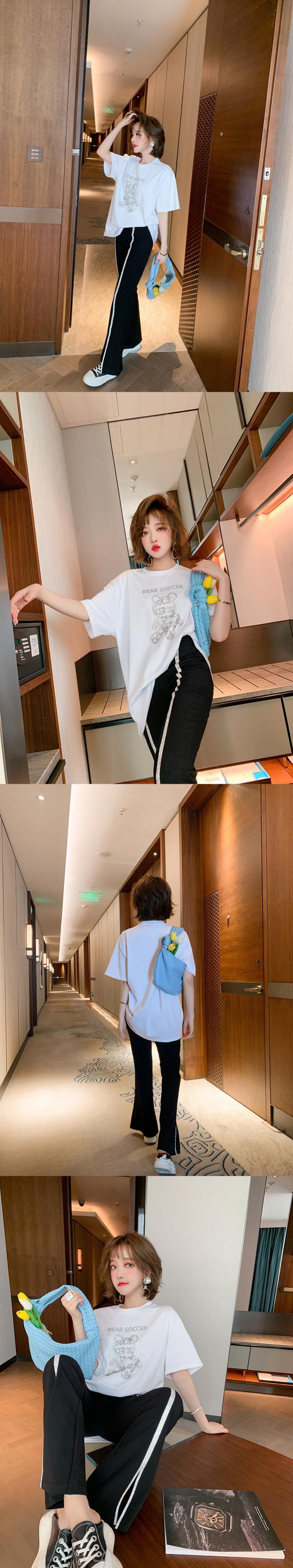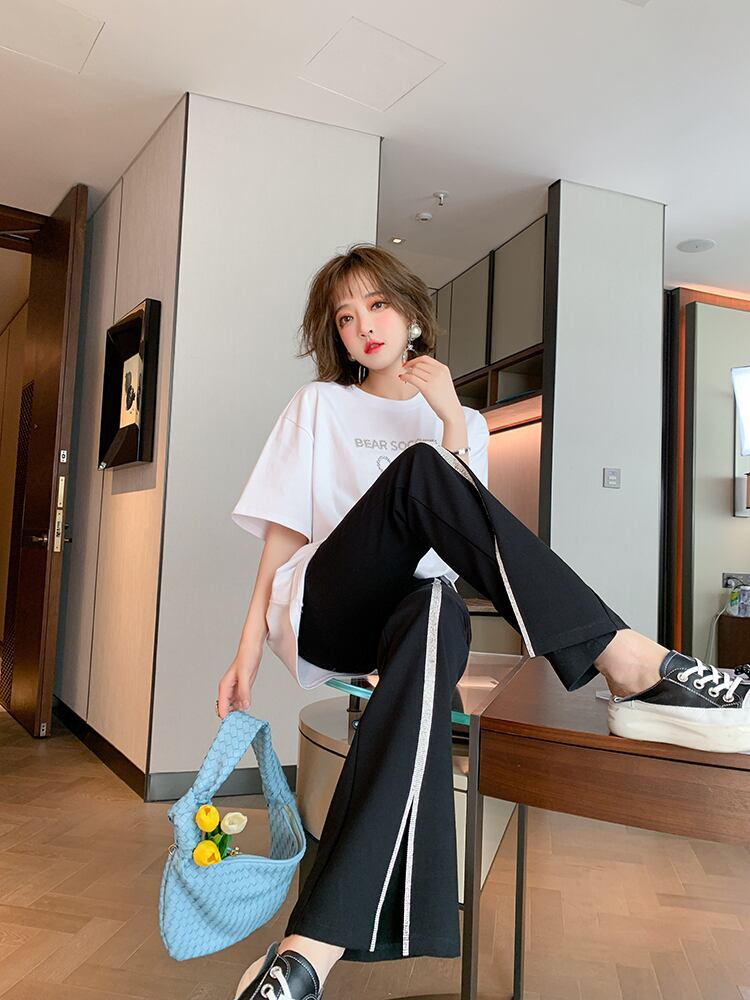 ルーズスリムTシャツ ハイウェストカジュアルパンツ スプリング 春物 MIUCO57485195047