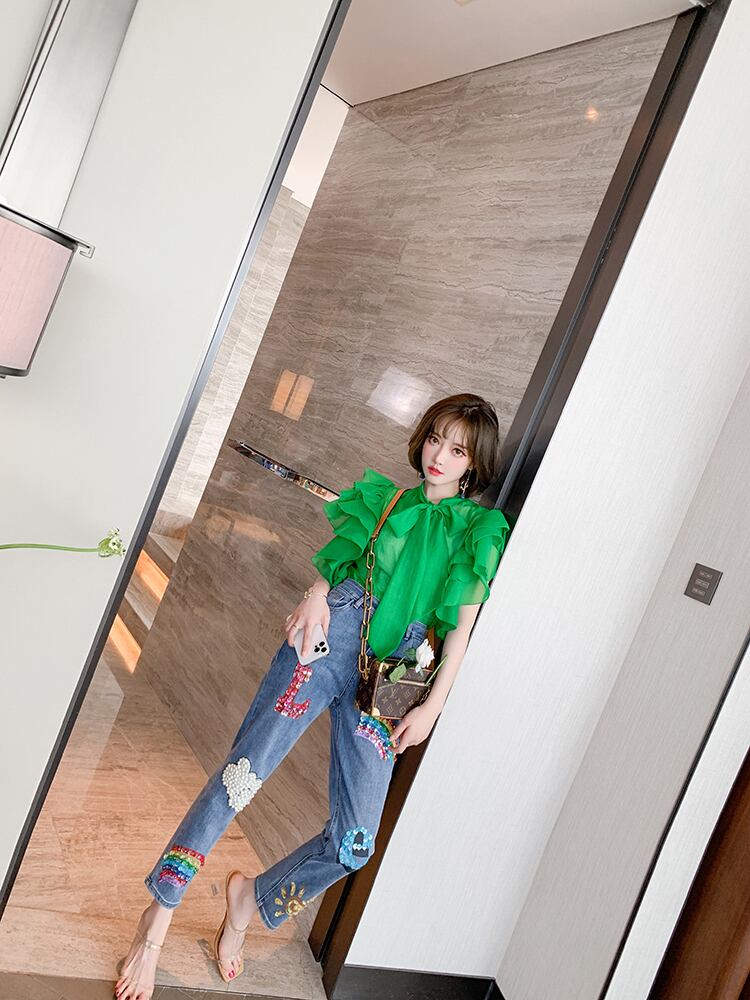 カラープリントハイウェストウェストジーンズ スプリングサマー 春物 夏物 MIUCO9881794298