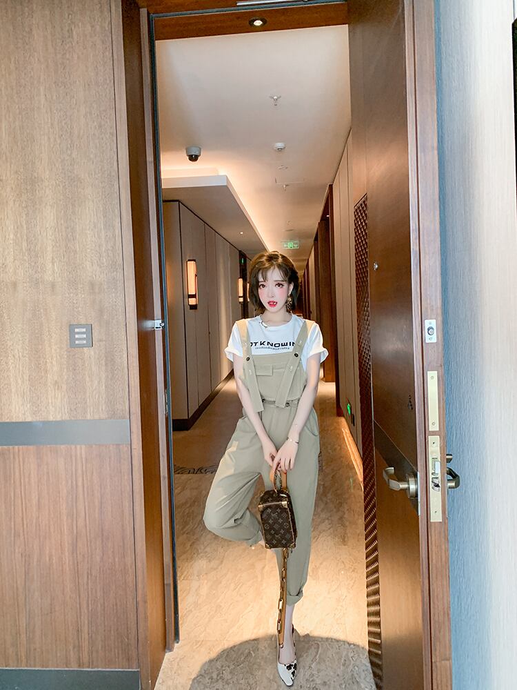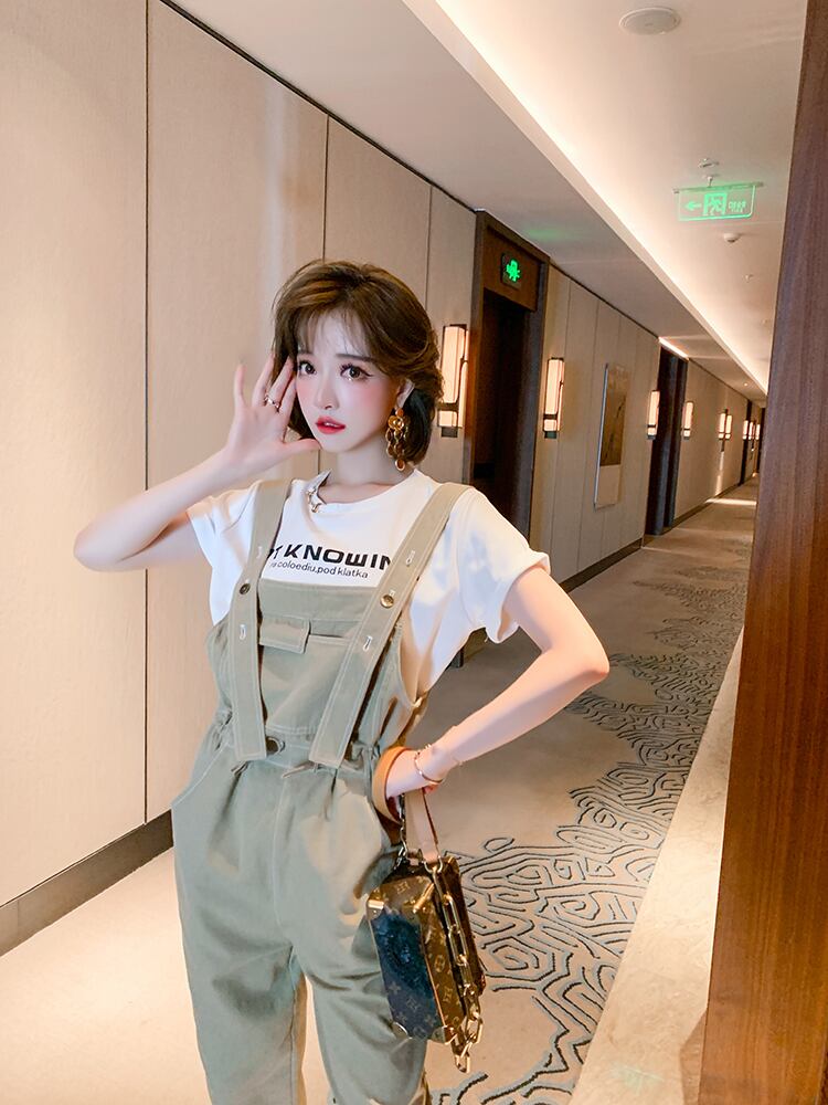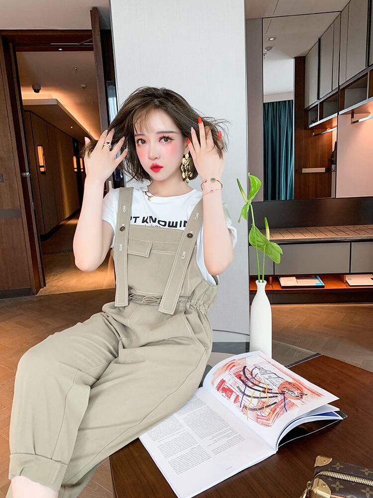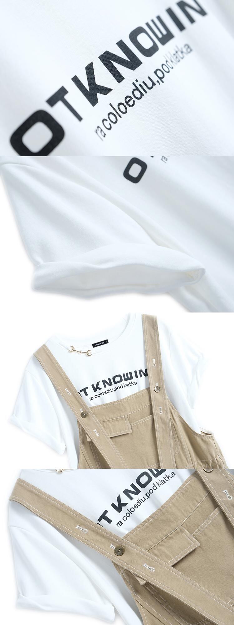 プリントラウンドネックTシャツ ルーズオーバーオール スプリングサマー 春物 夏物 Oネック MIUCO60595354834