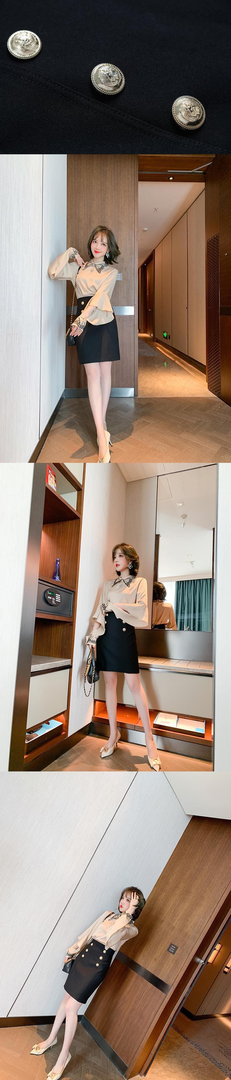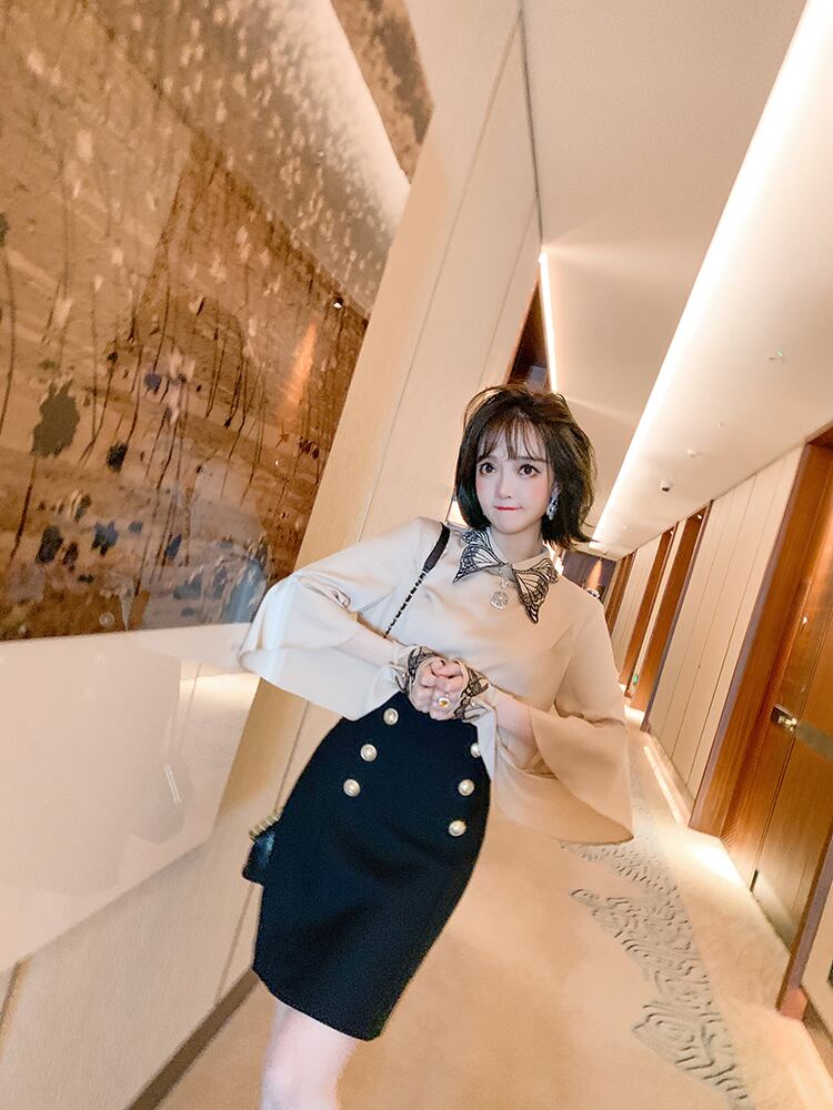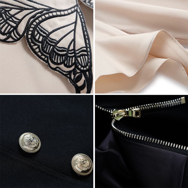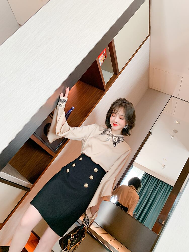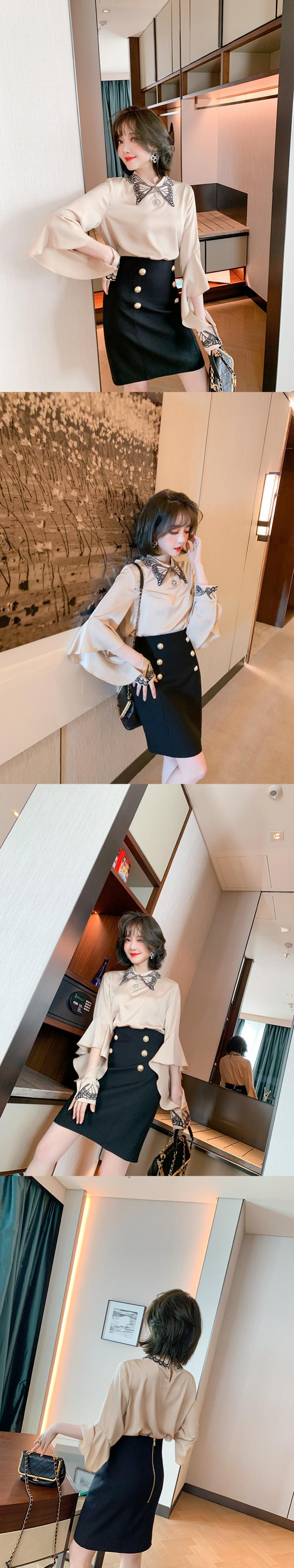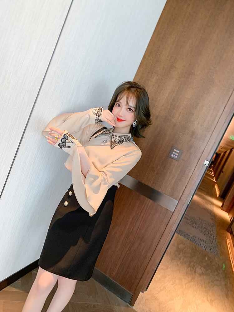Butterflyデザイン スリーブシャツ ダブルブレストハイウェストウェストスカート スプリング レッド 刺繍 春物 MIUCO87228758690
