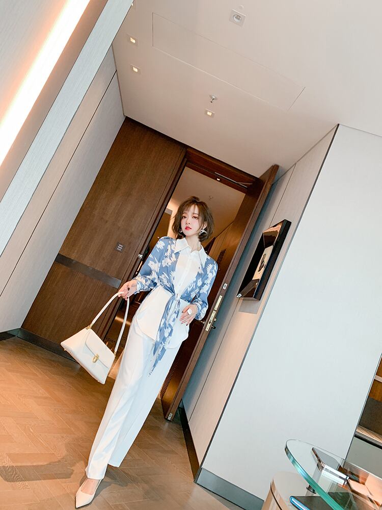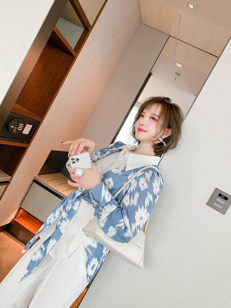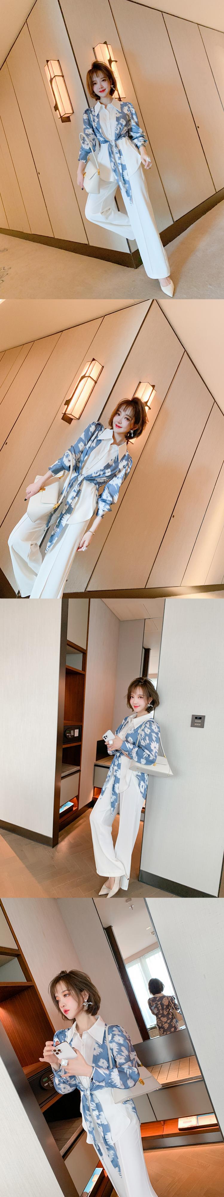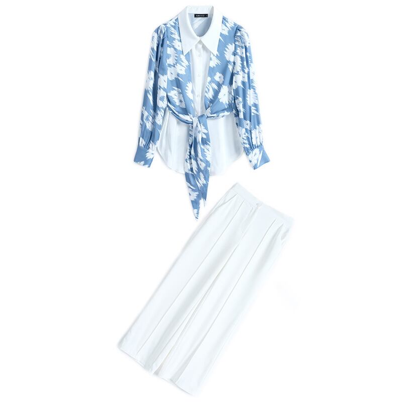 プリントカラーシャツ ハイウェストパンツ スプリング 春物 ステッチ MIUCO32524383234