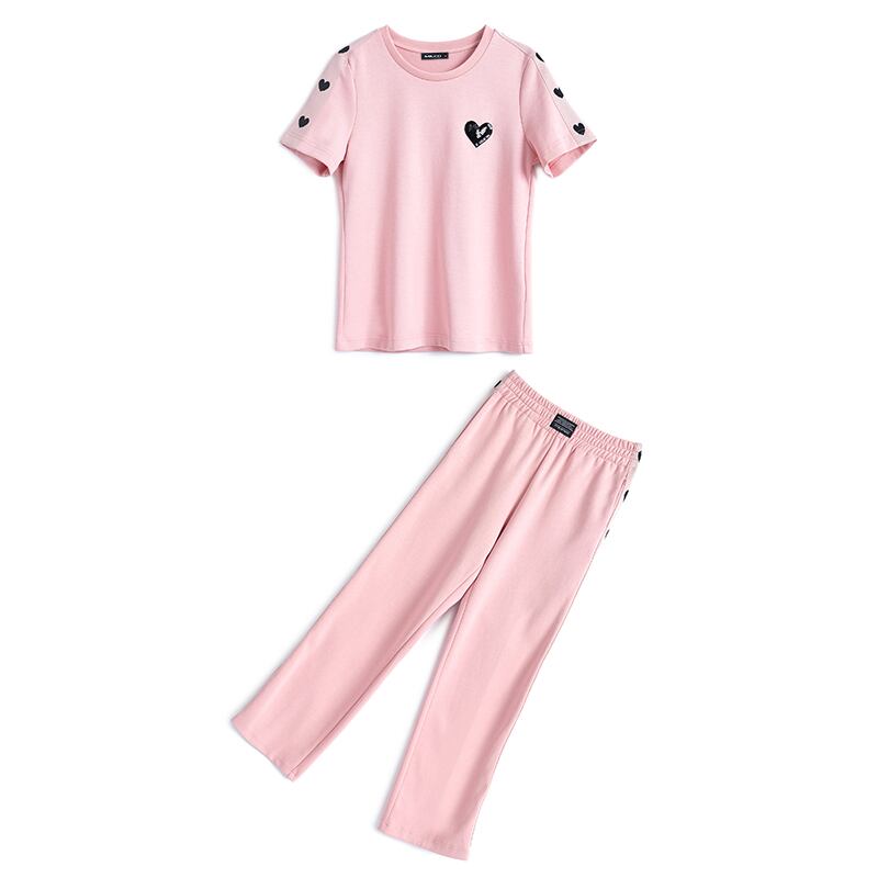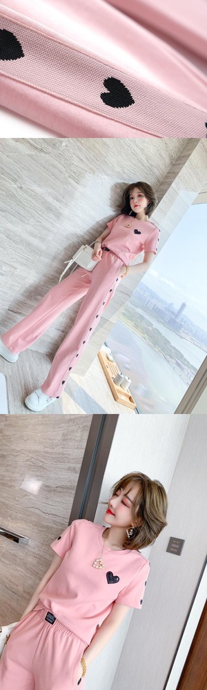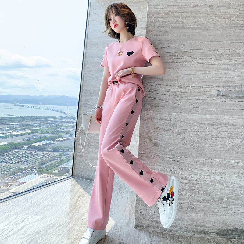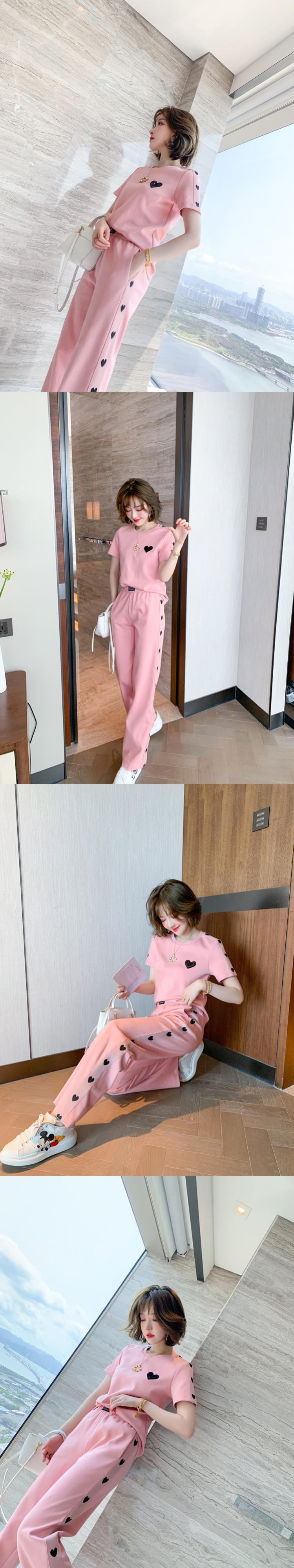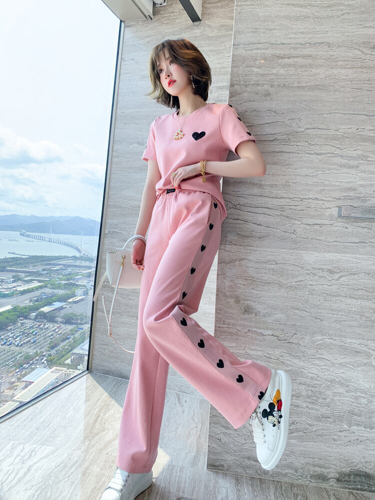 カジュアルラウンドネックTシャツ ジャカードハイウェストウェストパンツ スプリングサマー 春物 夏物 Oネック MIUCO85380933897