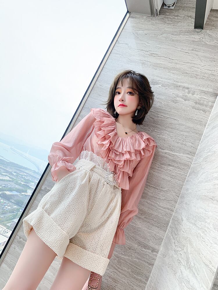 Vネックシャツ 水玉ショーツ スプリングサマー レッド 刺繍 春物 夏物 ブルマー MIUCO43454588968