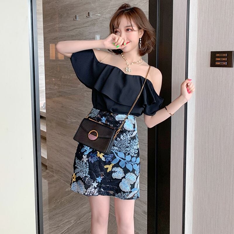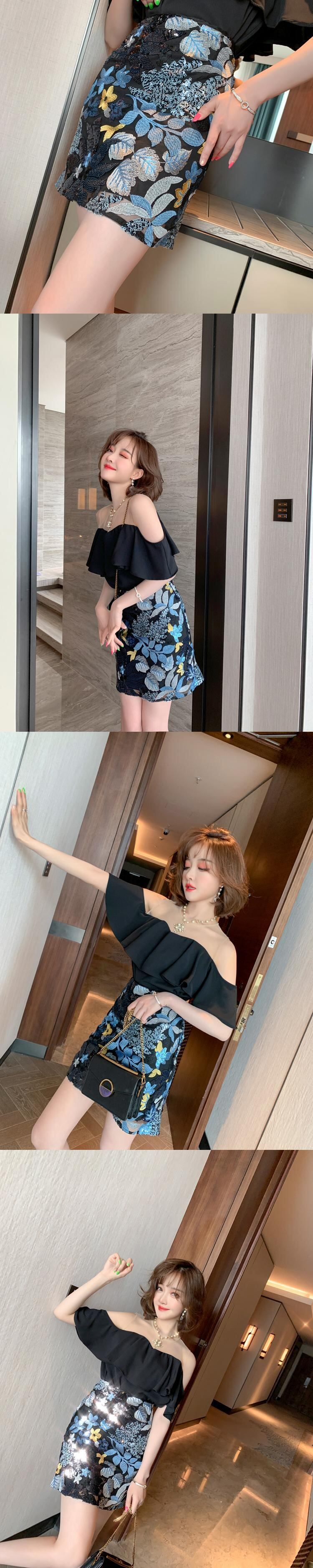 ストラップレストップス スパンコールスカート スプリングサマー レッド 刺繍 春物 夏物 ステッチ MIUCO61552080897