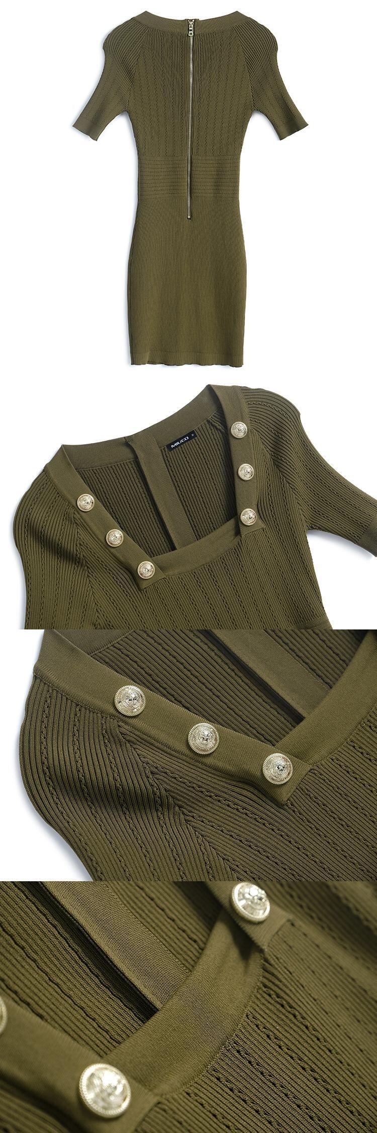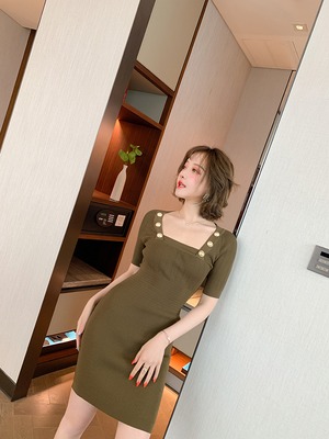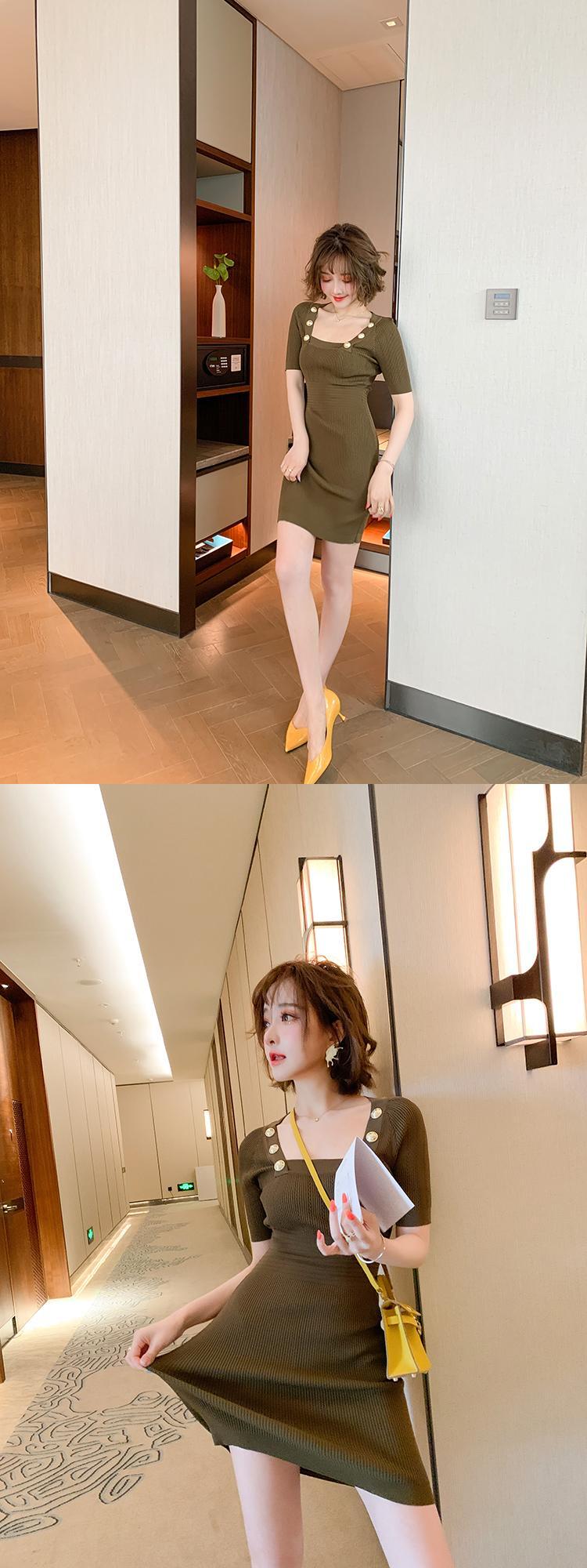 カラーメタルボタンウェストスリムニットドレス スプリング 春物 スクウェア MIUCO95662676143