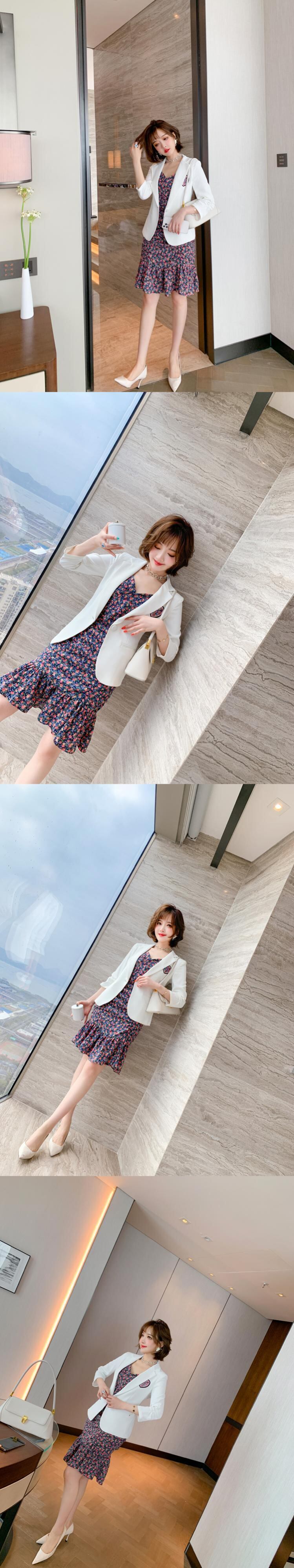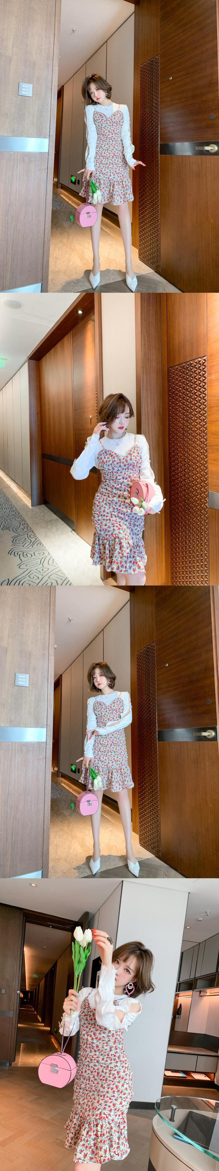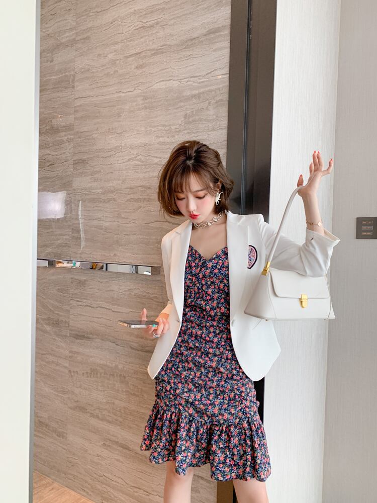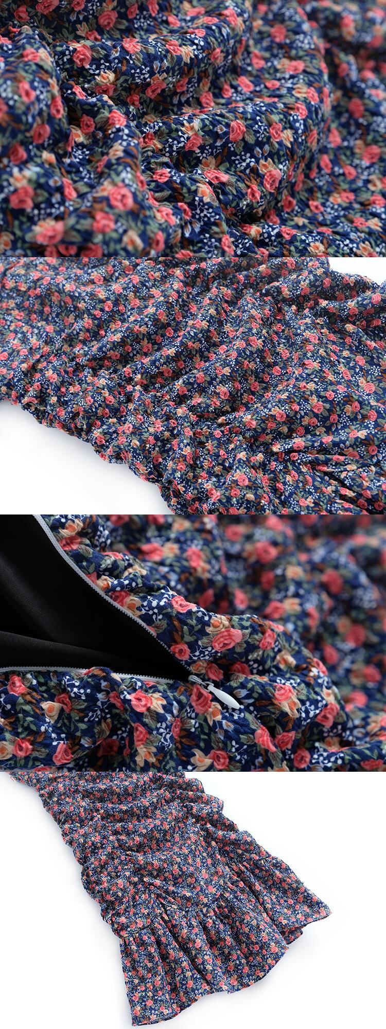 Vネックスタンダードプリントドレス スプリング レトロ 春物 ステッチ MIUCO99328931535