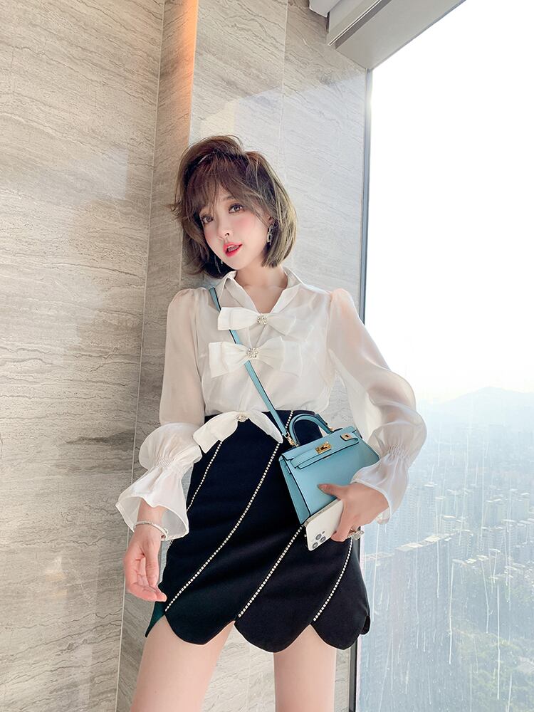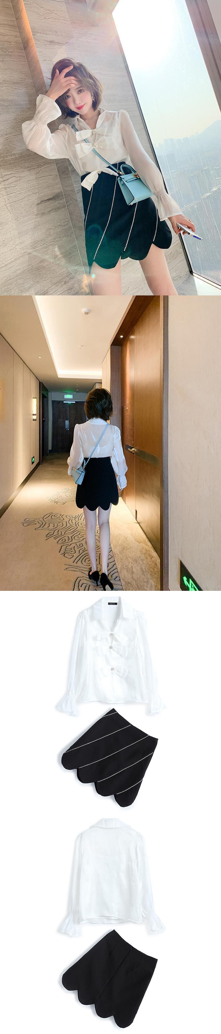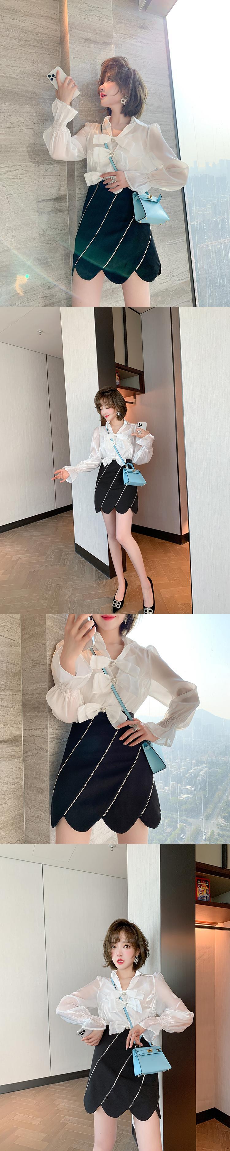 スリーブシャツ ストライプレーススカート スプリング リボン 春物 MIUCO20481851777