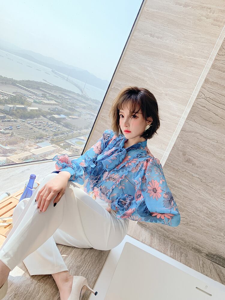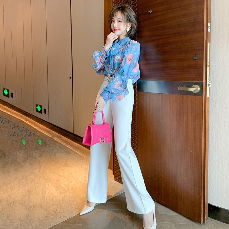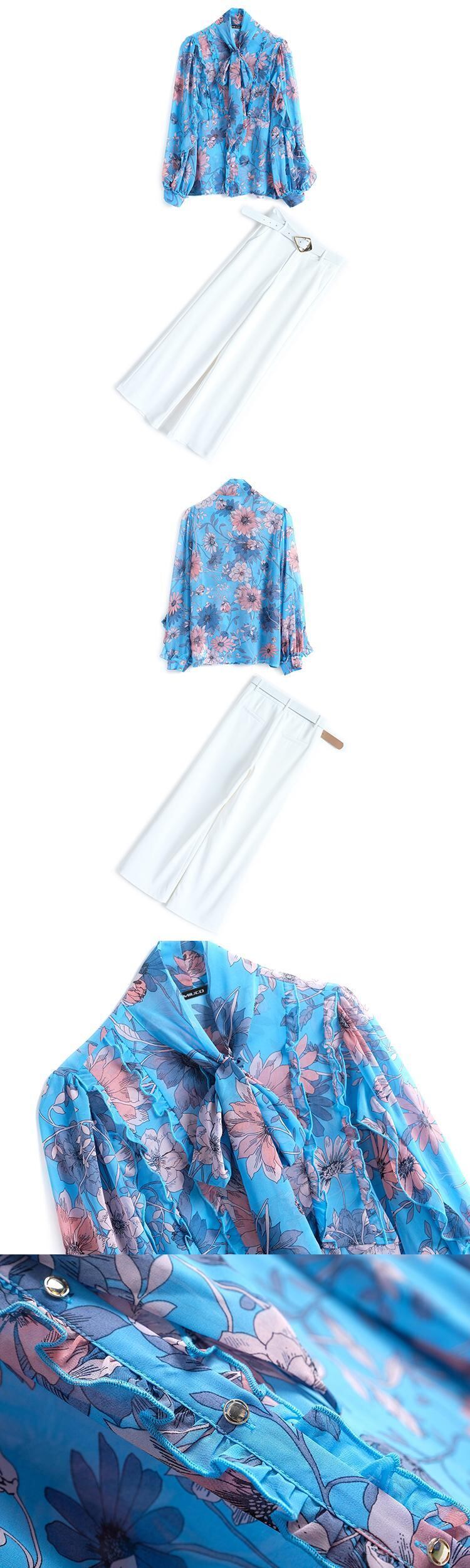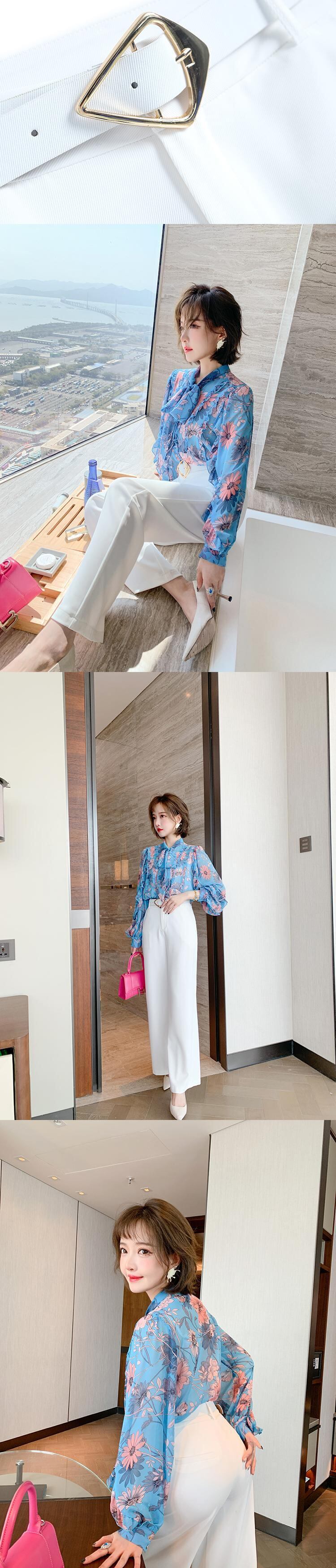プリントシャツ ハイウェストウェストスリムルーズパンツ スプリング 春物 MIUCO41645325460