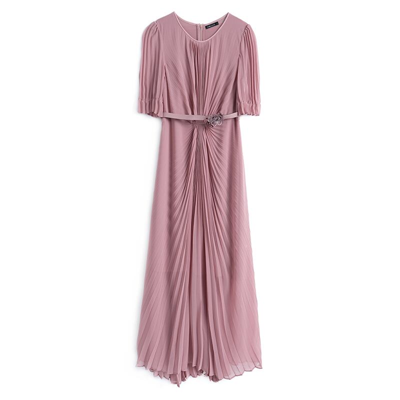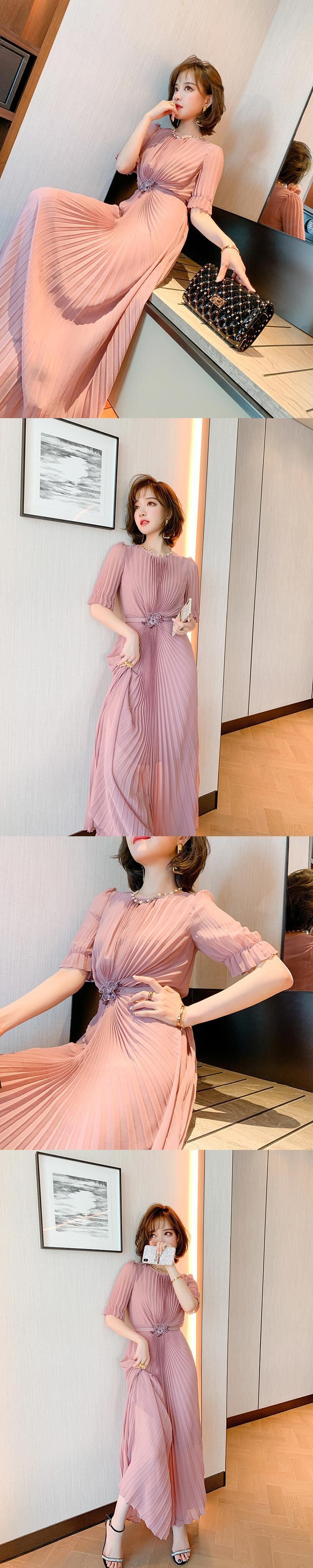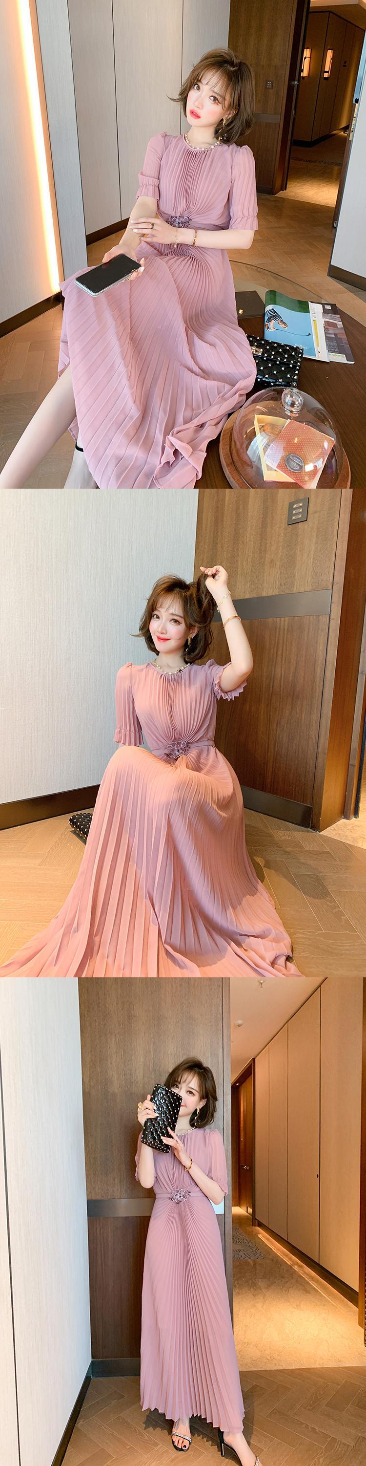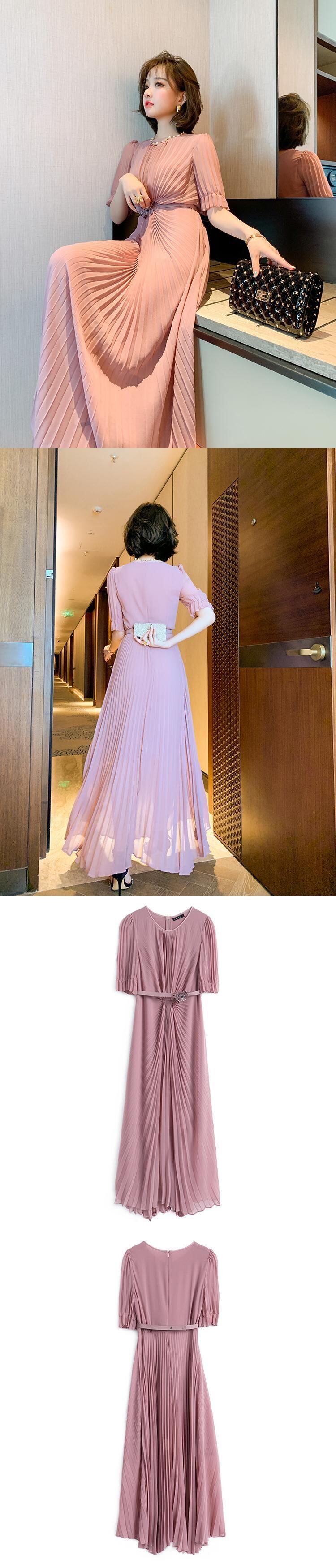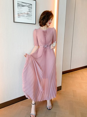 プリーツFlowerデザイン ウェストロングスカート ドレス スプリングサマー エレガント 春物 夏物 フラワーデザイン MIUCO63918775609