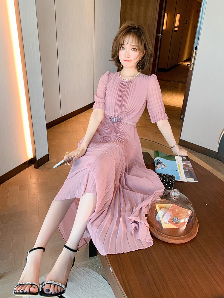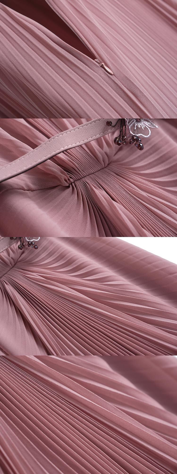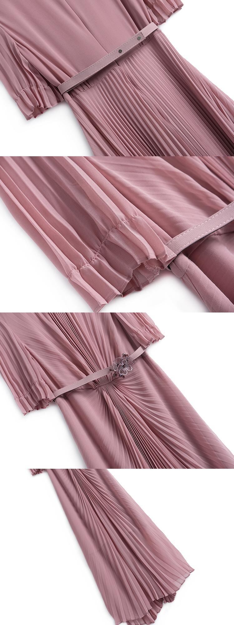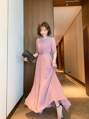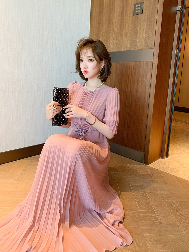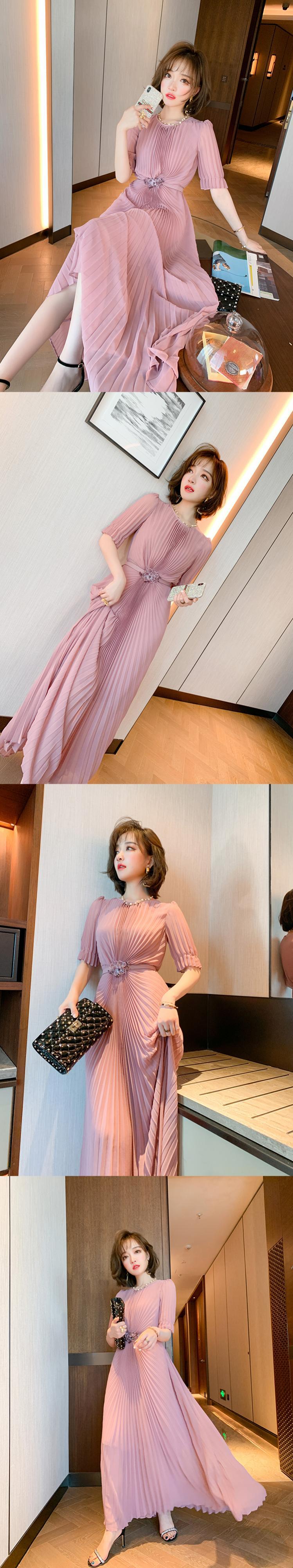 プリーツFlowerデザイン ウェストロングスカート ドレス スプリングサマー エレガント 春物 夏物 フラワーデザイン MIUCO63918775609