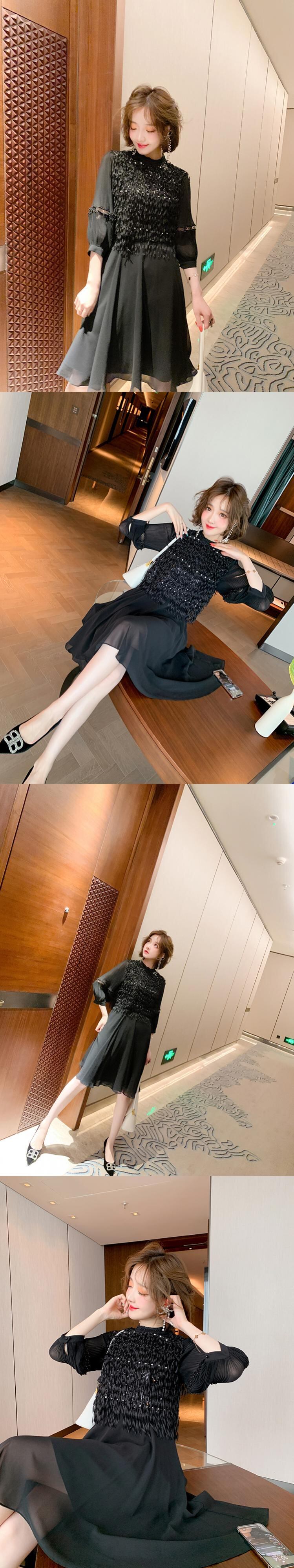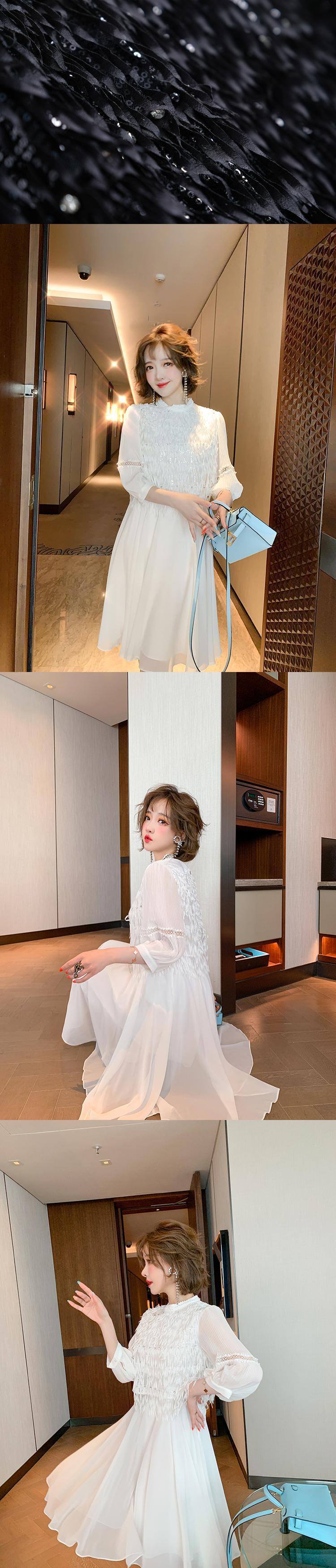 スリーブ薄手ドレス スプリング ランタンスリーブ 春物 MIUCO19090227258