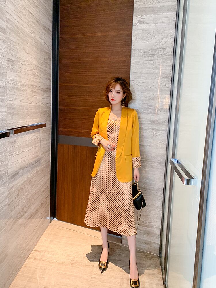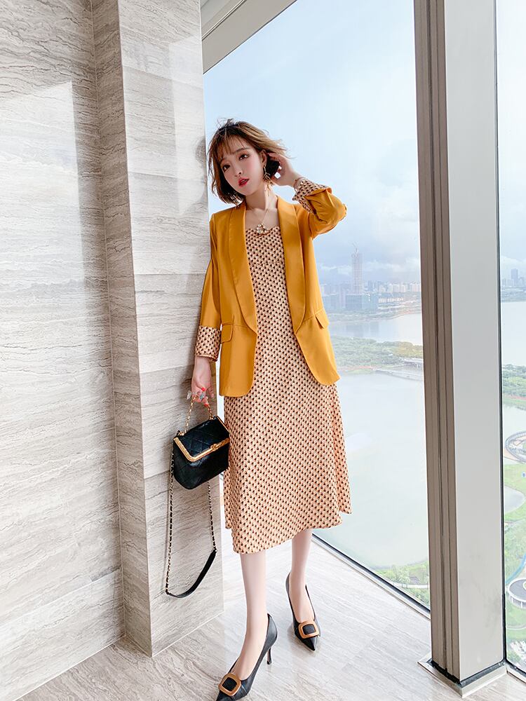 グリーンカラージャケット プリントドレス スプリング 春物 MIUCO5912853219
