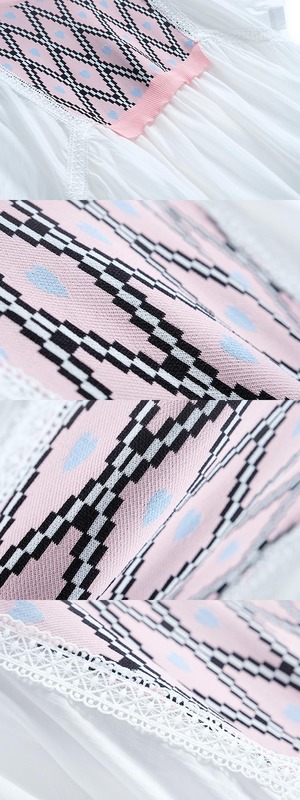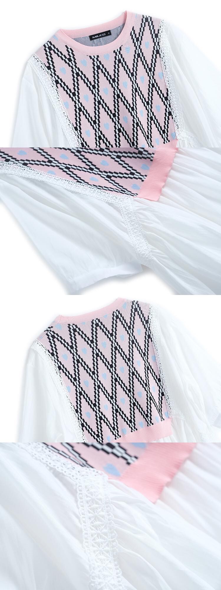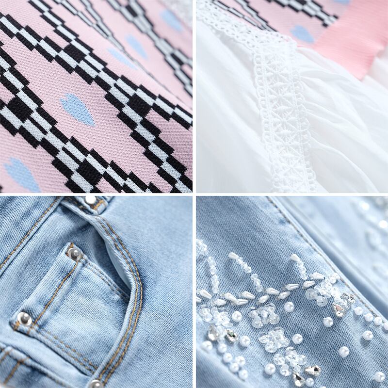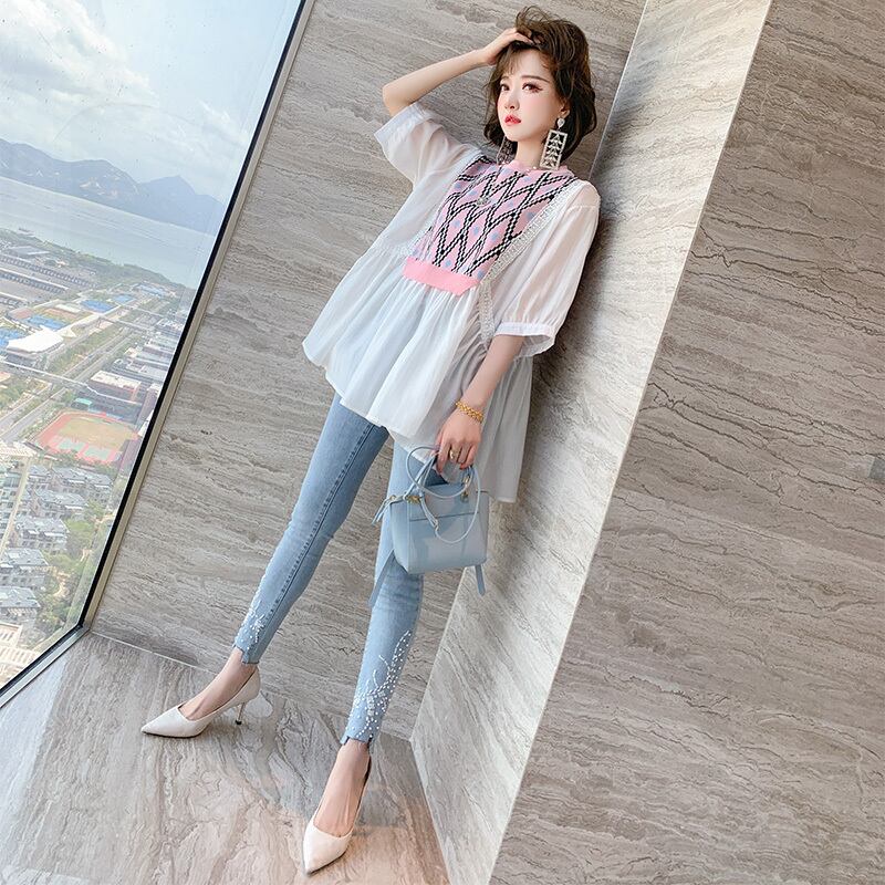 ジャカードニットシャツ スリーブトップス スリムジーンズ スプリングサマー 春物 夏物 ステッチ MIUCO38296288947