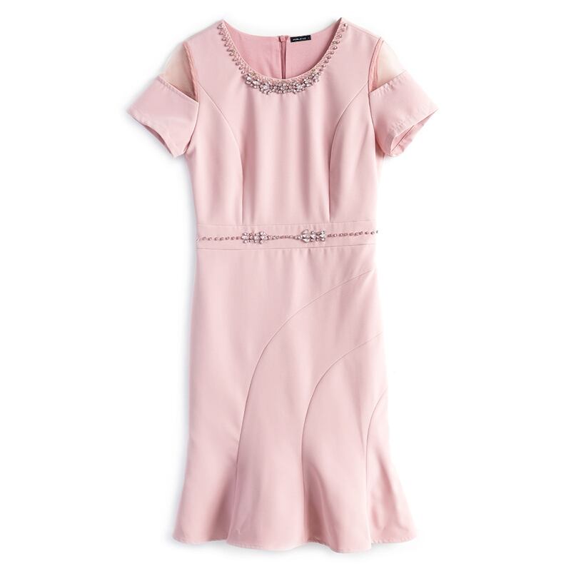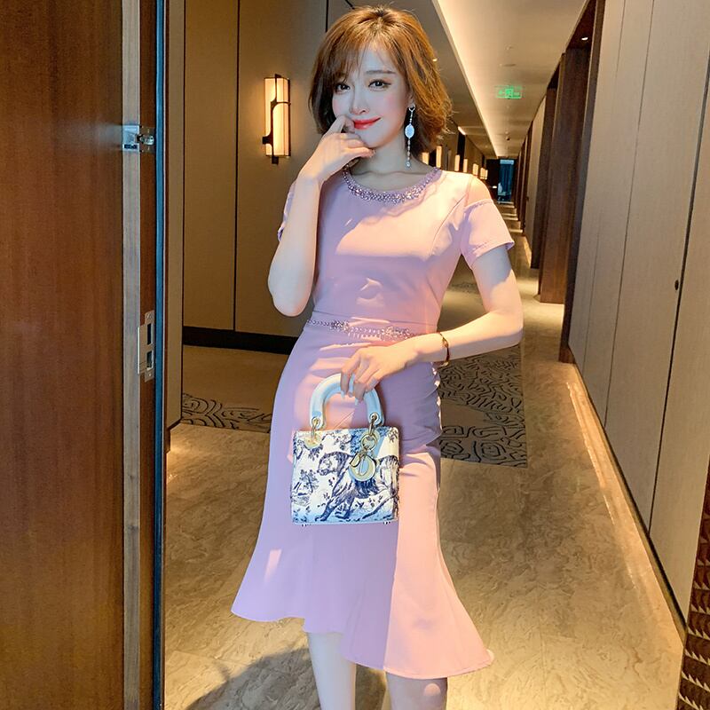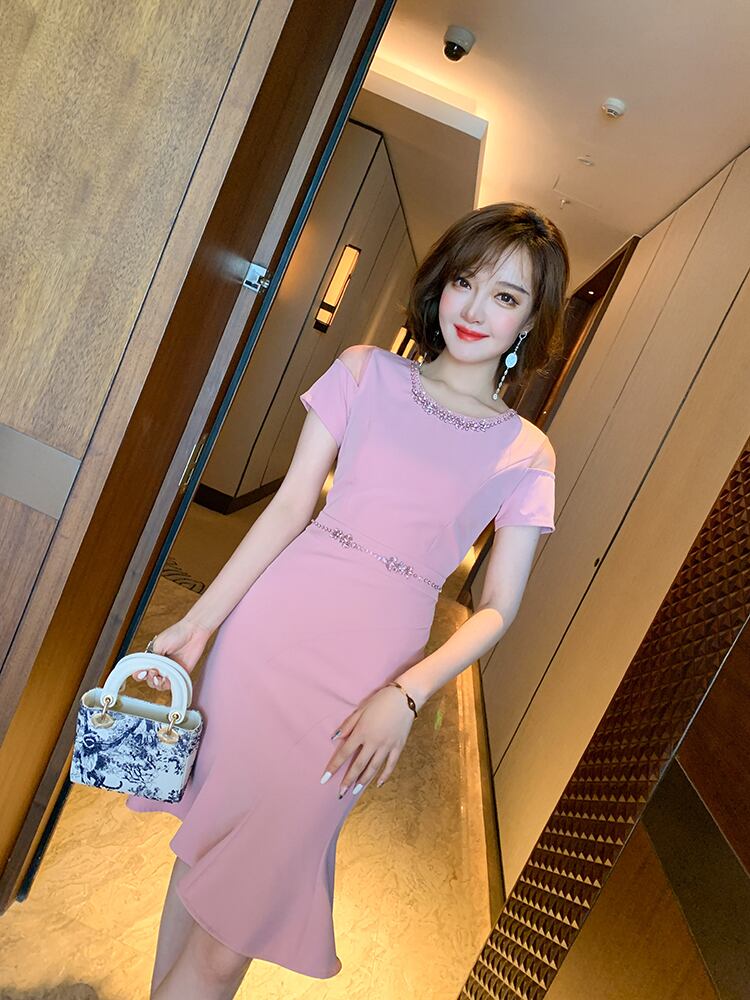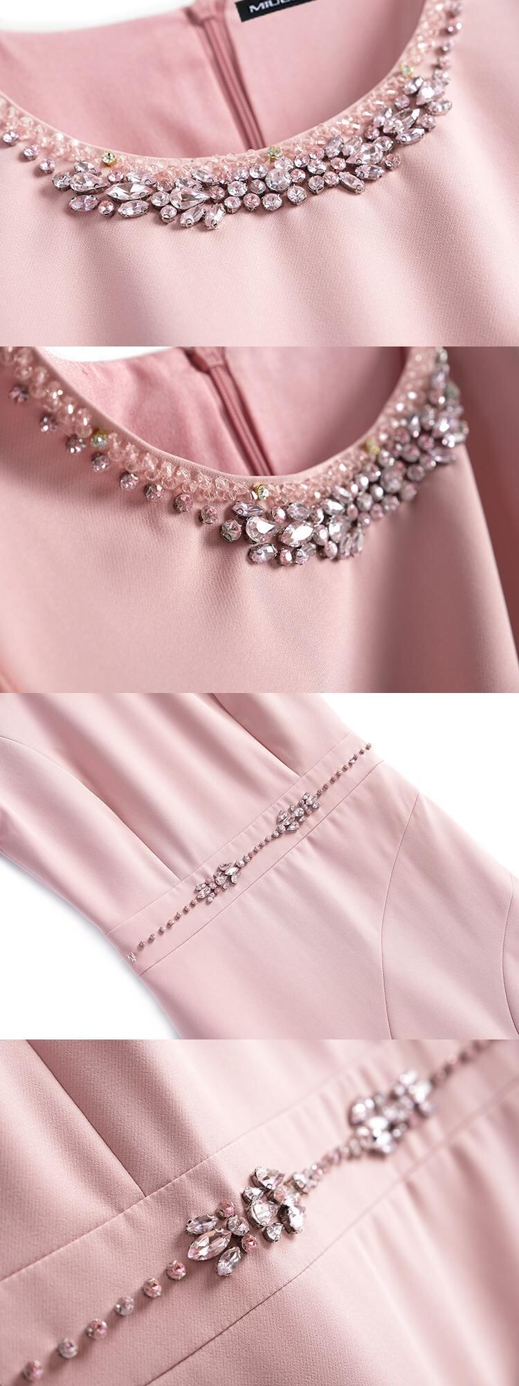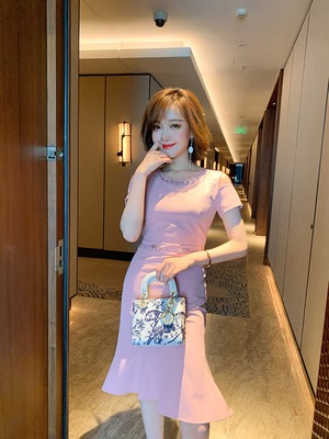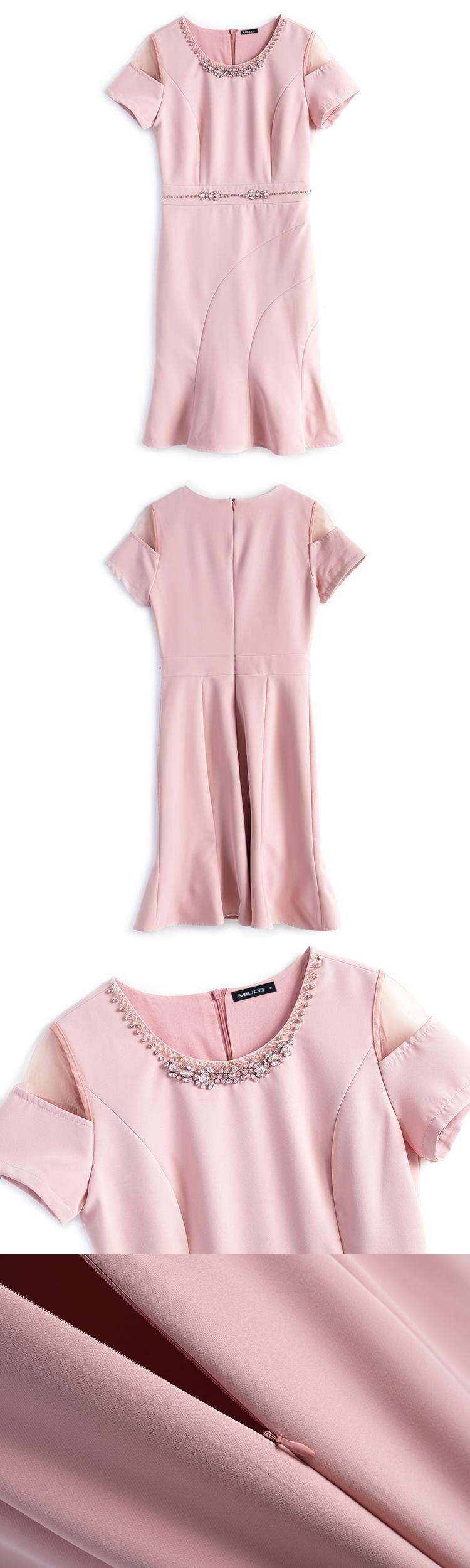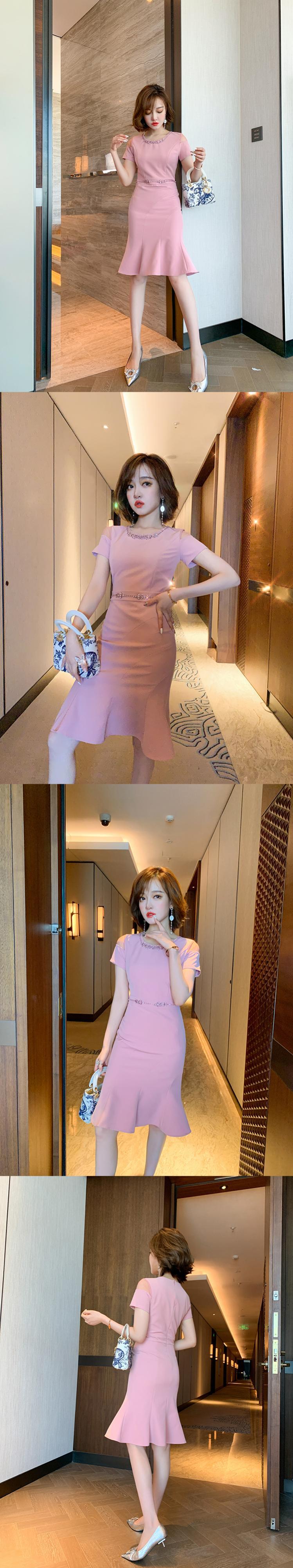 ラウンドネックハイウェストウェストスリムドレス スプリング 春物 Oネック ステッチ MIUCO46260099282