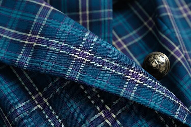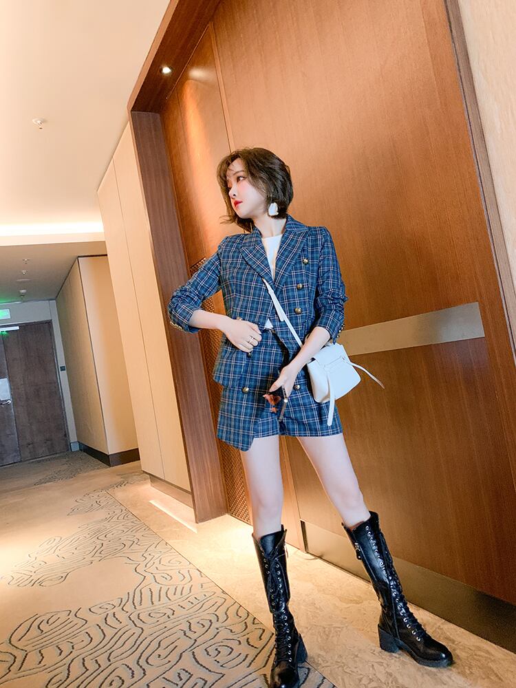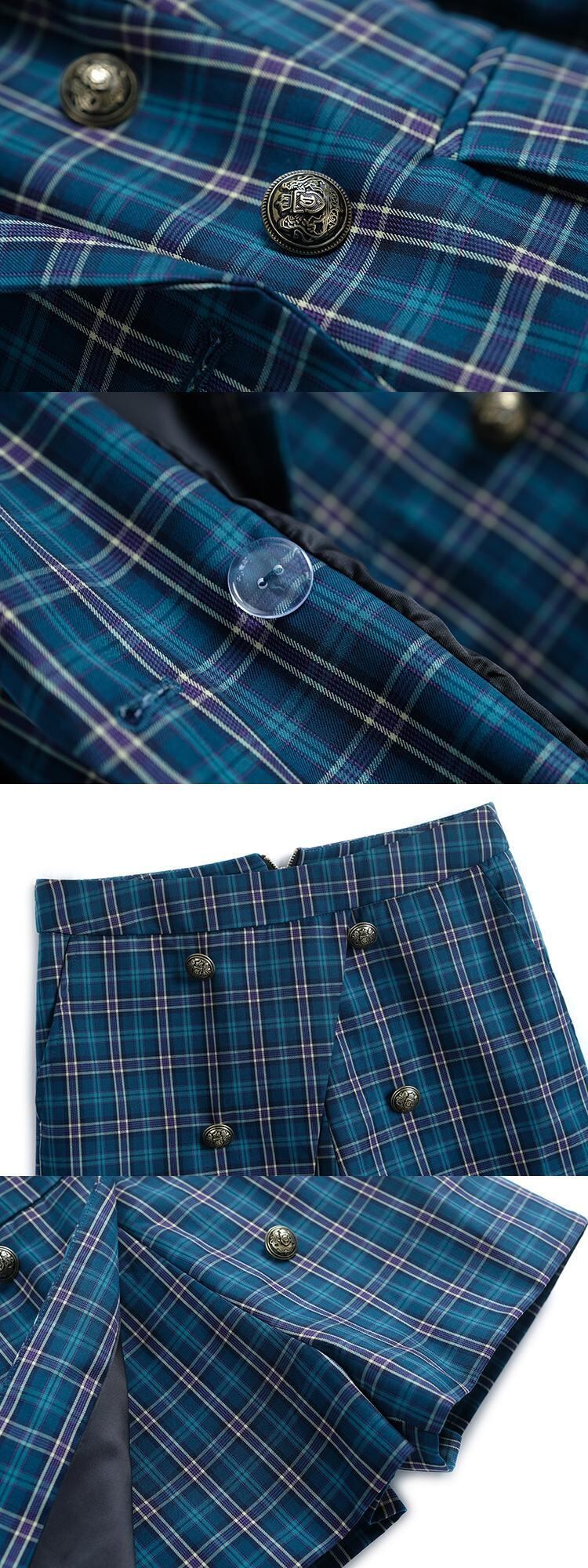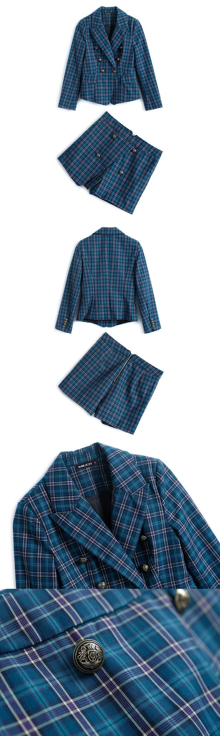スタンダード格子柄ダブルブレストウェストブレザー スカート パンツ スプリング レトロ 春物 MIUCO73531673409
