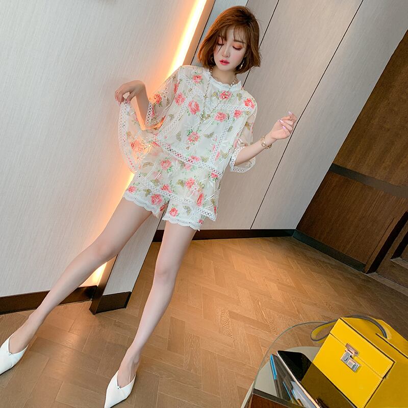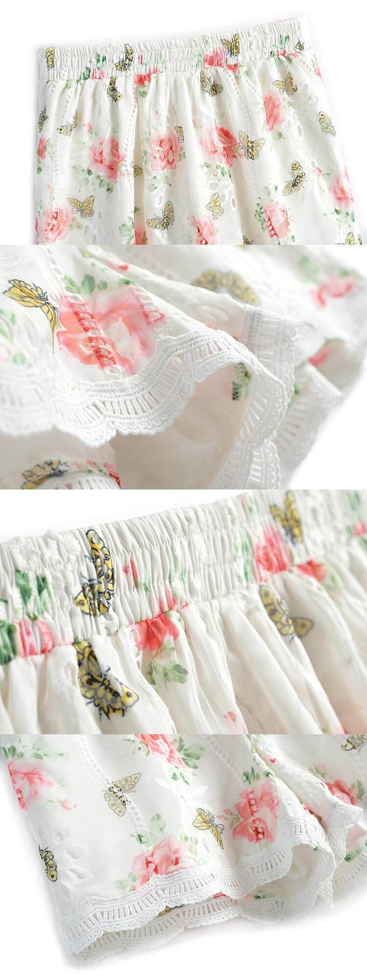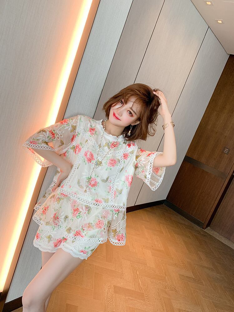 スタンダードプリント刺繍ルーズハイウェストウェストショーツ サマー レトロ 夏物 ブルマー MIUCO64698469326