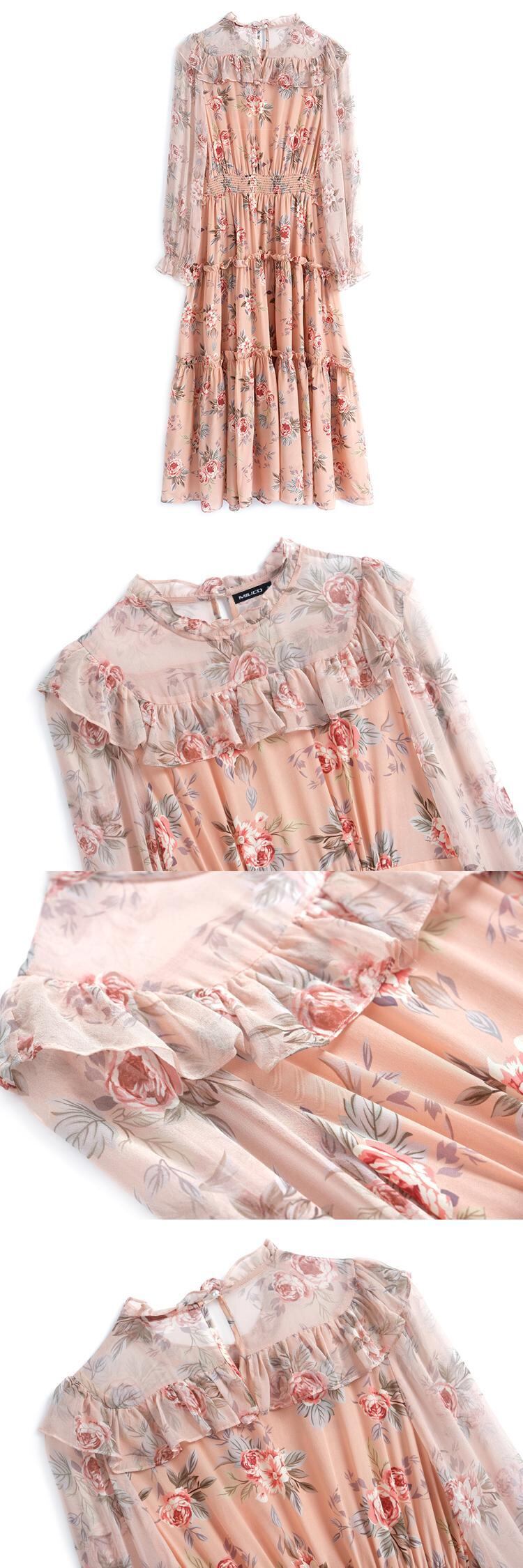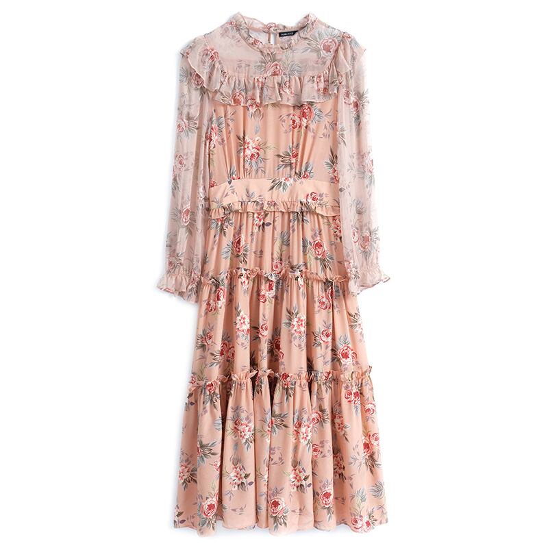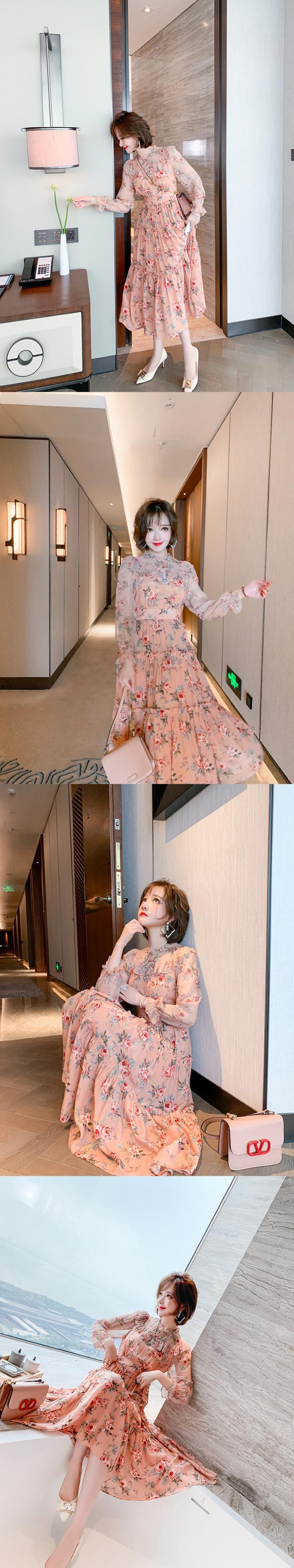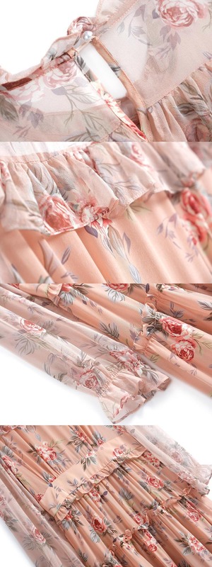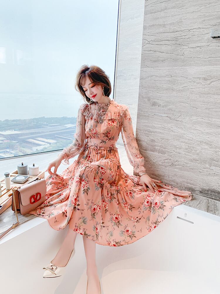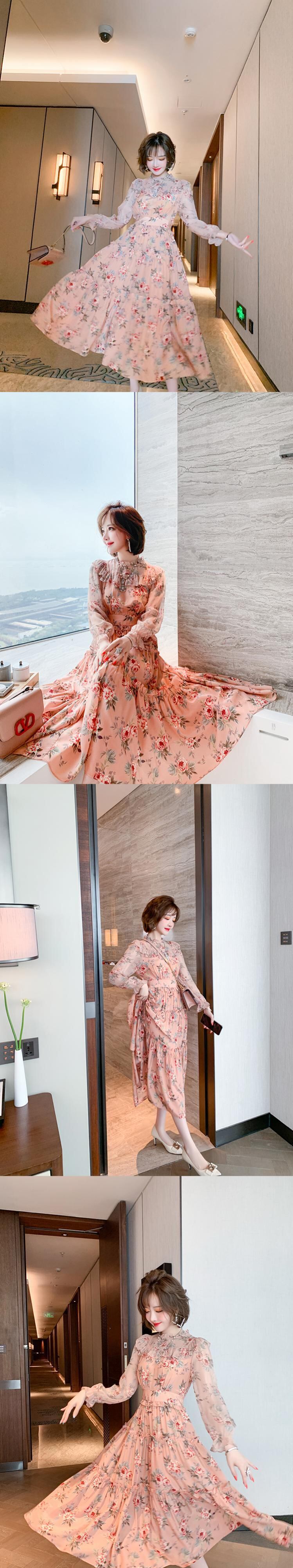 カラーウェストプリントドレス スプリング 春物 シルク ステッチ MIUCO95090923292