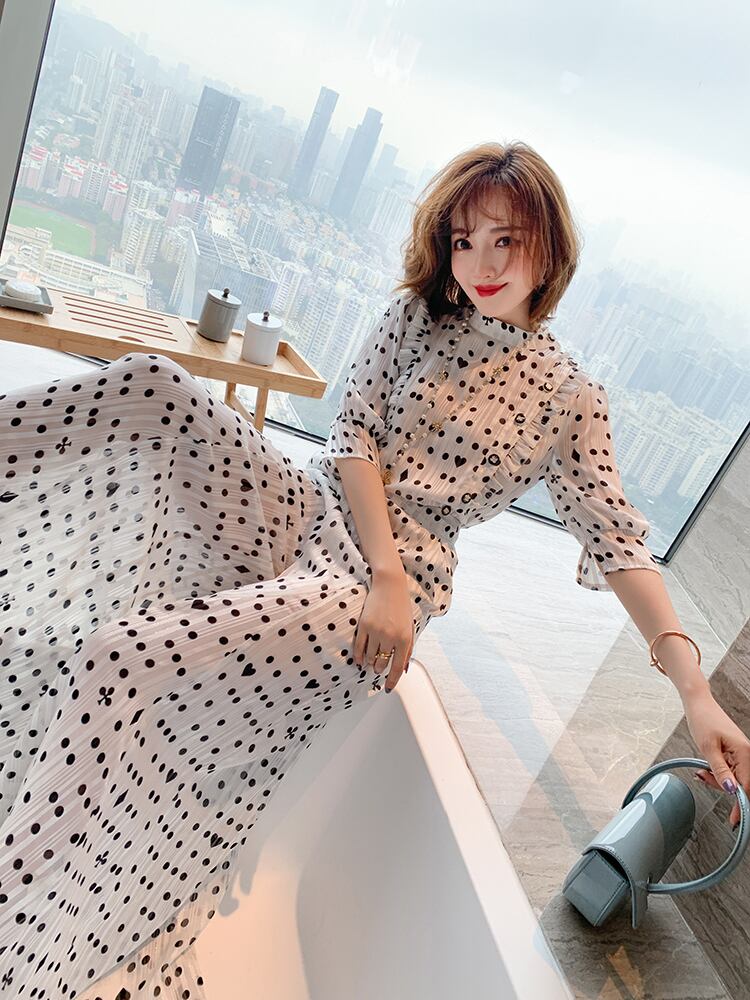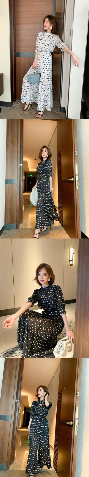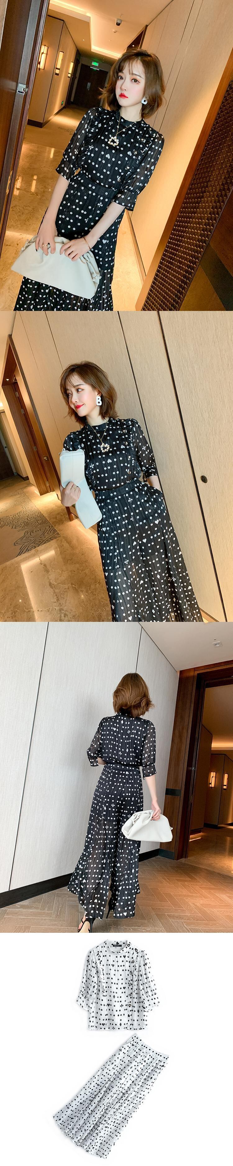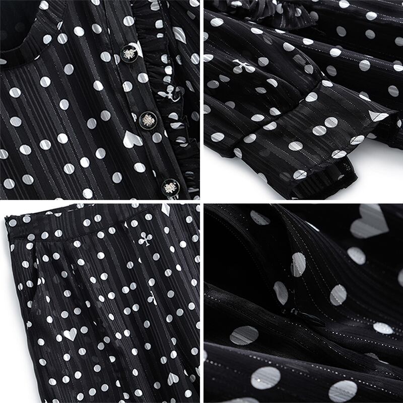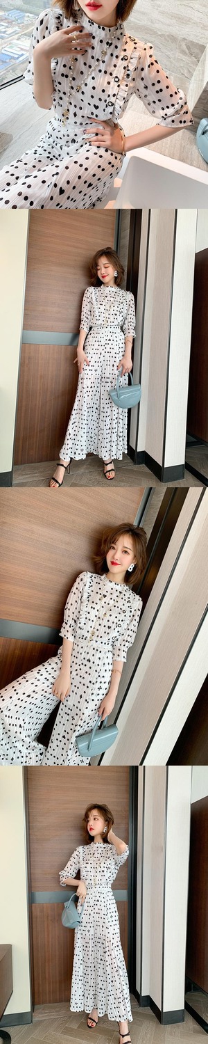 スタンドカラーカラー水玉トップス ワイドレッグパンツ セット スプリング 春物 ワイドパンツ MIUCO3127116917