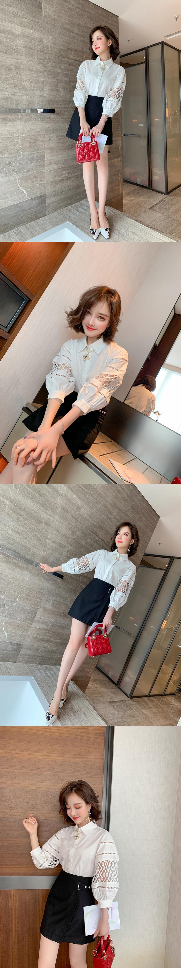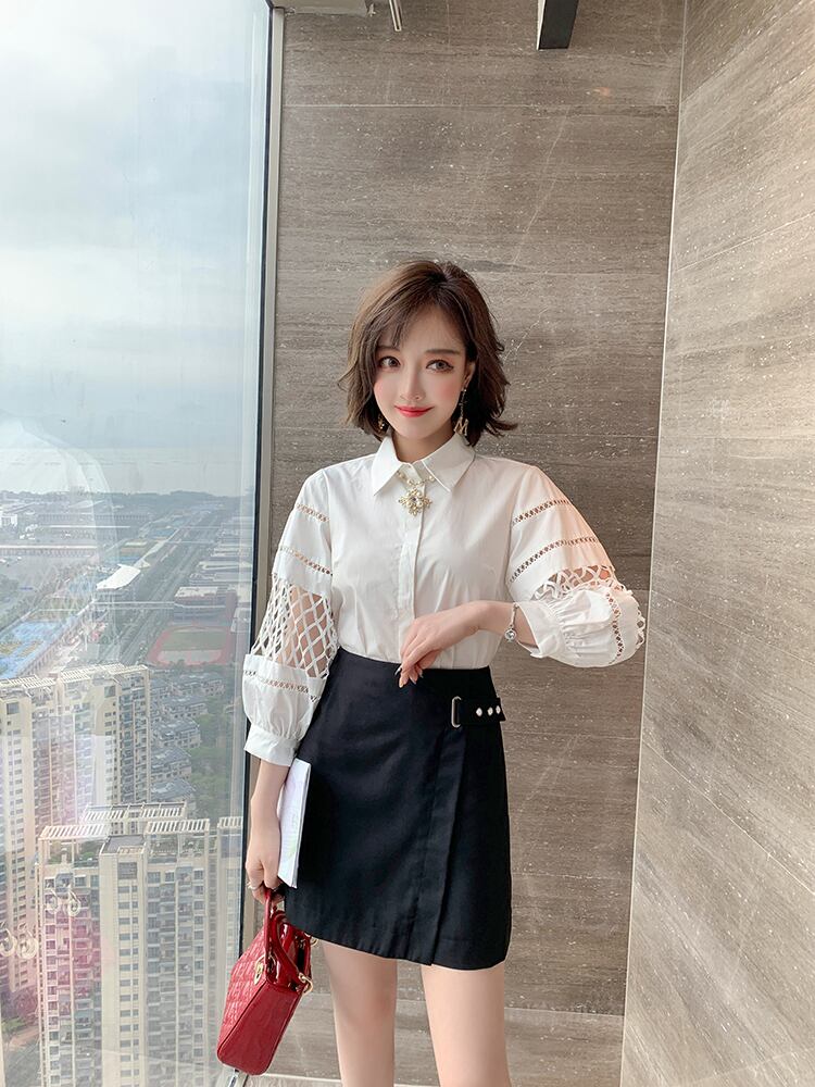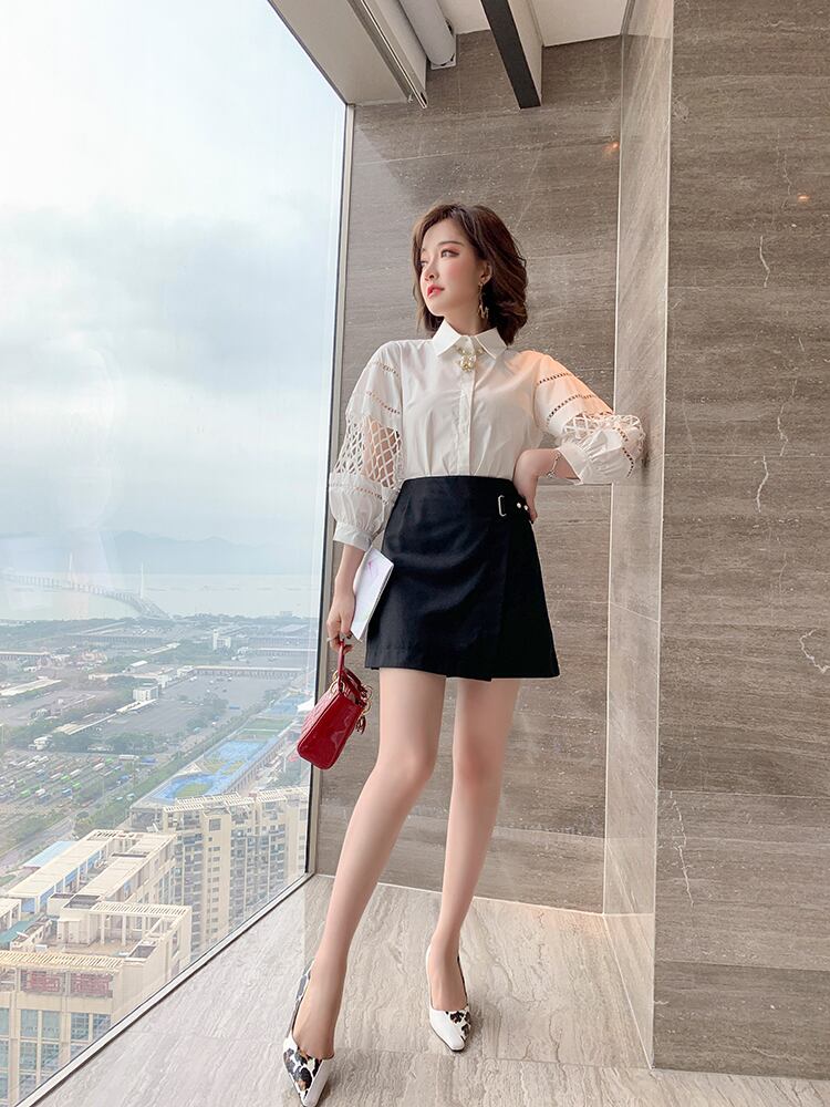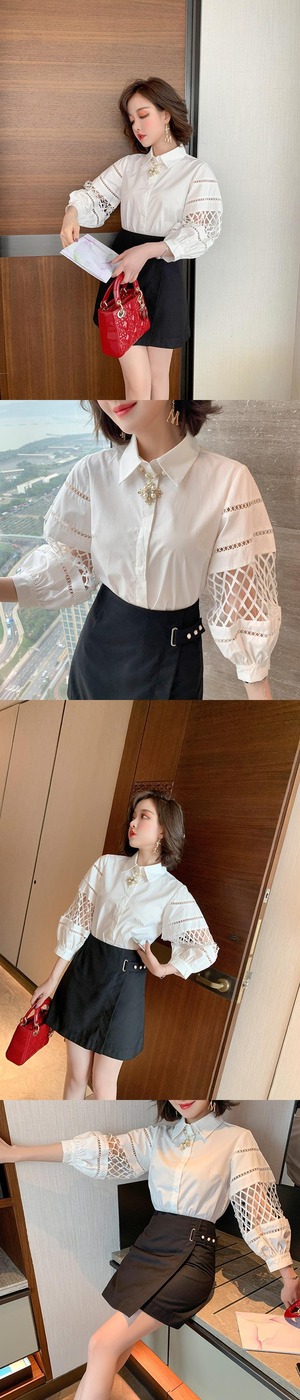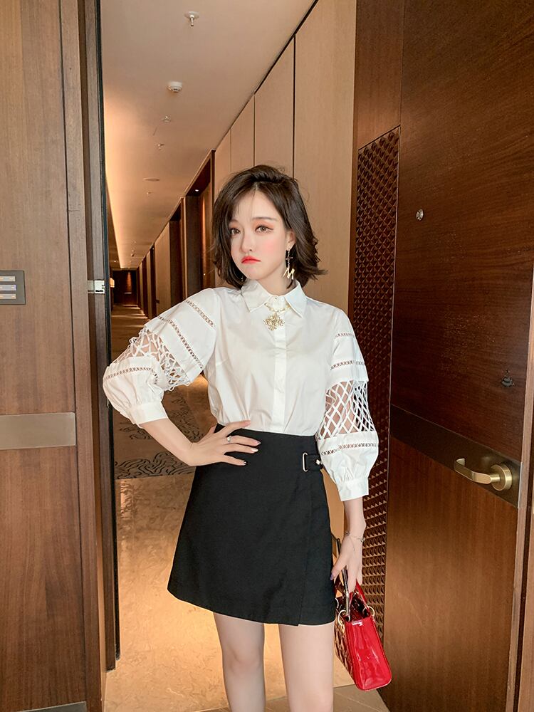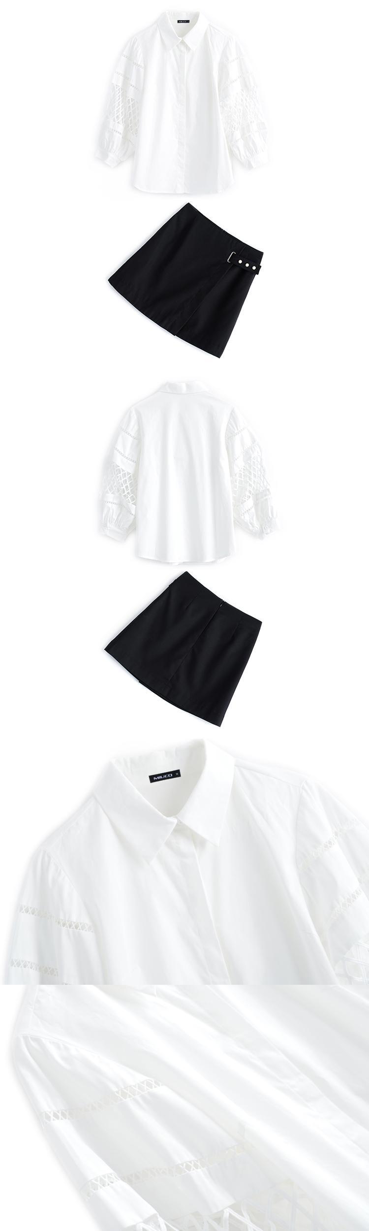 スリーブシャツ Aラインリング ボタンソリッド カラースカート サマー ランタンスリーブ 夏物 指輪 ソリッドカラー MIUCO9137574193