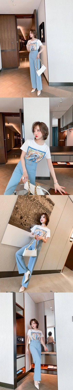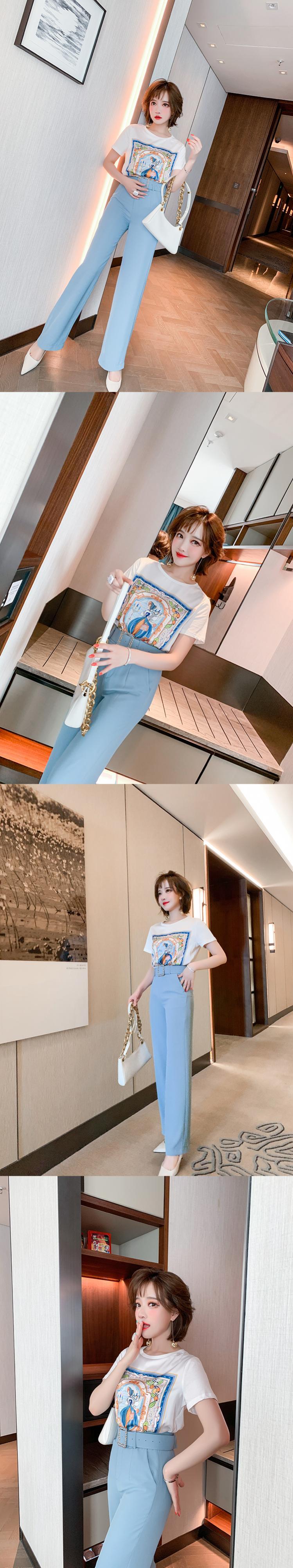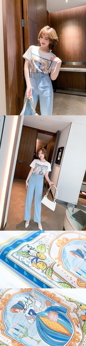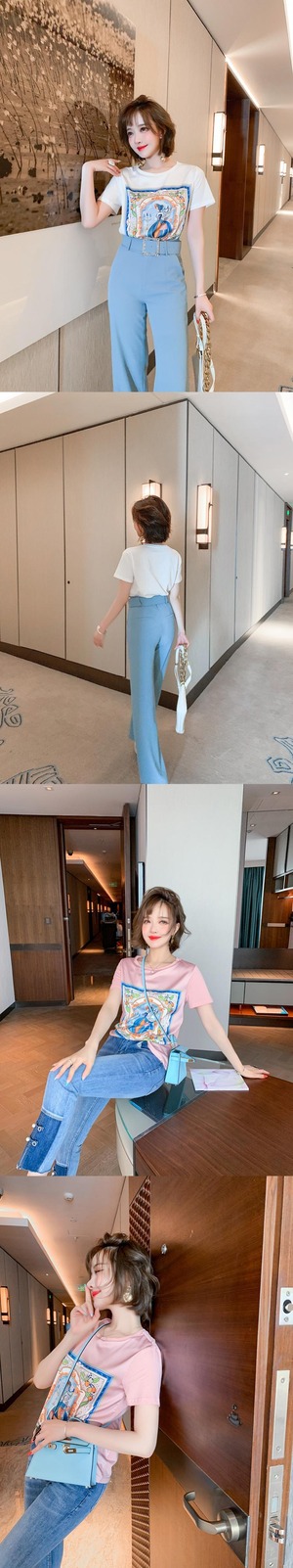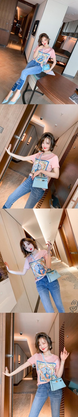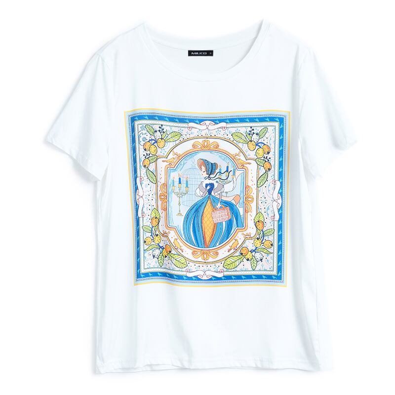 ラウンドネックプリント柄スタイルTシャツ スプリング 春物 Oネック MIUCO17138833747