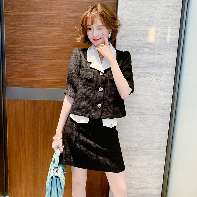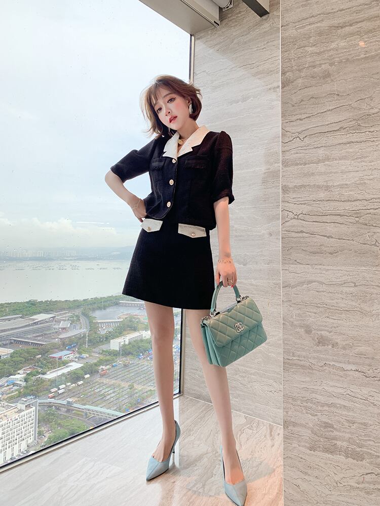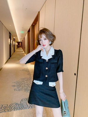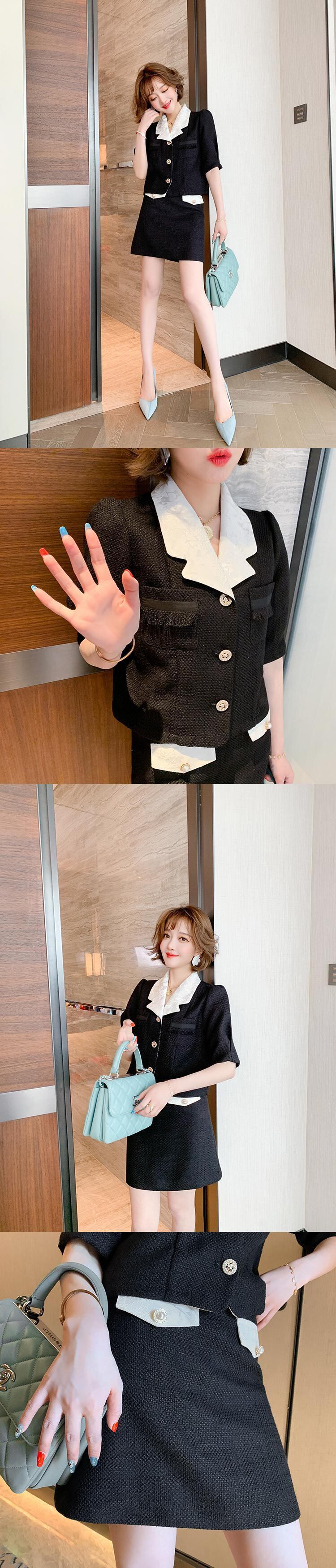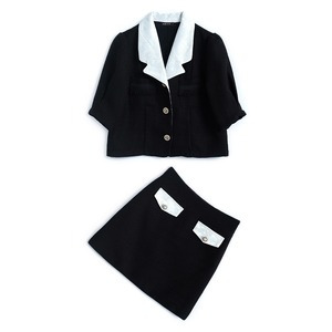 カラージャカードトップス ハイウェストウェストポケットスカート オータム 秋物 MIUCO56017782416