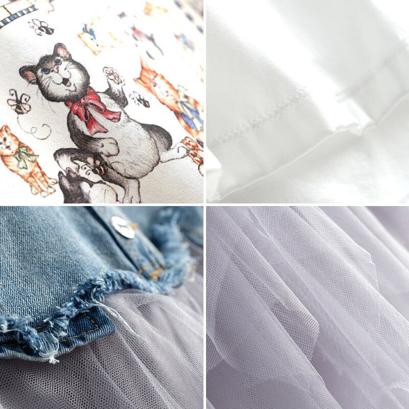 プリントTシャツ ハイウェストウェストメッシュスカート スプリングサマー 春物 夏物 ステッチ MIUCO38486012413