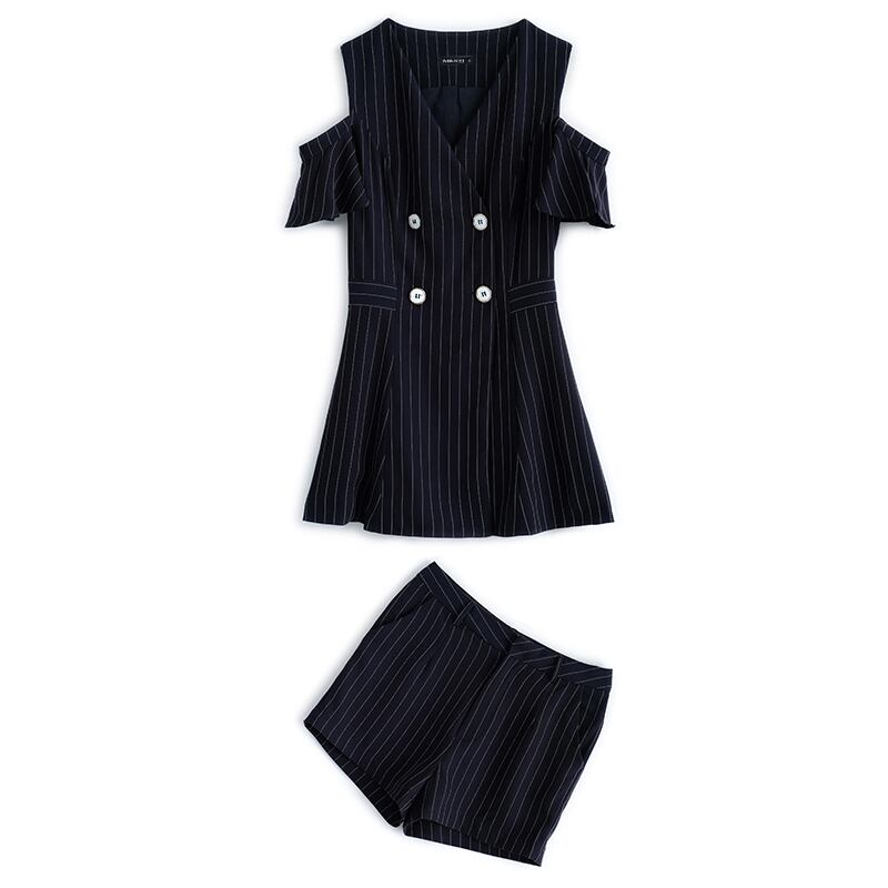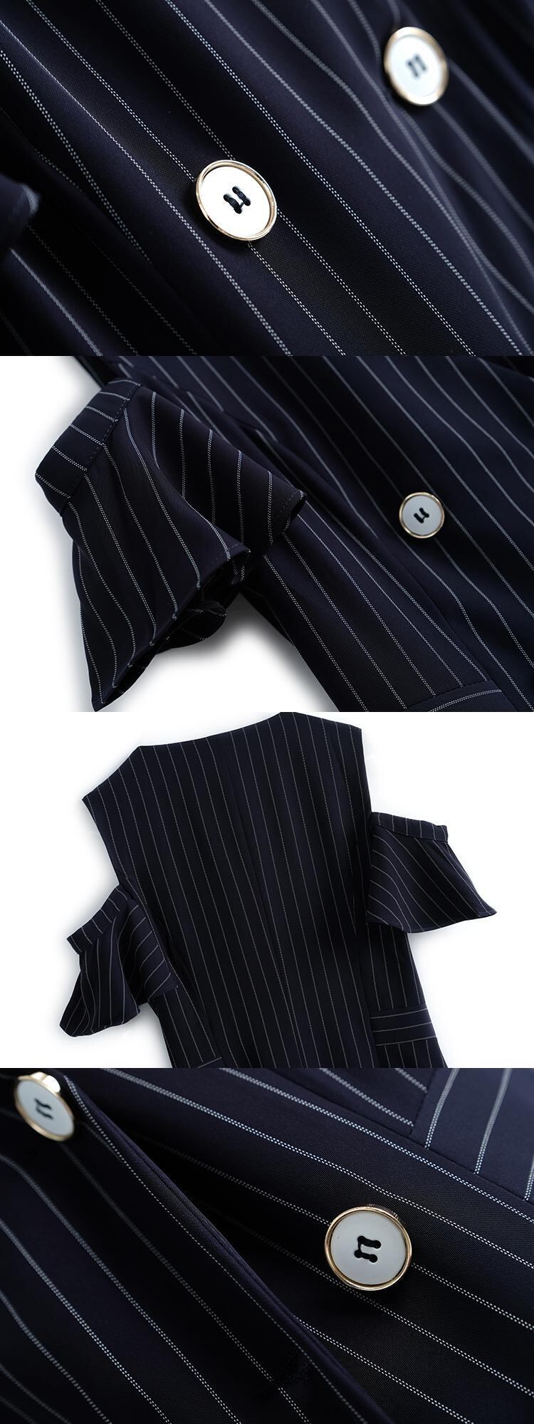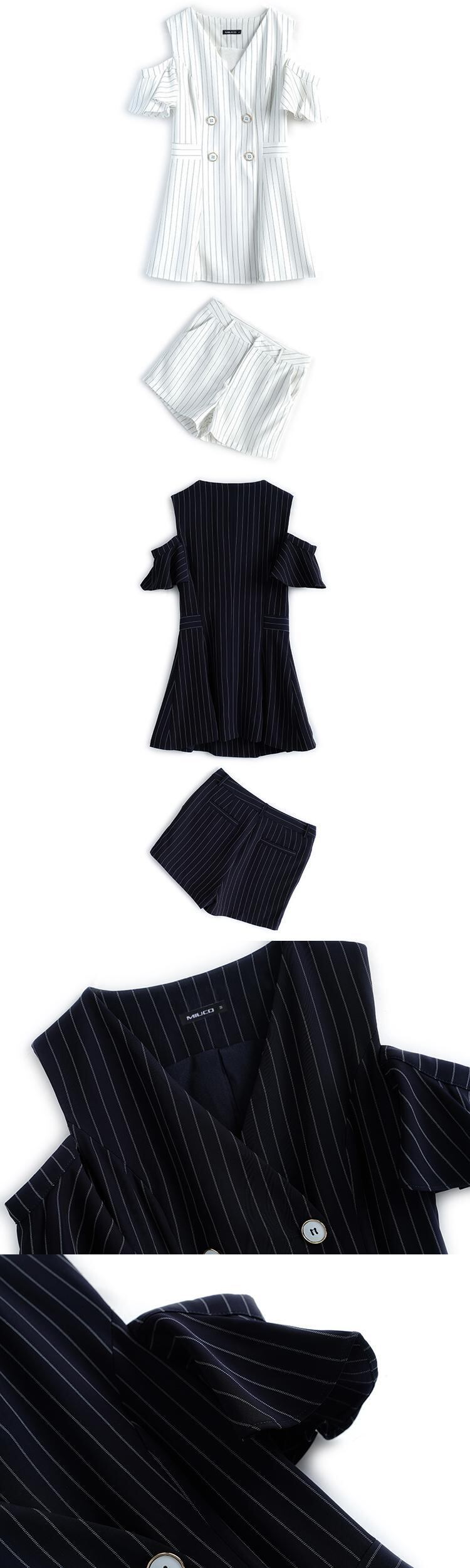 ストラップレスVネックダブルブレストジャケット ショーツ ストライプスプリングスタイル 春物 ブルマー MIUCO74154165735