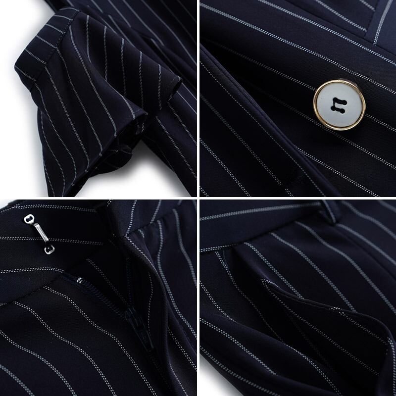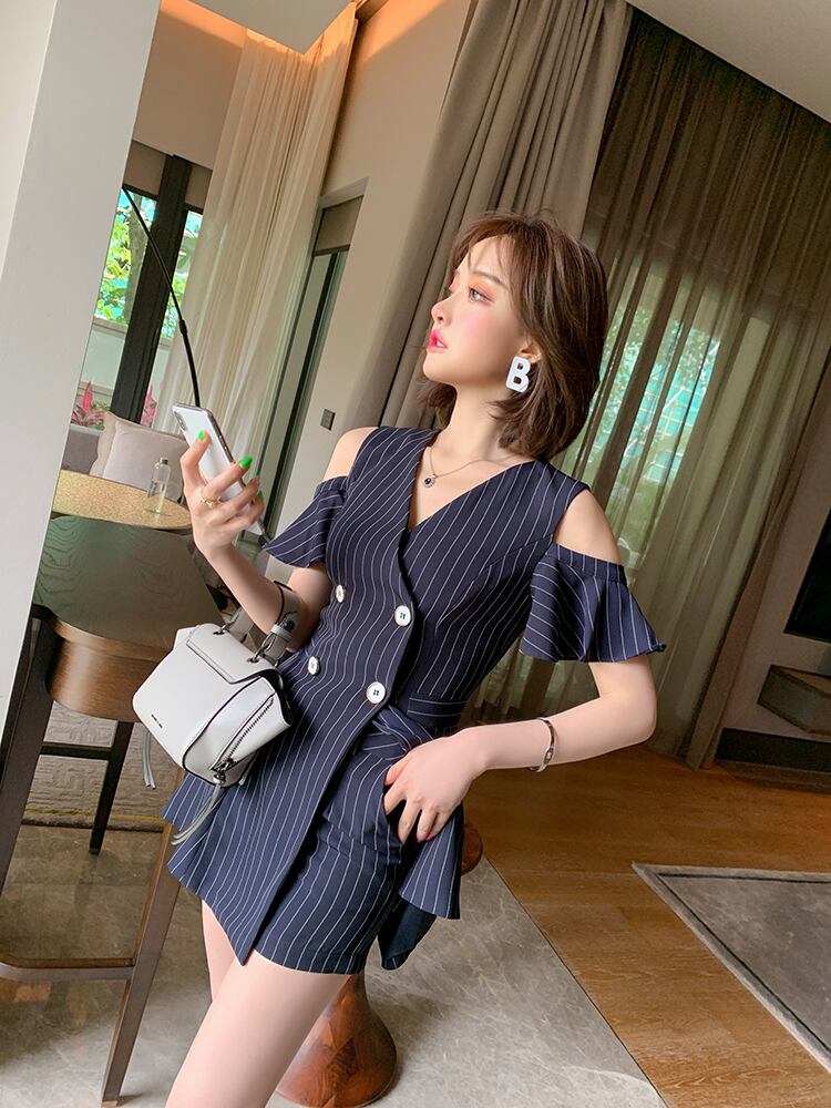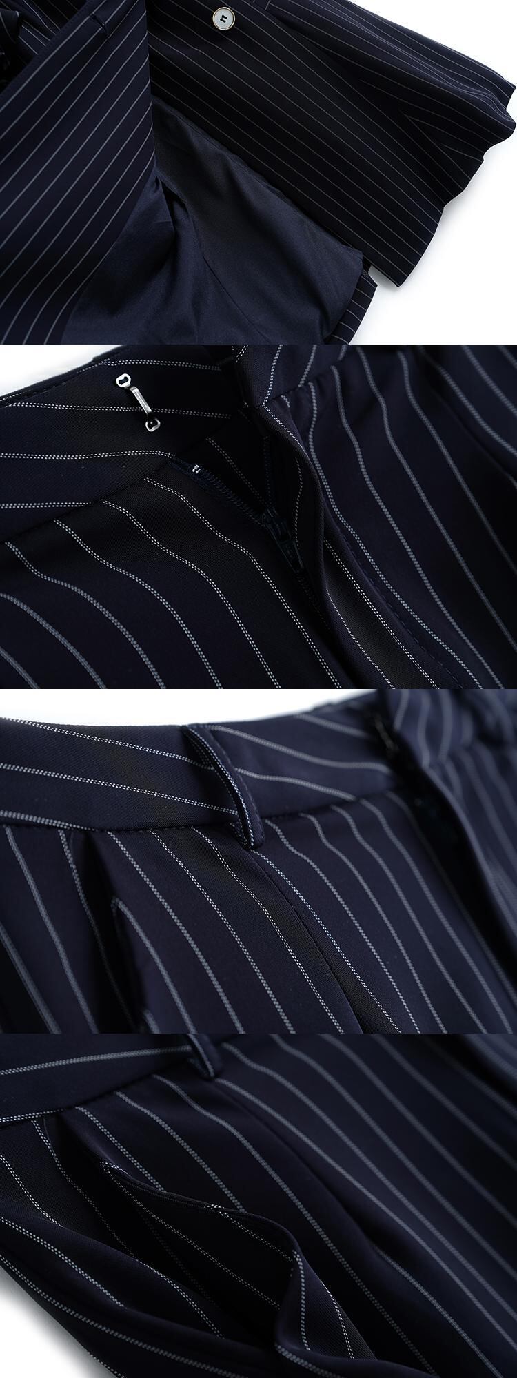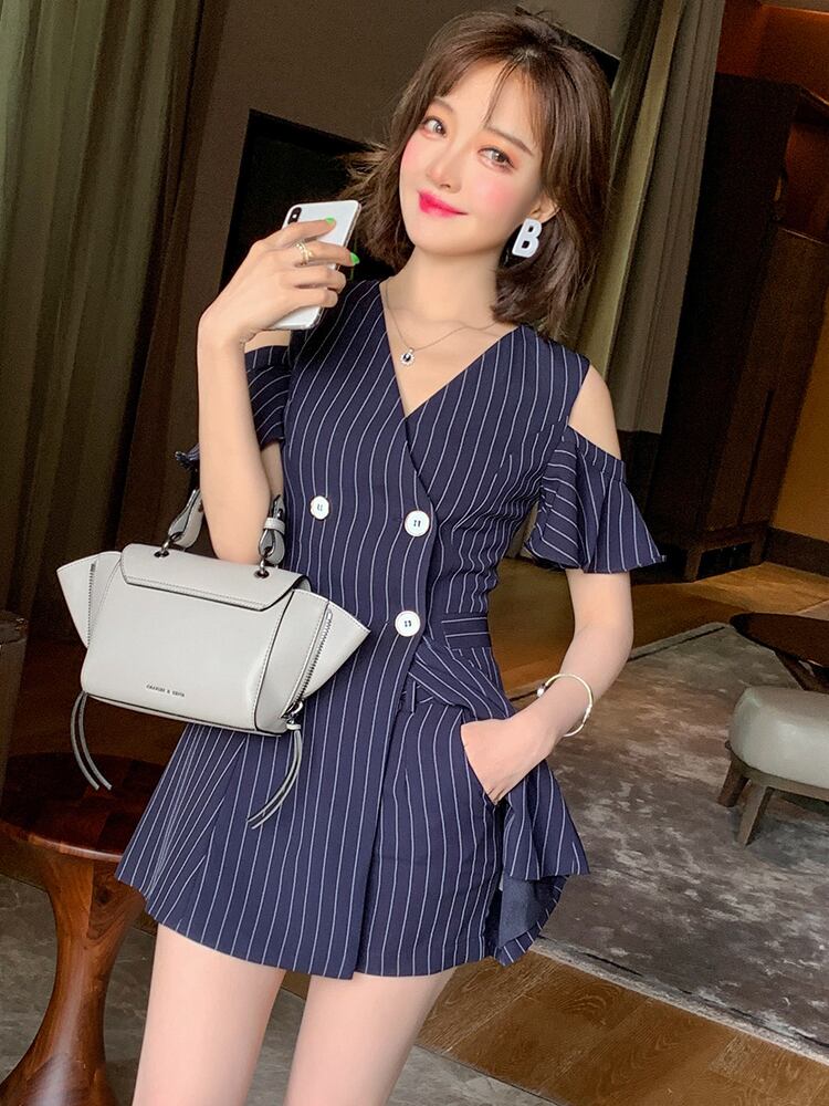 ストラップレスVネックダブルブレストジャケット ショーツ ストライプスプリングスタイル 春物 ブルマー MIUCO74154165735