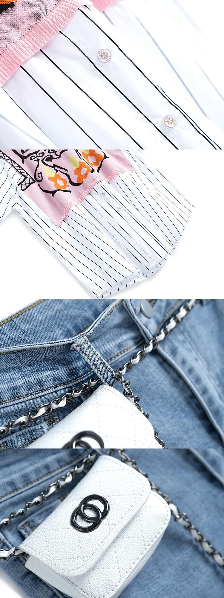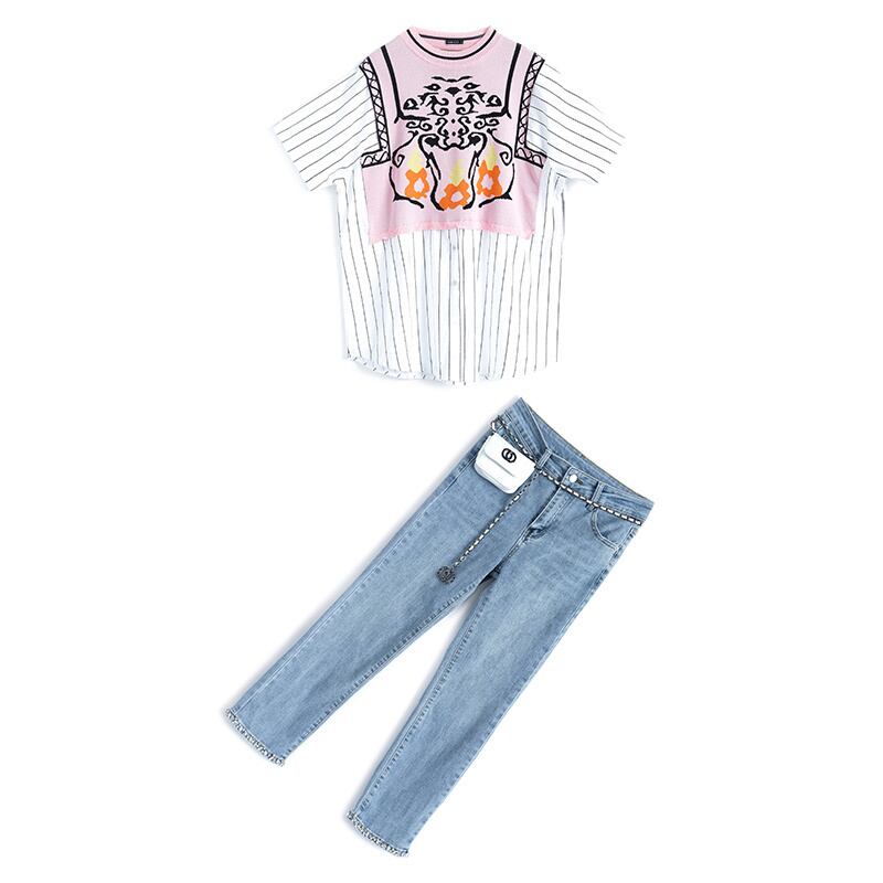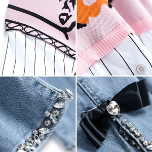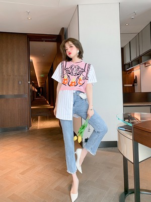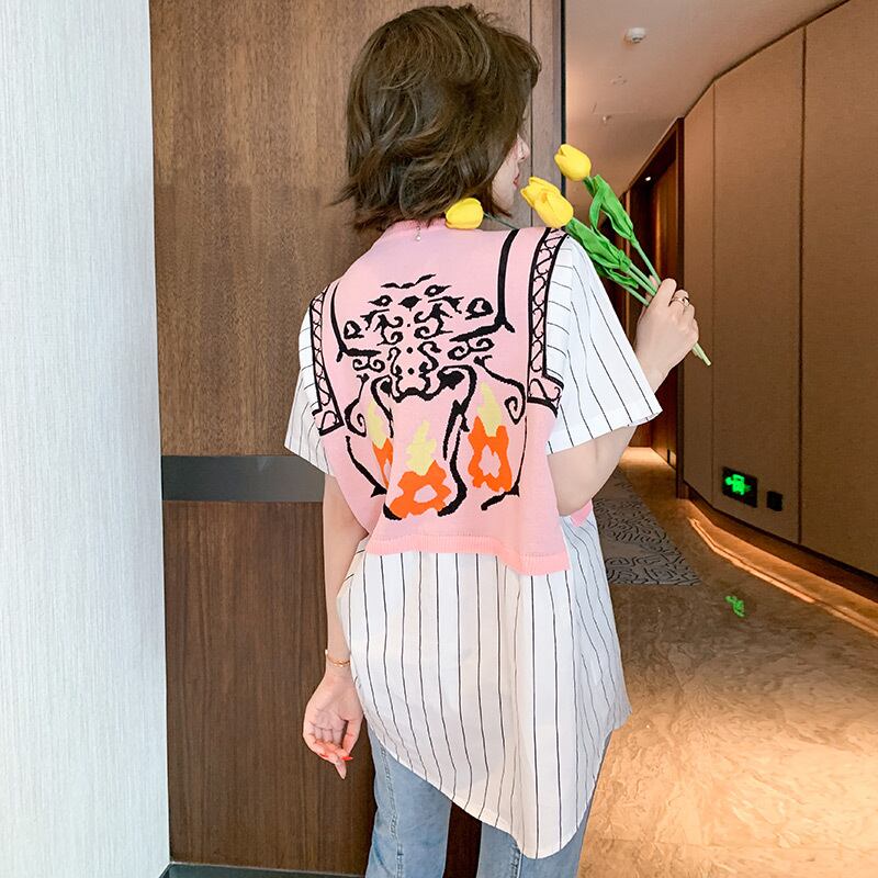 ストライプシャツ スリーブジャカードニットトップス ジーンズ スプリングサマー 春物 夏物 ステッチ MIUCO1971771190
