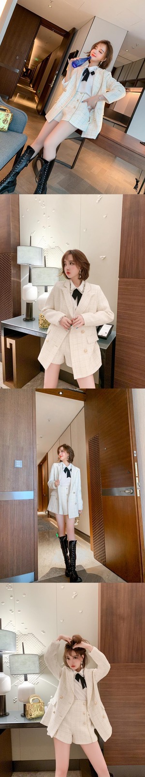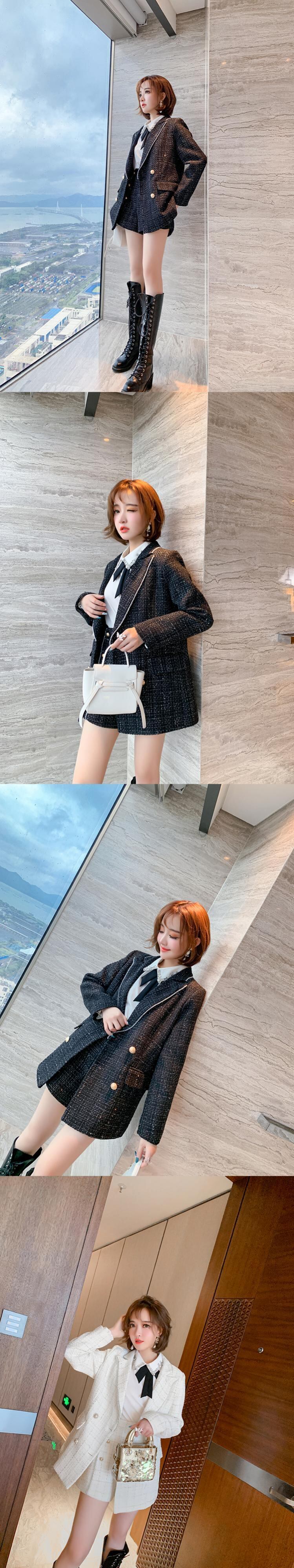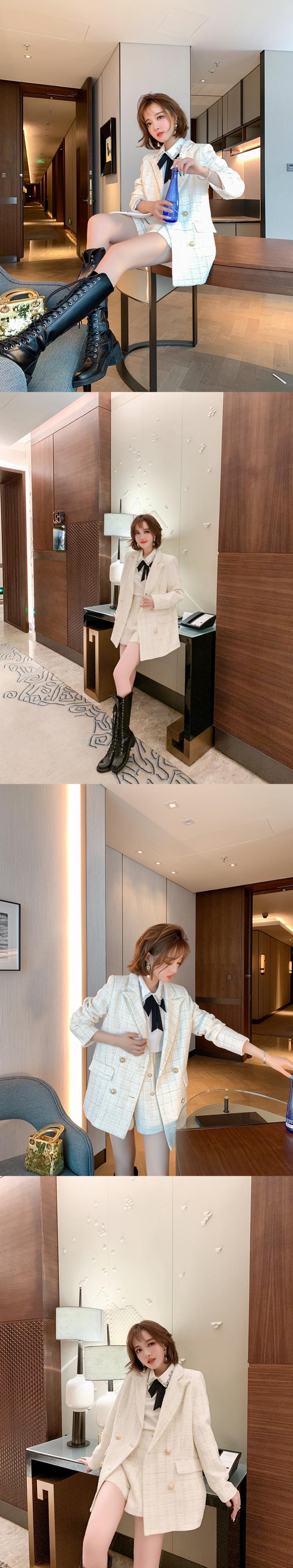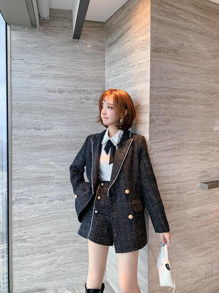 スタイル格子柄ツィードハイウェストウェストショーツ オータムウィンター 秋物 冬物 ブルマー シルク MIUCO75534757883