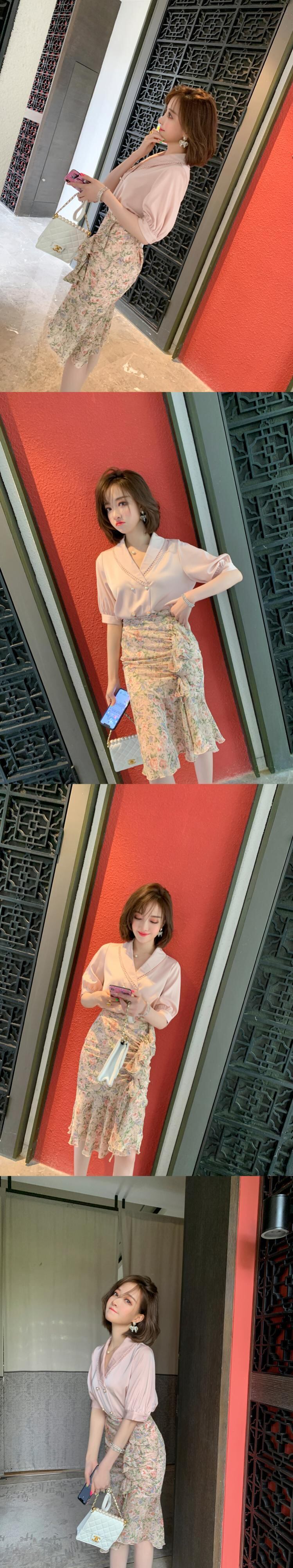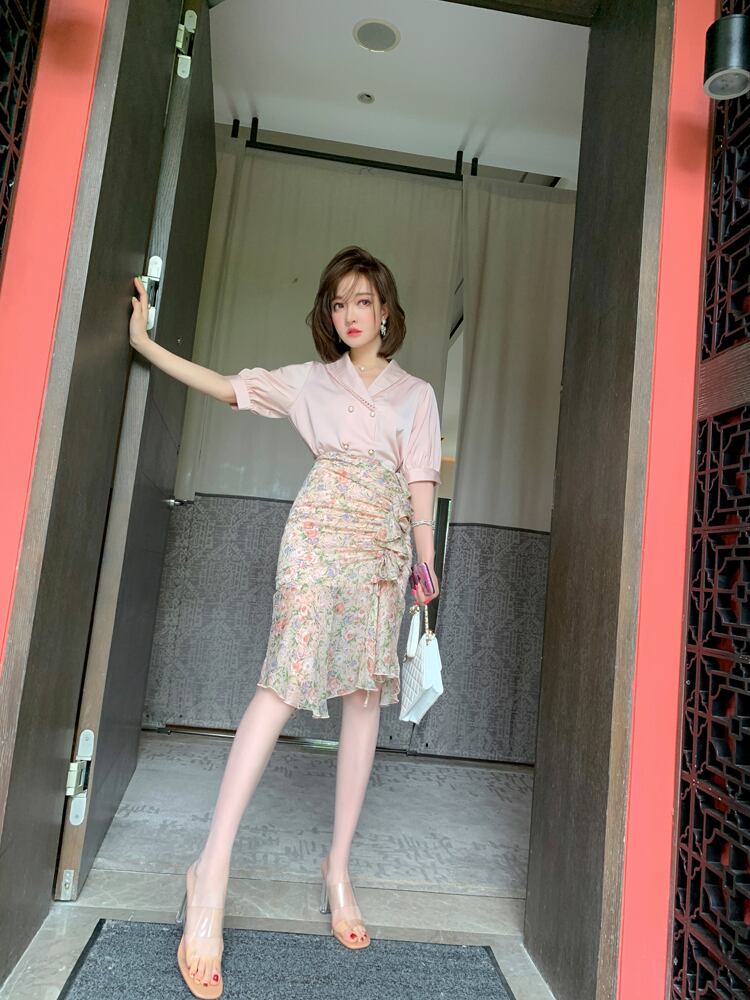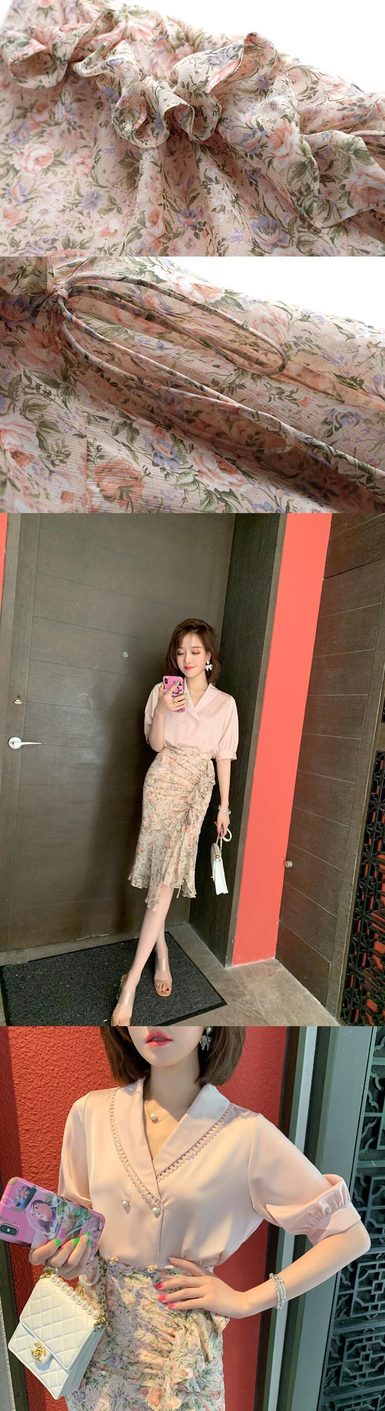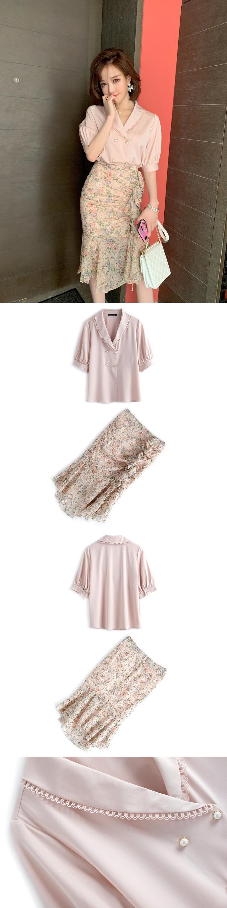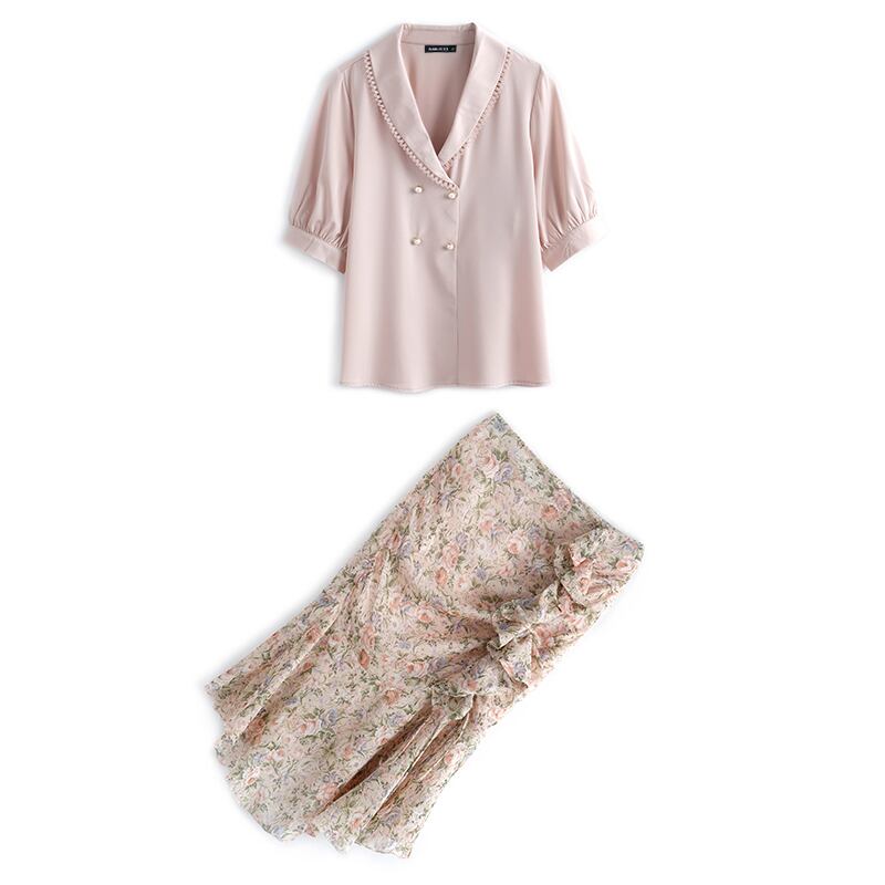 グリーンカラーダブルブレストシャツ プリーツラッフルスカート サマー 夏物 MIUCO80691945228