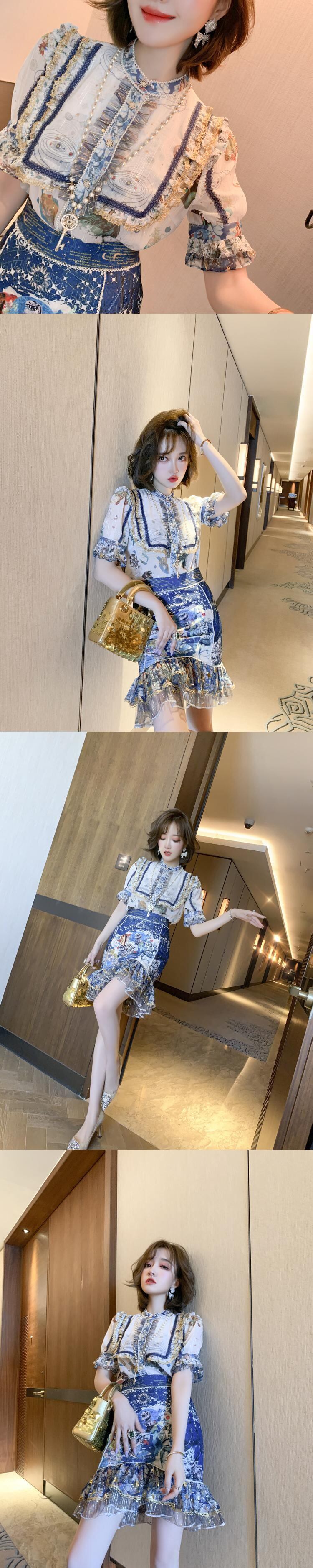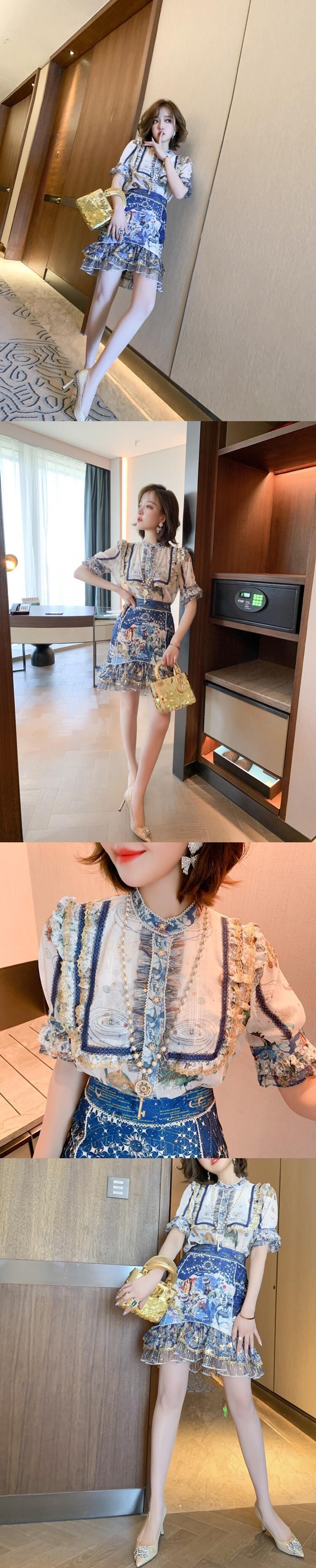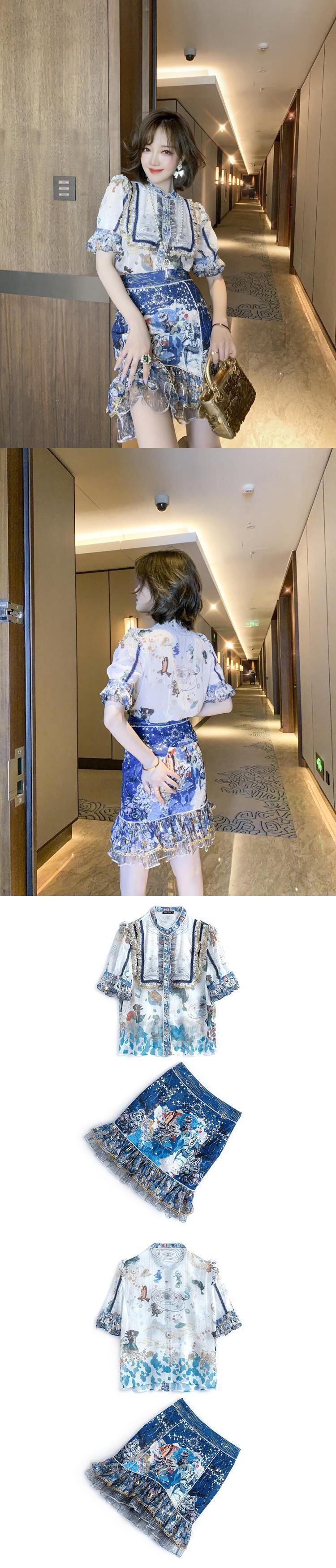 スタイルプリントシャツ ラッフルスカート セット スプリング レース 春物 MIUCO3829062854