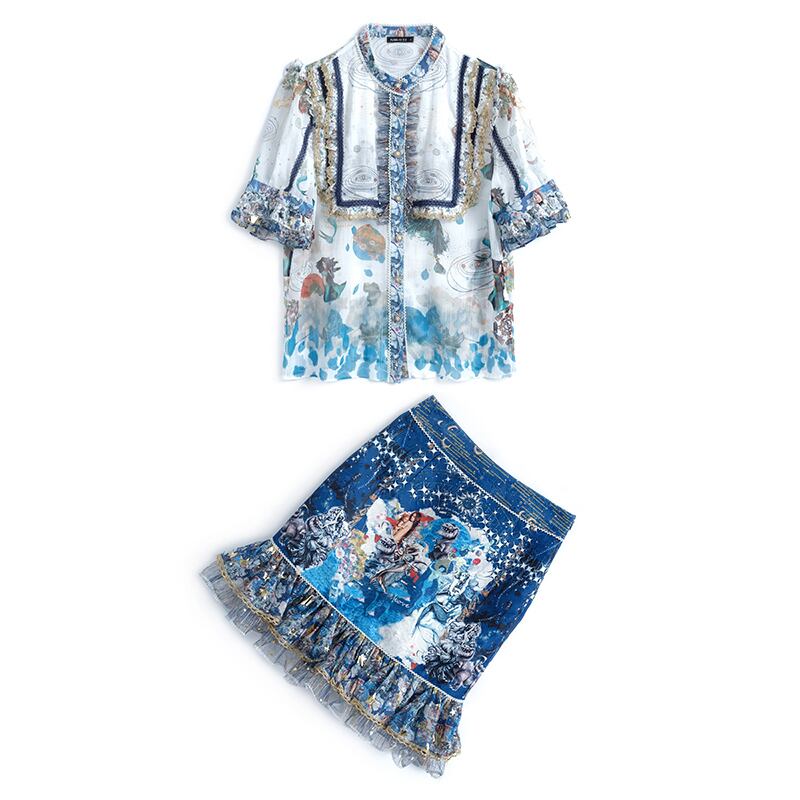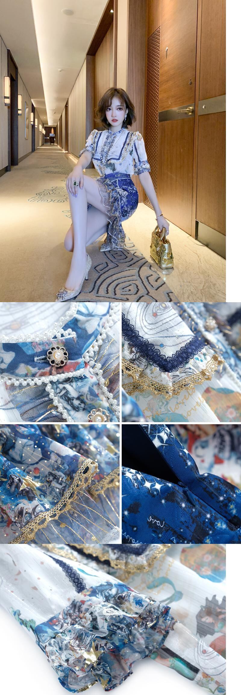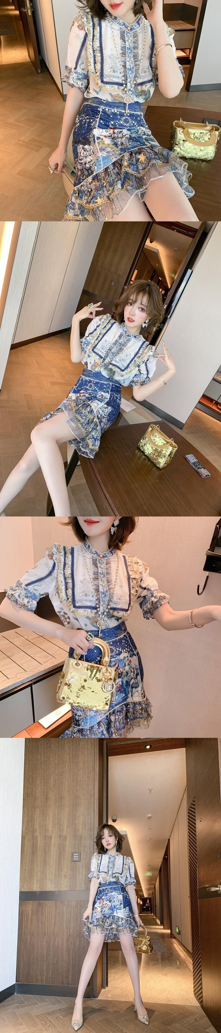スタイルプリントシャツ ラッフルスカート セット スプリング レース 春物 MIUCO3829062854