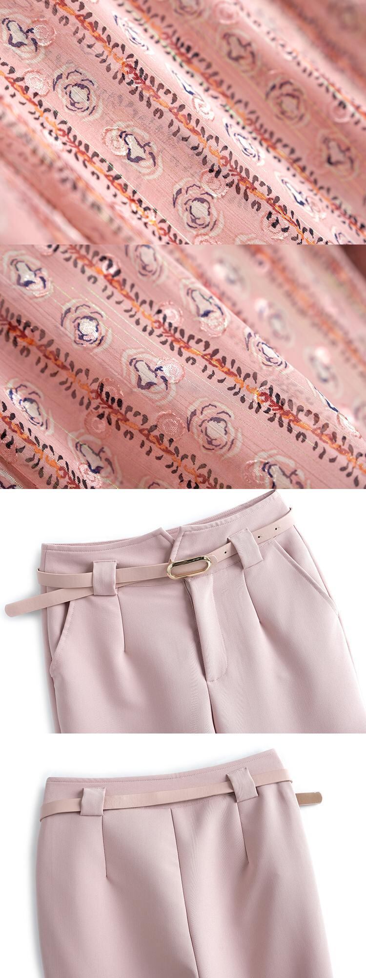 プリーツフローラルシャツ ウェストパンツ スプリングスタイル 春物 花柄 MIUCO44466384788