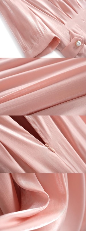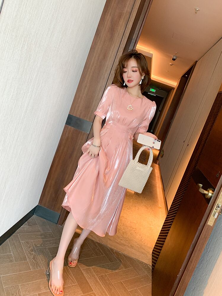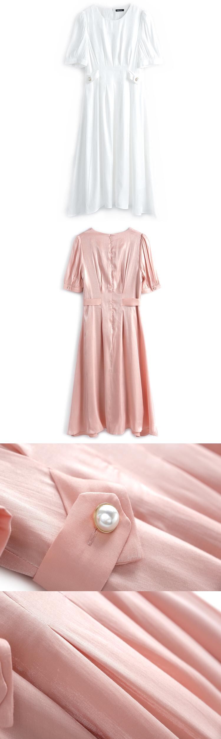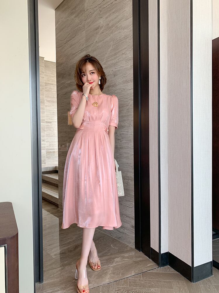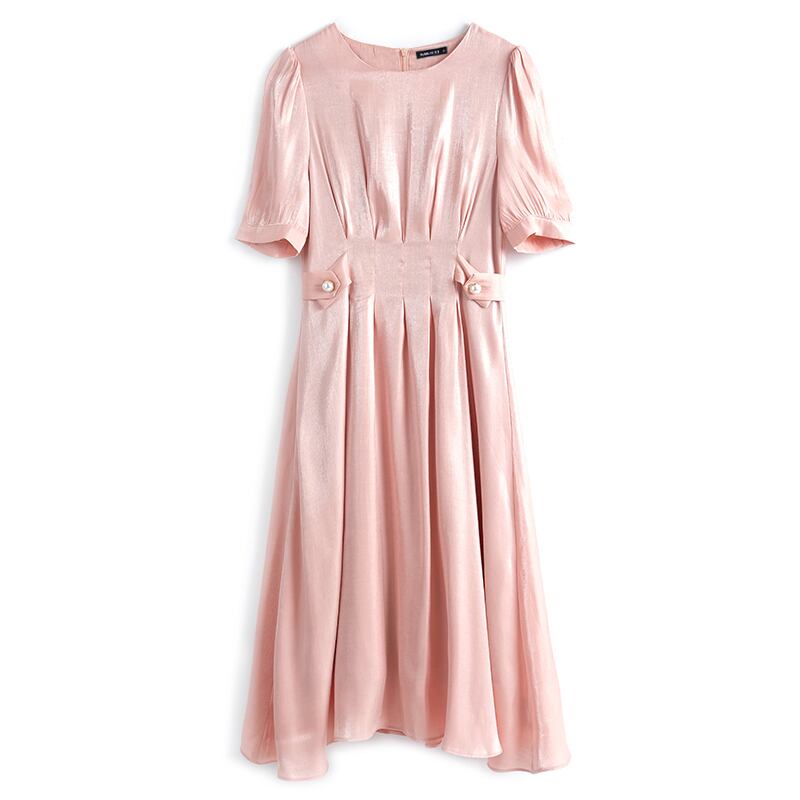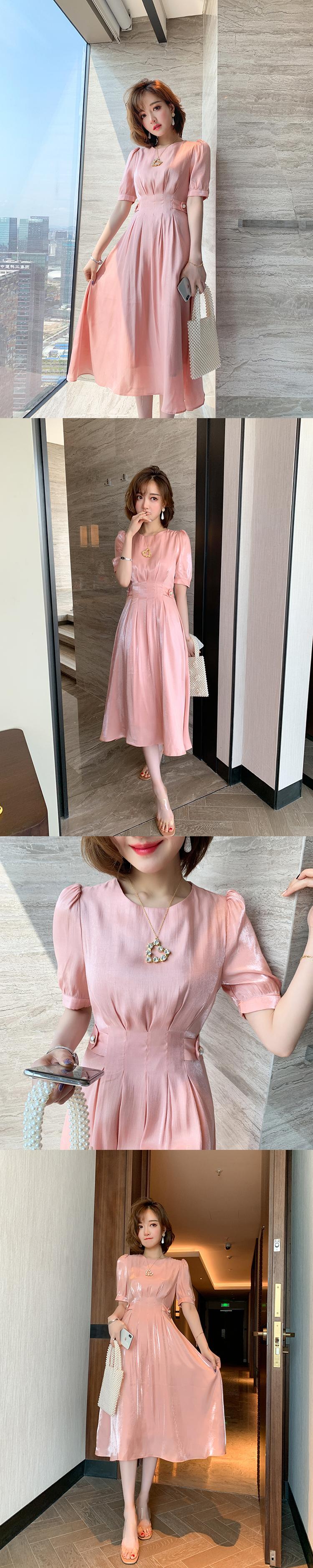 ラウンドネックプリーツウェストハイウェストスリムドレス スプリング 春物 Oネック MIUCO94634888497