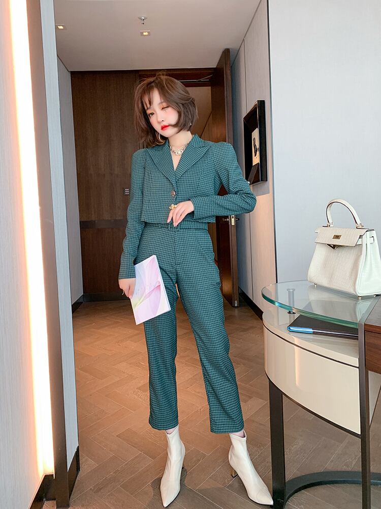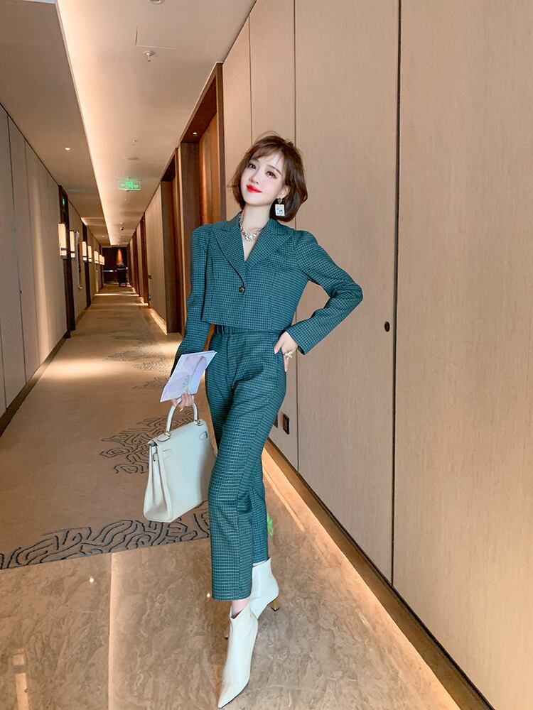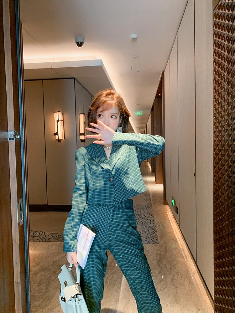 クロップドトップス スタンダード格子柄オータム レトロ 秋物 MIUCO90635151031