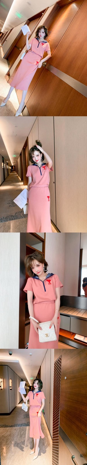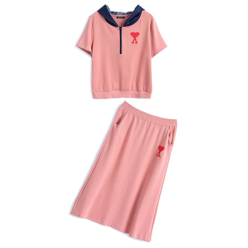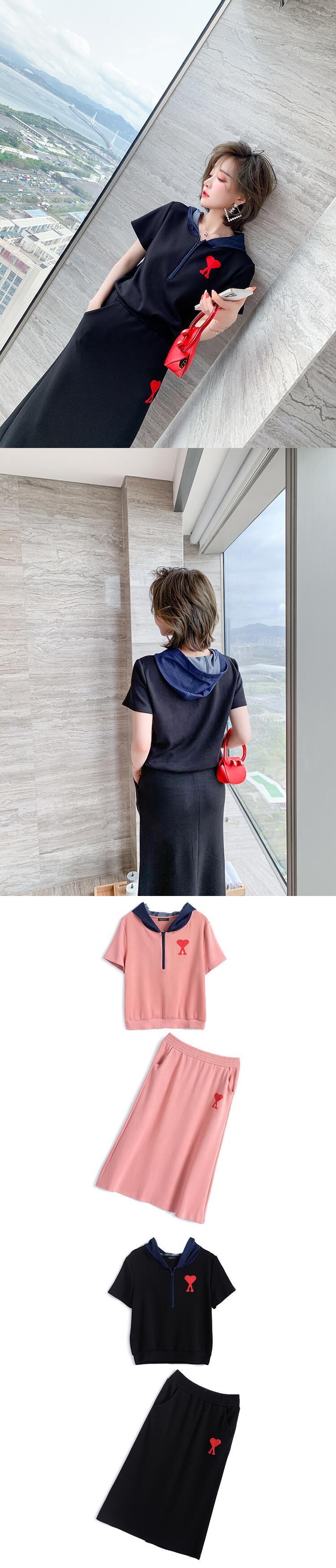 フードジッパー半袖スリーブトップス ウェストAラインスカート ショート ハーフスリーブ スプリング 春物 サマー 夏物 MIUCO67753205128
