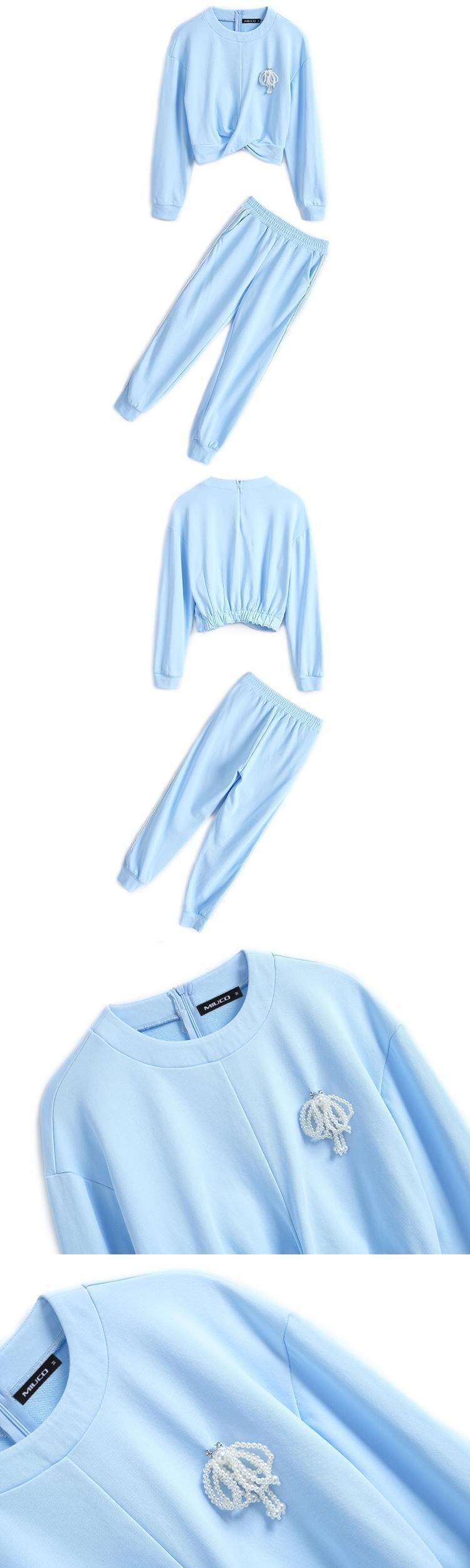 ラウンドネックトップス ウェストパンツ セット スプリング 春物 Oネック MIUCO8377421832
