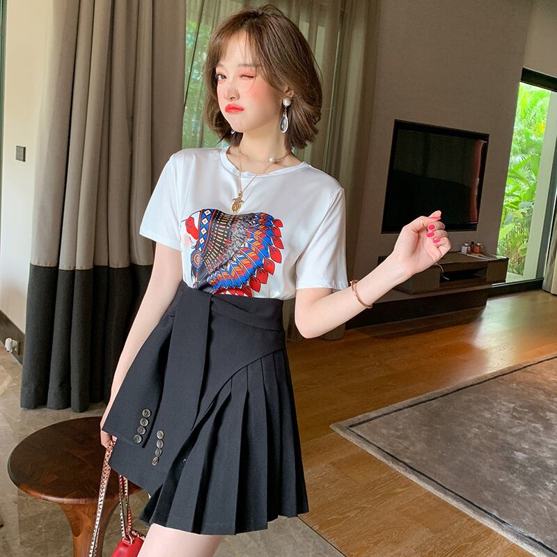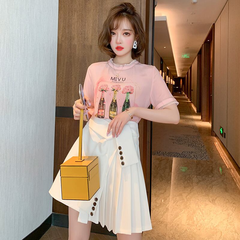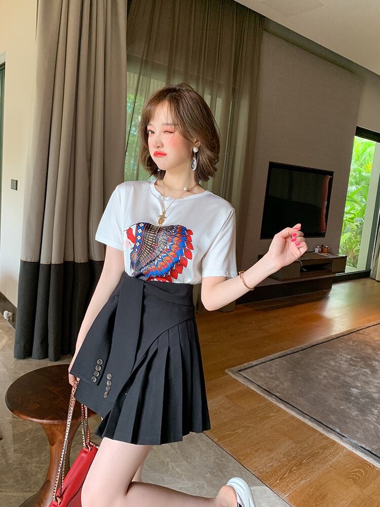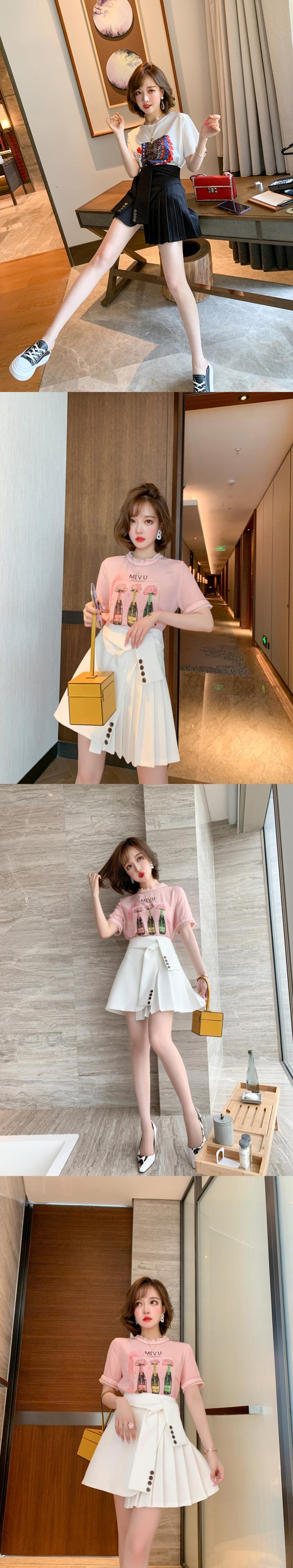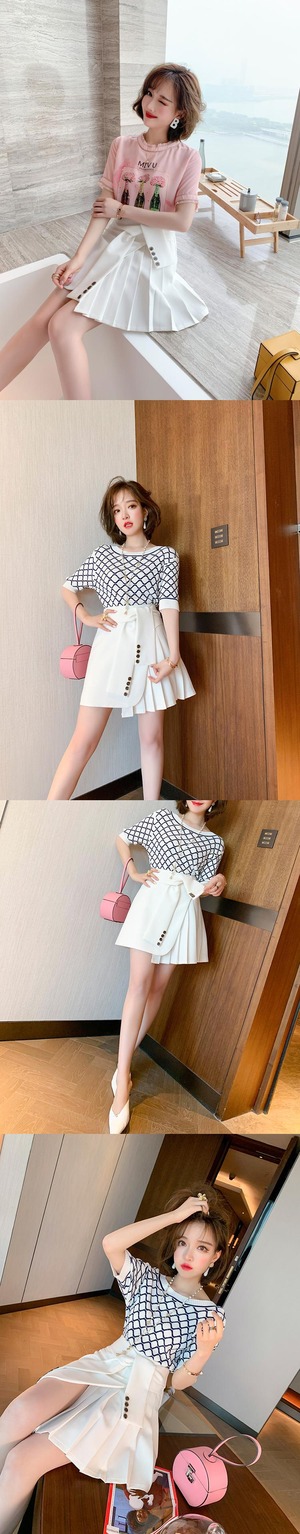 ハイウェストウェストプリーツスタイルスカート サマー 夏物 ステッチ MIUCO92980036940