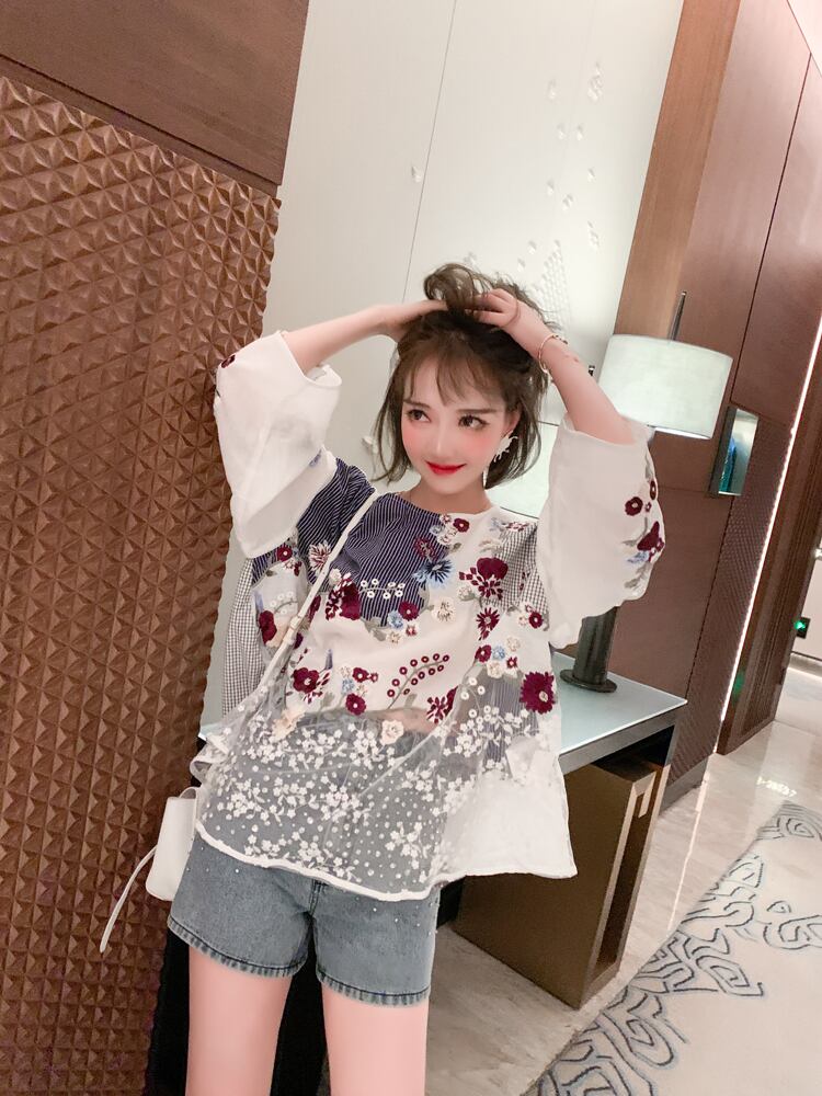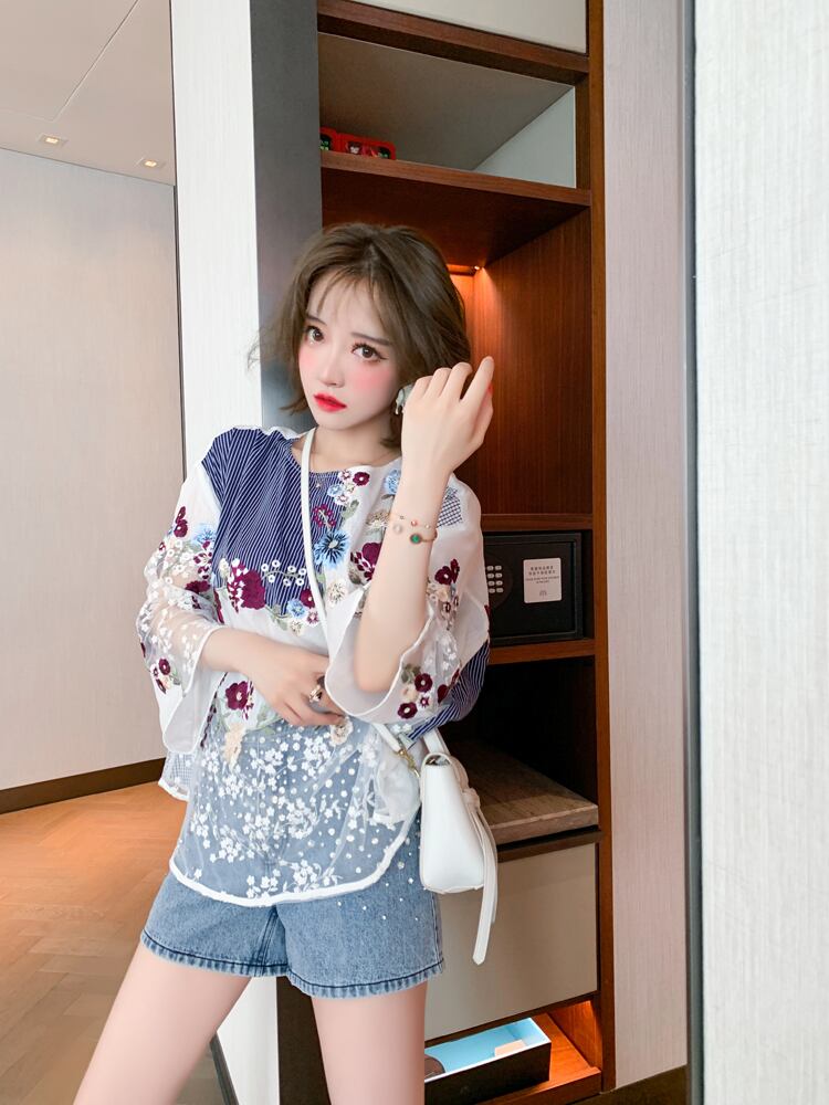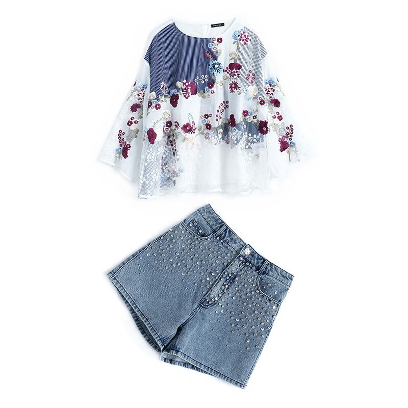ラウンドネックトップス ウェスト薄手ショーツ セット レッド 刺繍 スプリング 春物 サマー 夏物 ブルマー Oネック MIUCO40338263905
