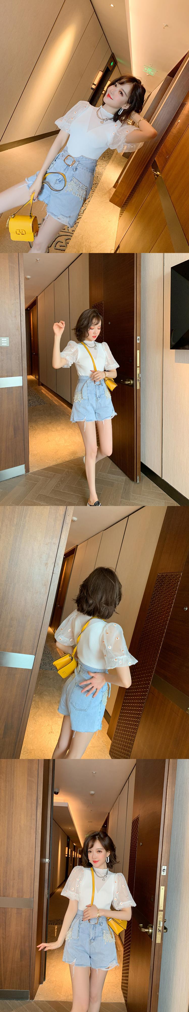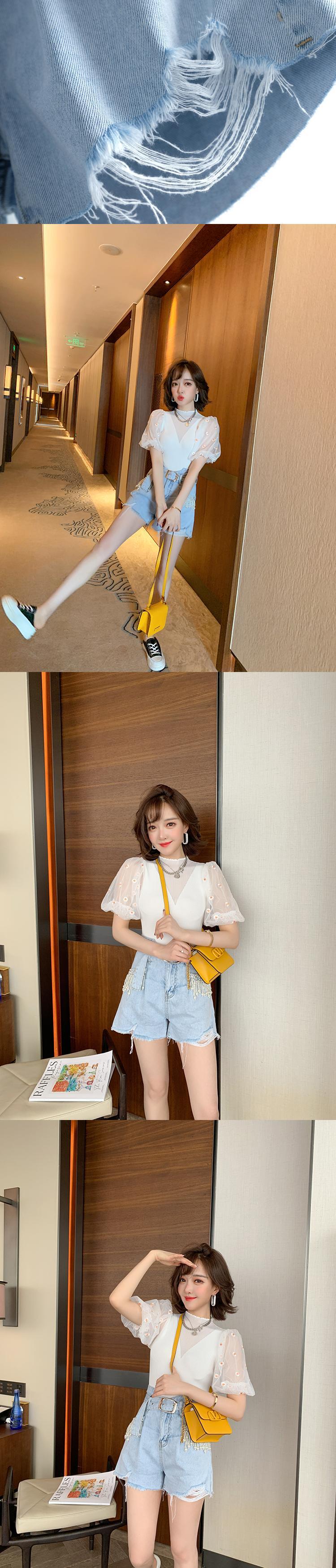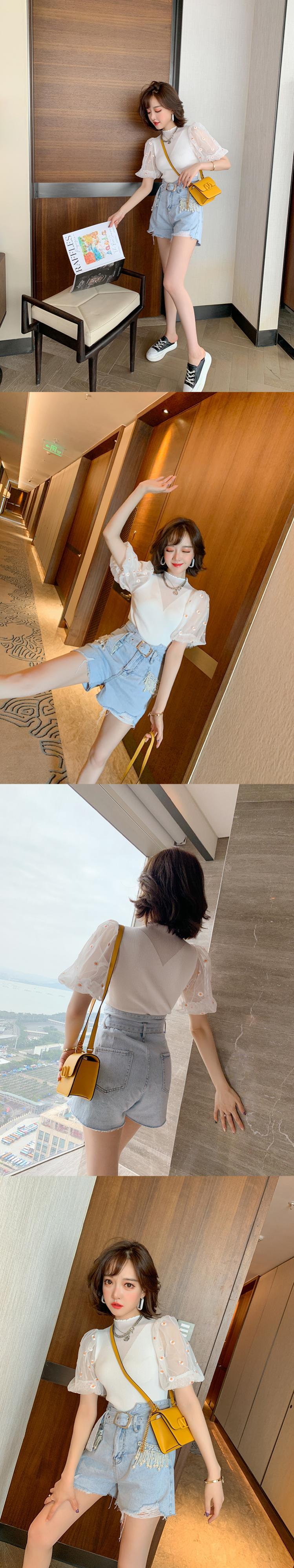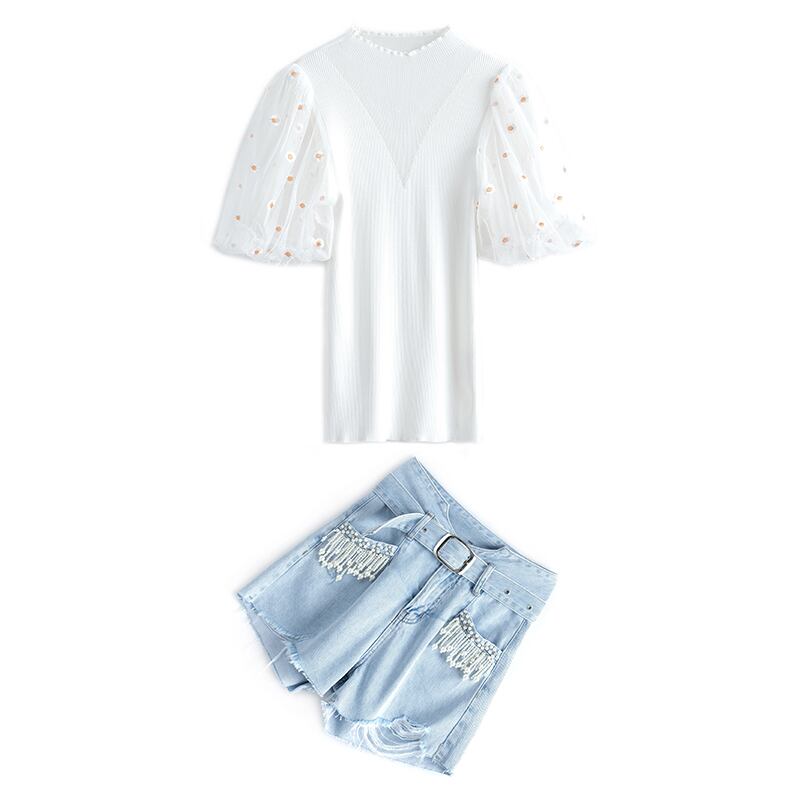 メッシュ刺繍ニットトップス ショーツ セット スプリングサマー 春物 夏物 ブルマー ステッチ MIUCO48361859957