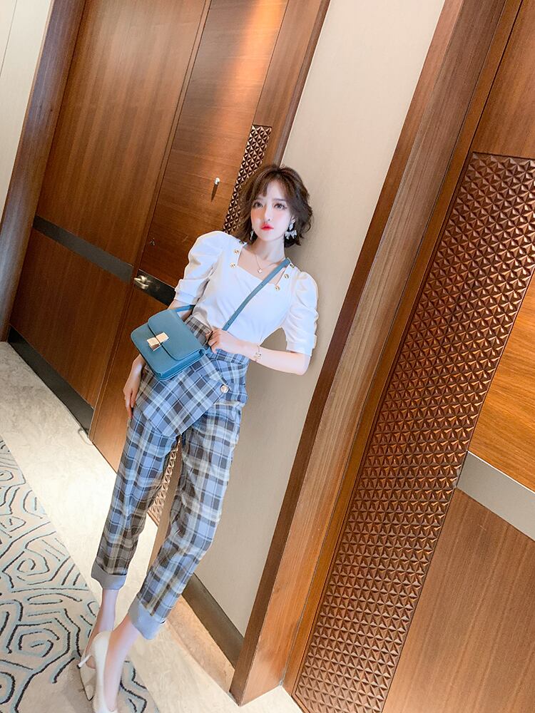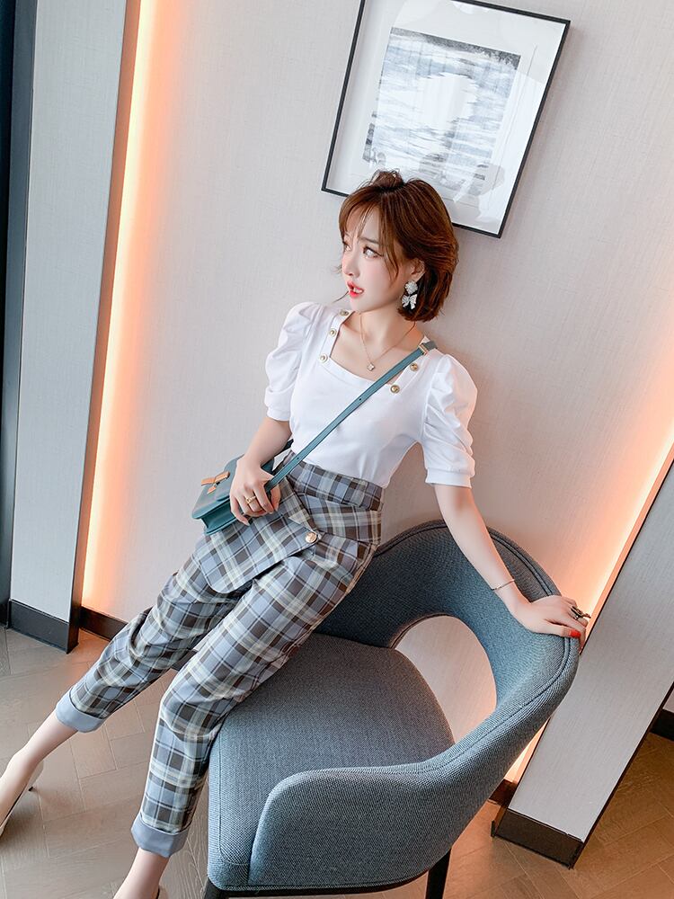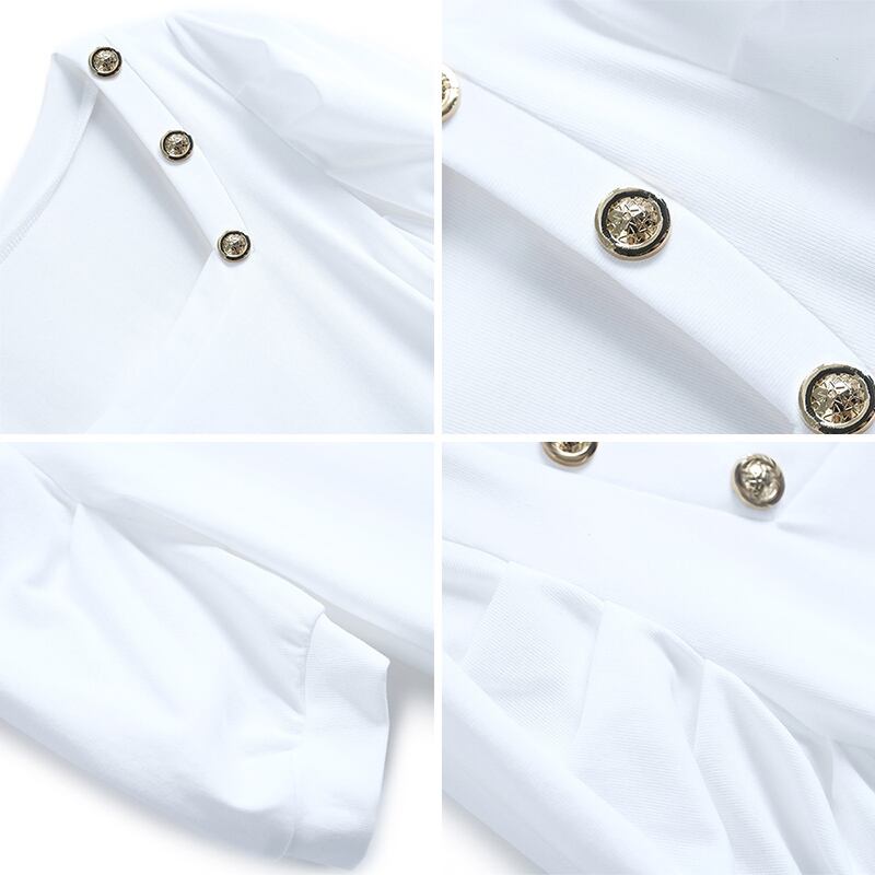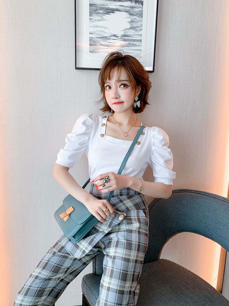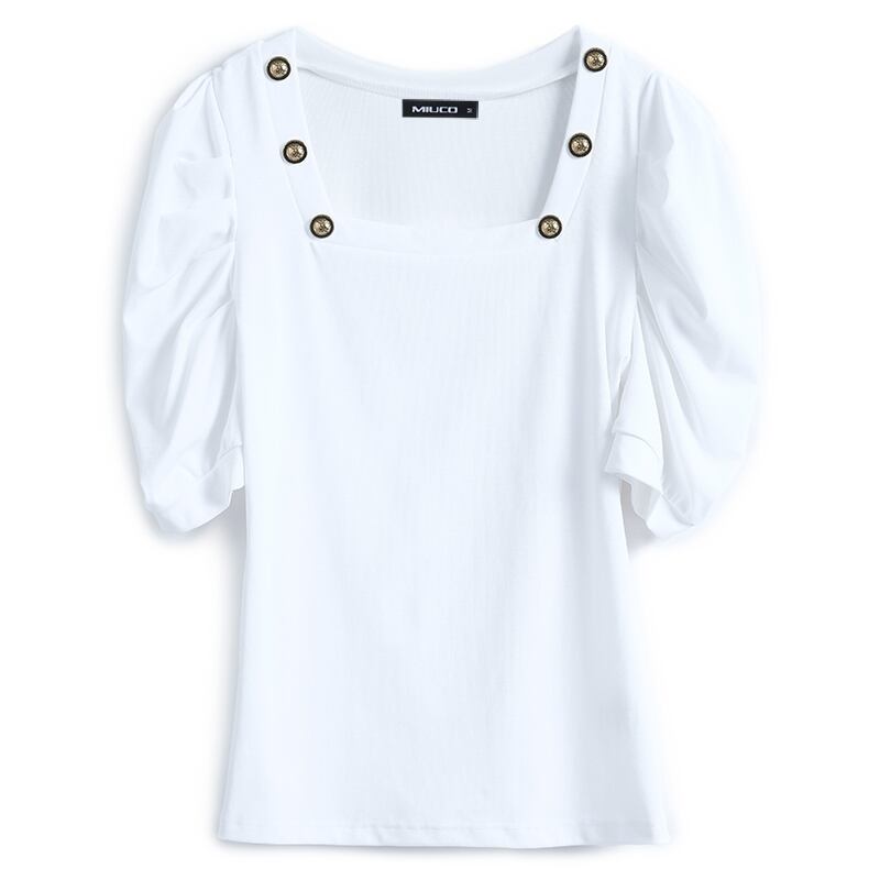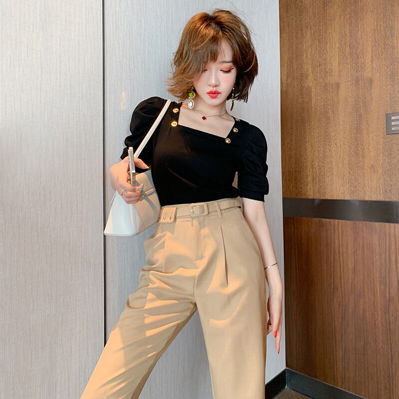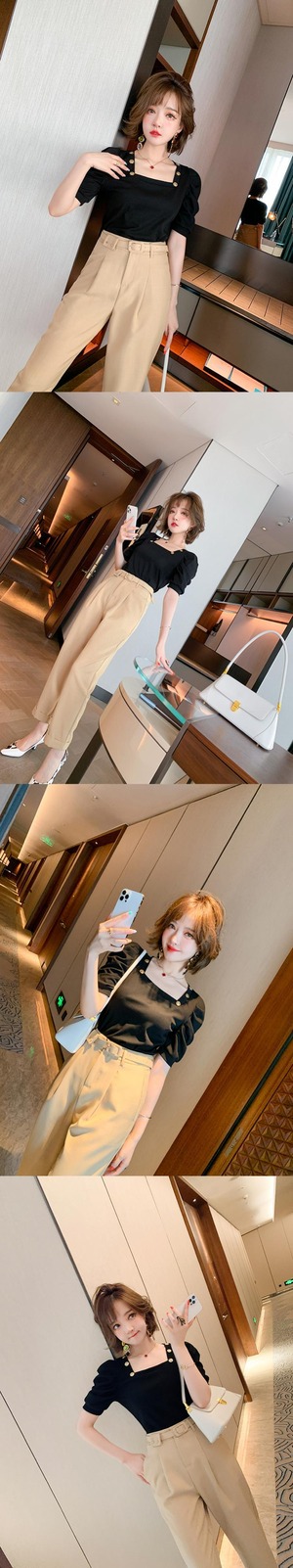 カラーボタンスタンダードプリーツスリーブトップス スプリングサマー レトロ 春物 夏物 スクウェア MIUCO71060794072
