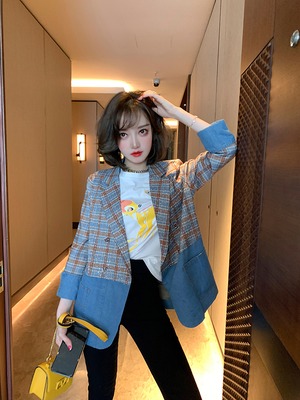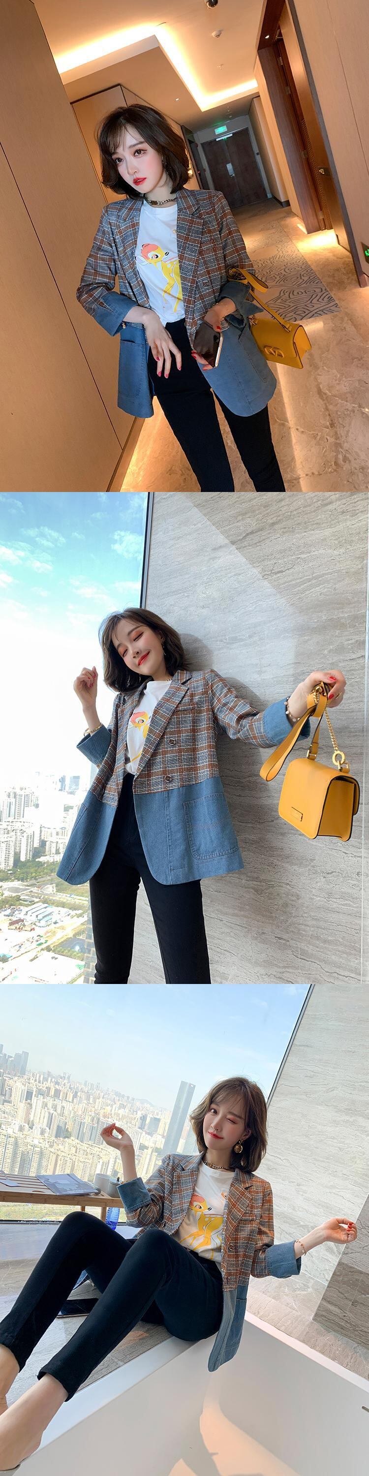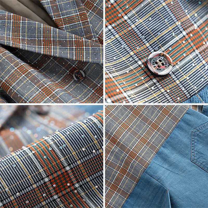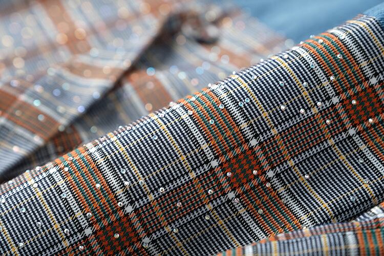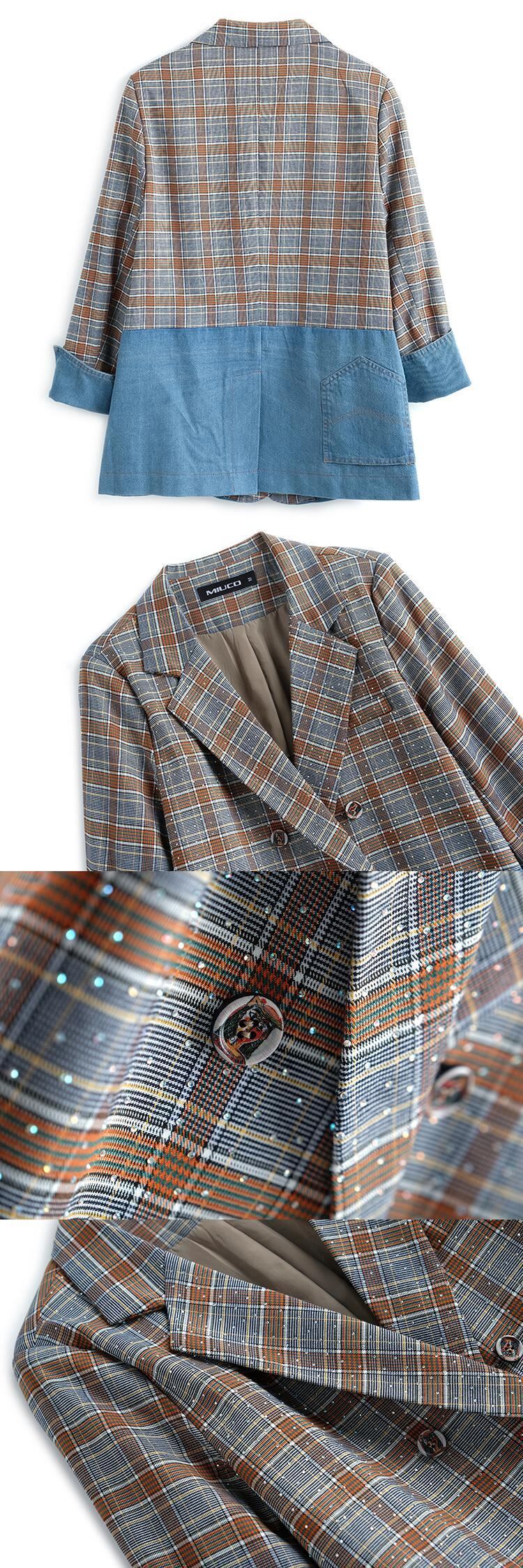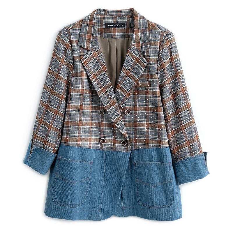 ラインストーンスタンダード格子柄ジャケット スプリング レトロ 春物 ステッチ MIUCO4788638028